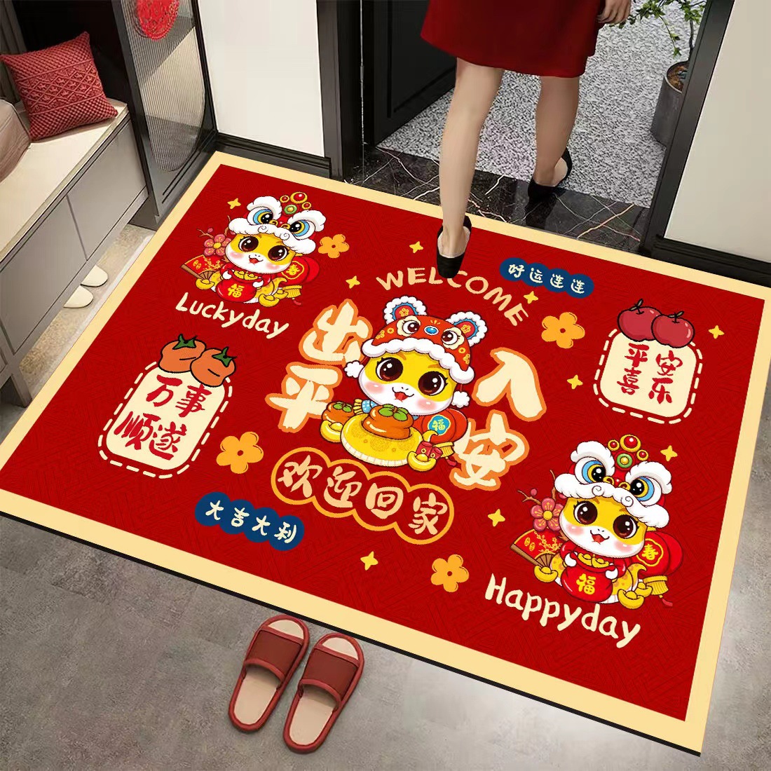 2025 년 새해 입구 문 매트 축제 새로운 중국 스타일 가정용 미끄럼 발 매트 방 입구 카펫