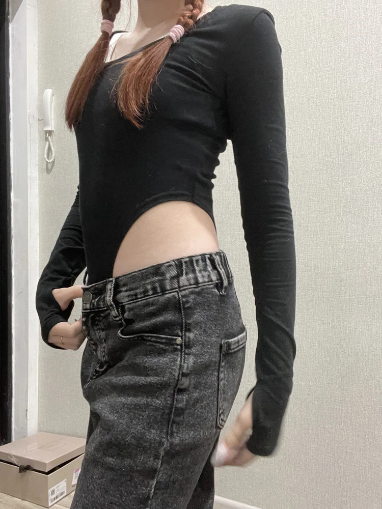 Боди с длинным рукавом 올 매치 로우 컷 롱 슬리브 스타킹스토어 가기