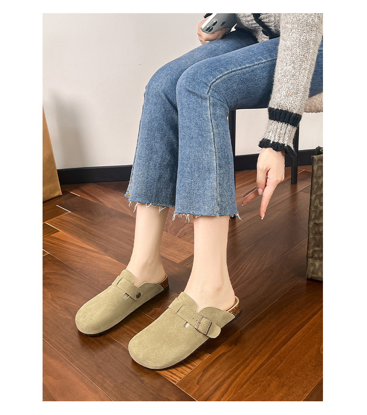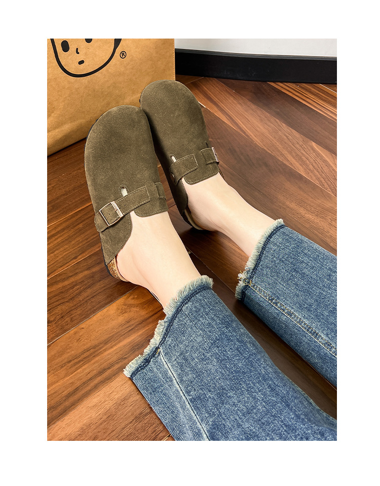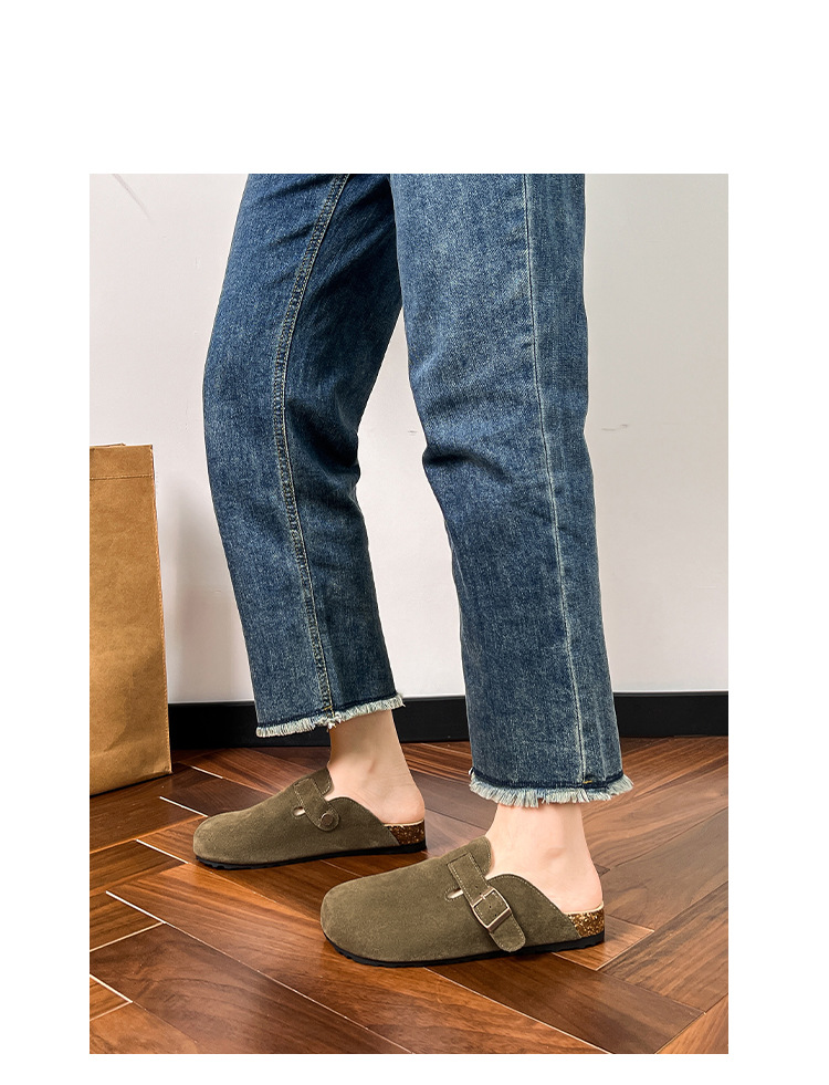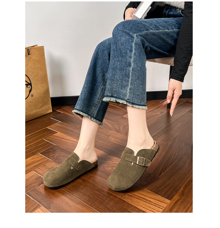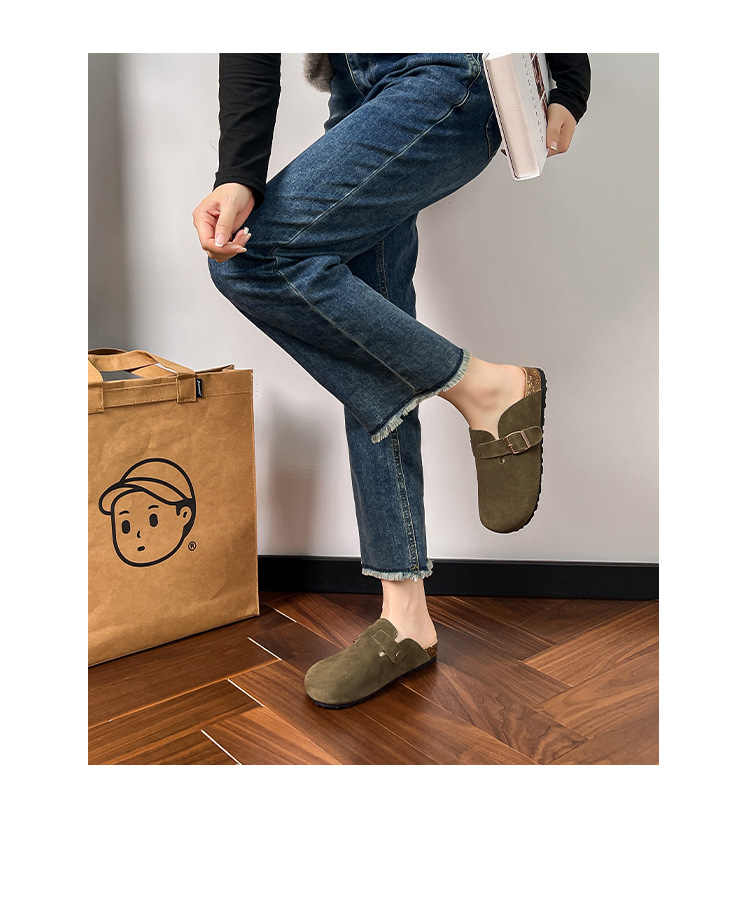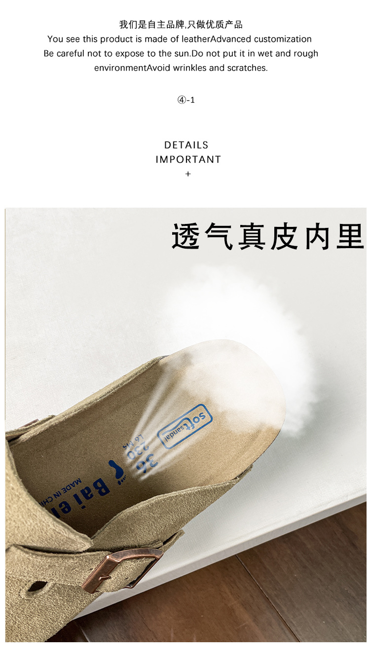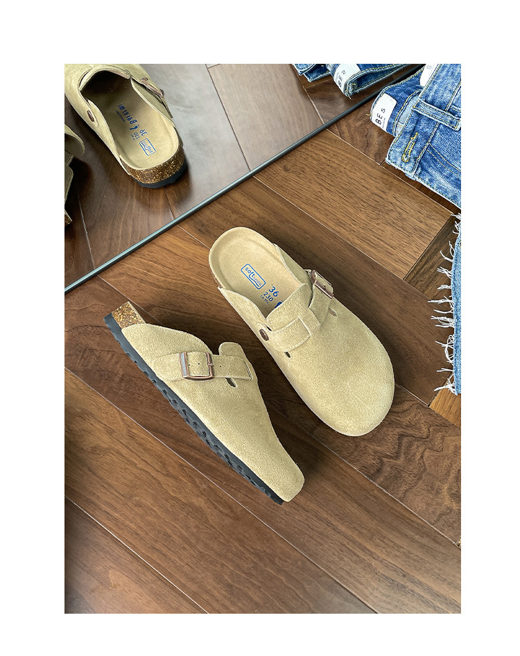 트루 코르크 * 산시 동일 스타일 남녀 버켄 스톡 신발 슬리퍼 여성 여름 낚시 보켄 스톡 가죽 바오 투 하프 슬리퍼