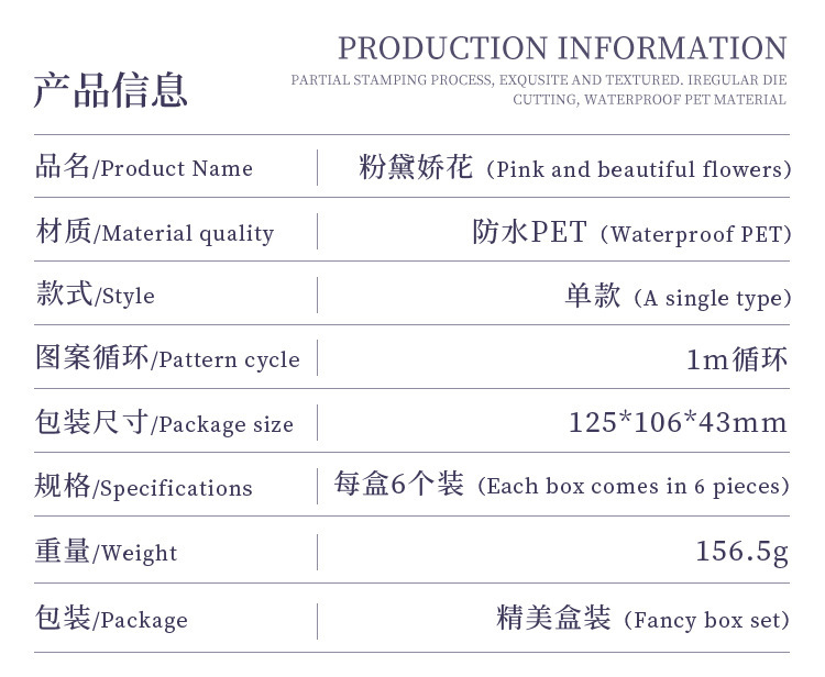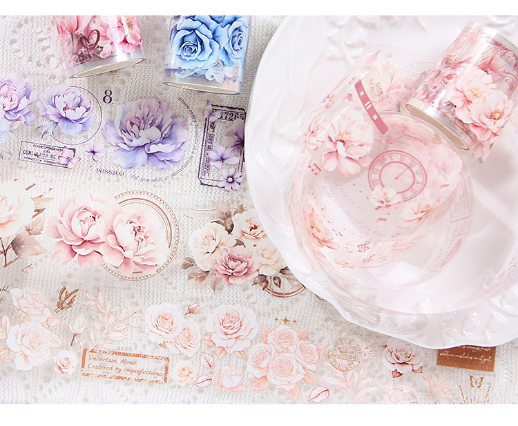 Fandai Jiao Hua 특수 오일 방수 애완 동물 테이프 세트 상자 DIY 손 계정 일기 풍경 스티커 낭만적 인 꽃 손 계정 스티커스토어 가기