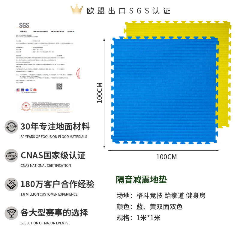 • 1* 1m 두께 2.0cm 노란색 및 파란색 양면 사용 가능 [강력한 방음 및 미끄럼 방지] 컬렉션 플러스
