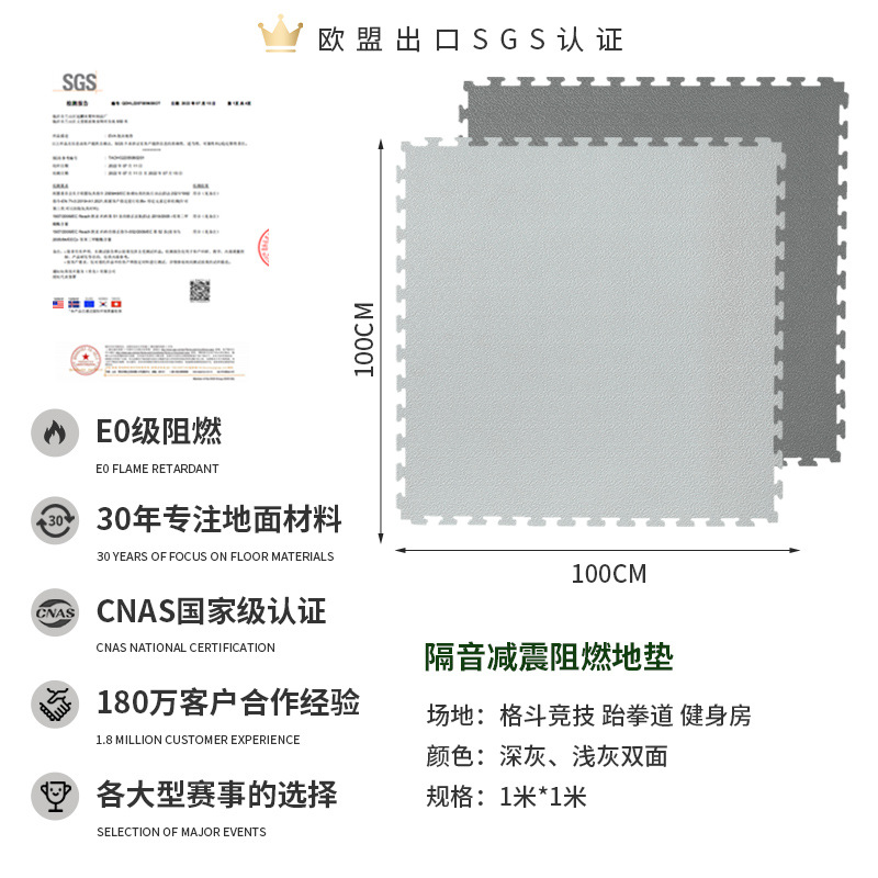 체육관 바닥 매트 방음 및 충격 흡수 스포츠 충격 방지 접합 대형 지역 음소거 홈 층 태권도 바닥 매트