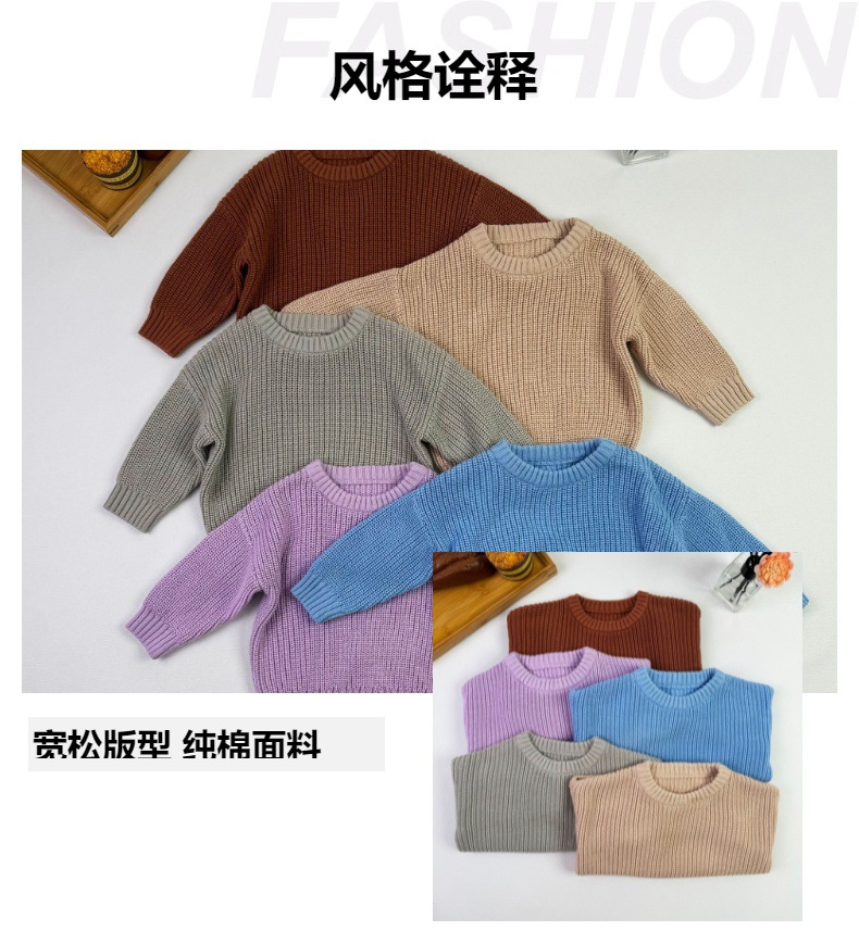 순면 보온 라운드넥 니트 스웨터 아동용 단색 면 루즈핏 니트 자켓 유아동복스토어 가기