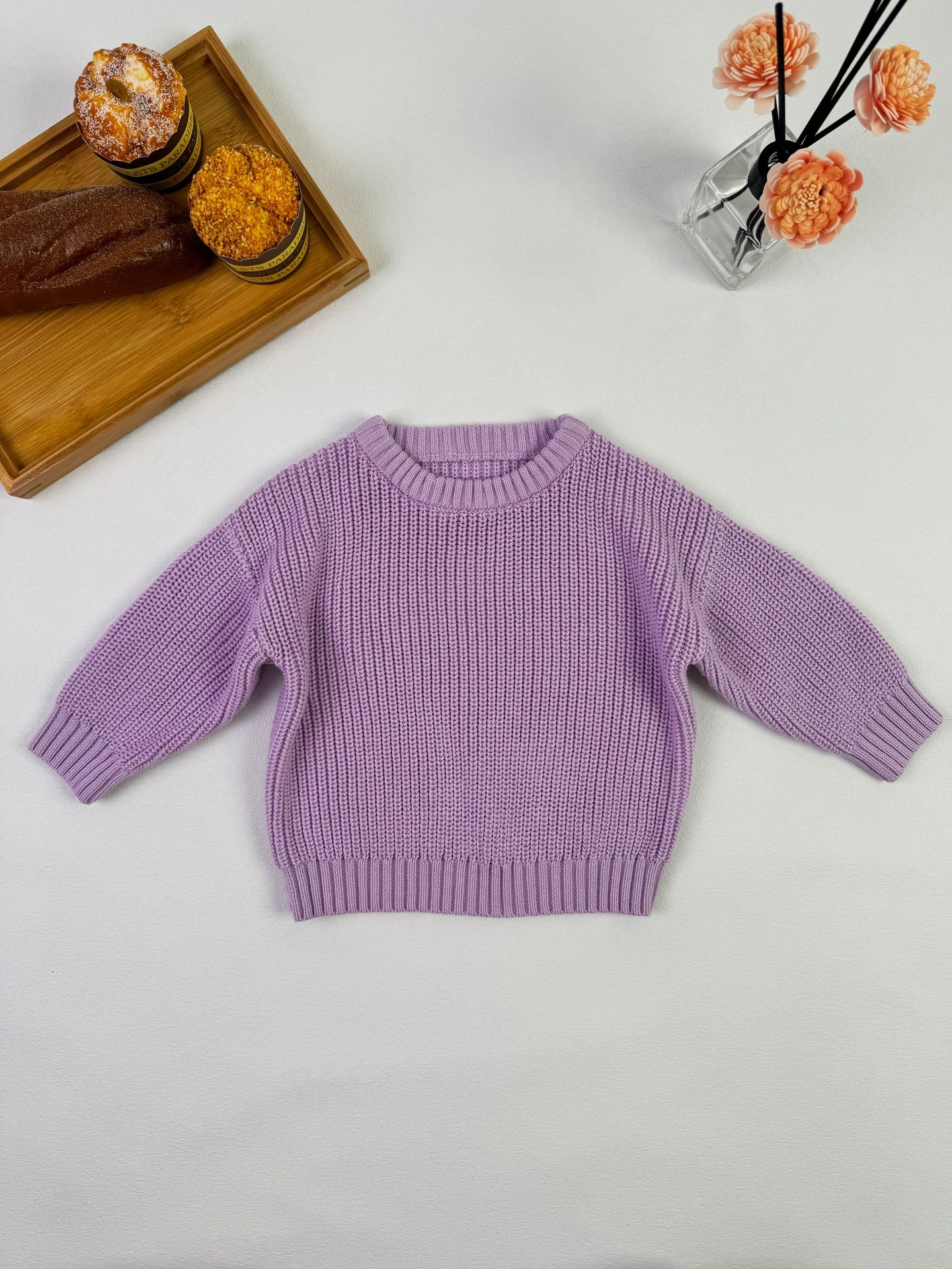 순면 보온 라운드넥 니트 스웨터 아동용 단색 면 루즈핏 니트 자켓 유아동복