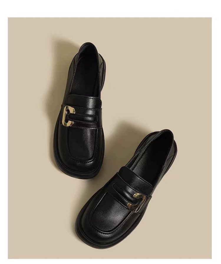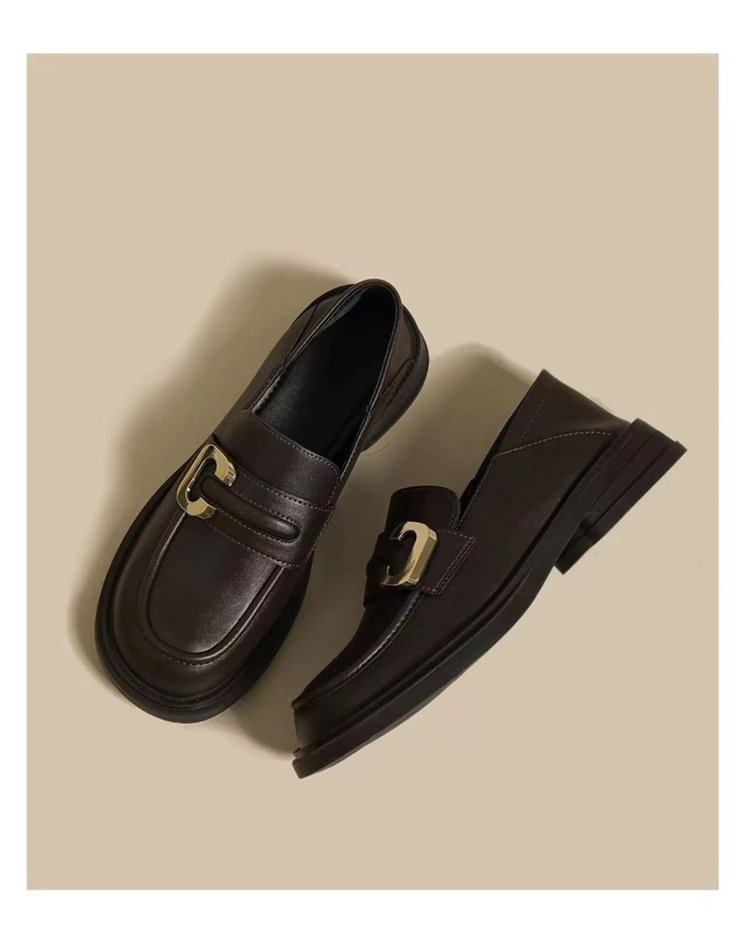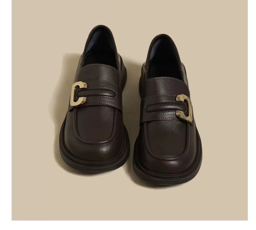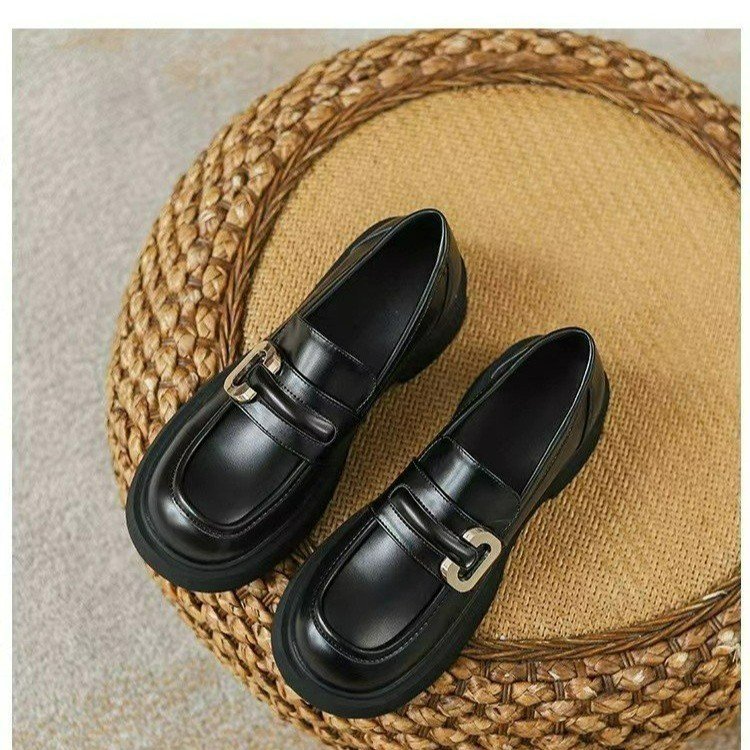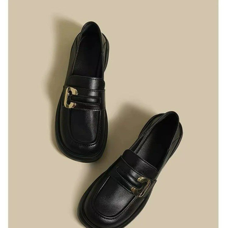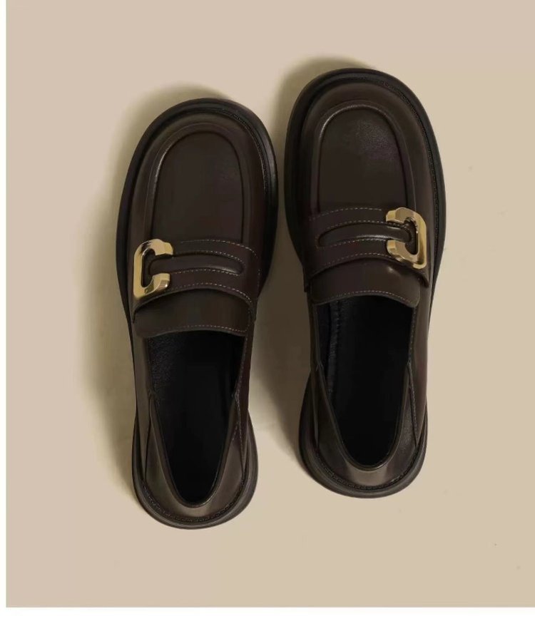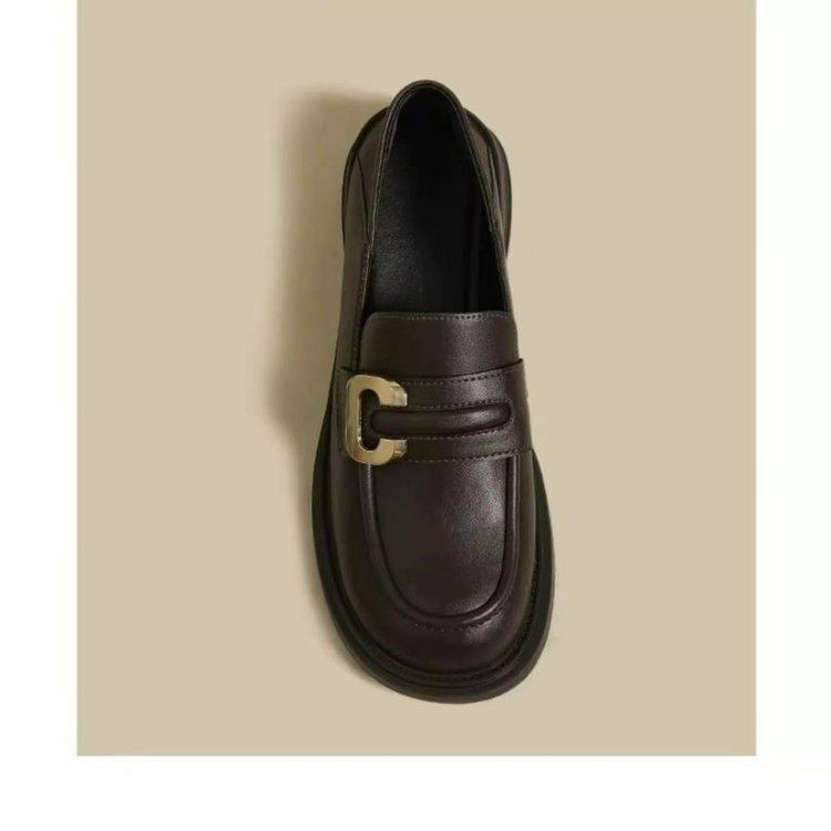 두꺼운 밑창 로퍼 여성의 2024 가을 및 겨울 새로운 싱글 레이어 신발 다크 브라운 평평한 대학 1 단계 영국 스타일의 jk 작은 가죽 신발스토어 가기