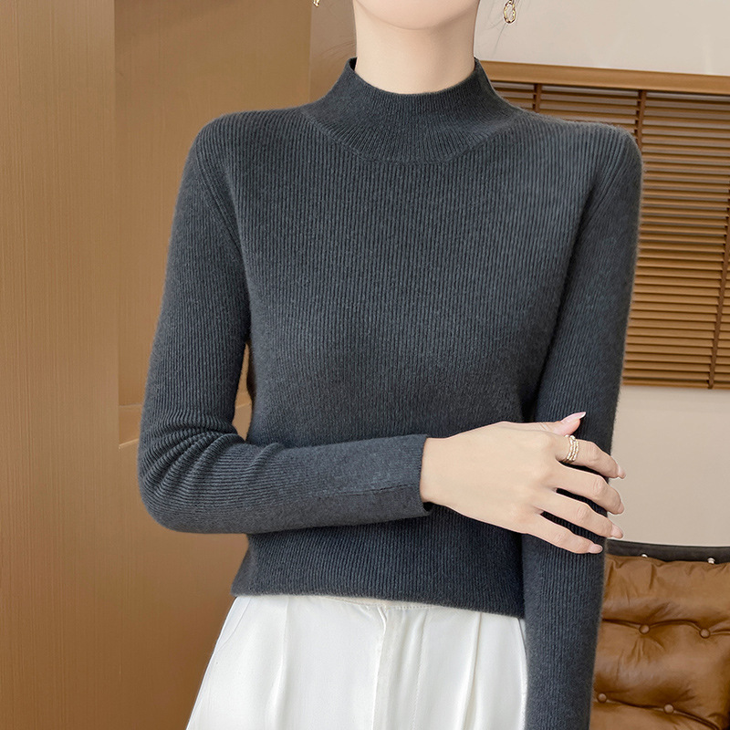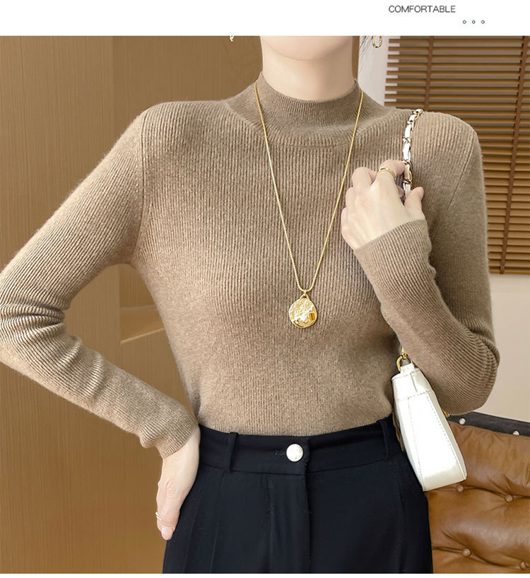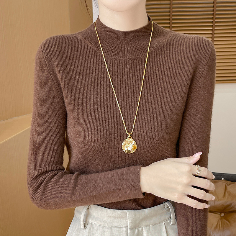 가을과 겨울 새로운 반 높이 칼라 니트 스웨터 여성용 풀오버 드로우 다운베이스 셔츠 패션 올 매치 슬림 핏 슬리밍 내부 스웨터