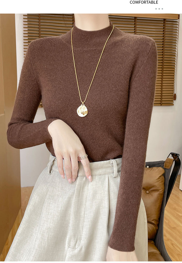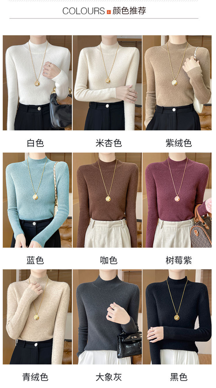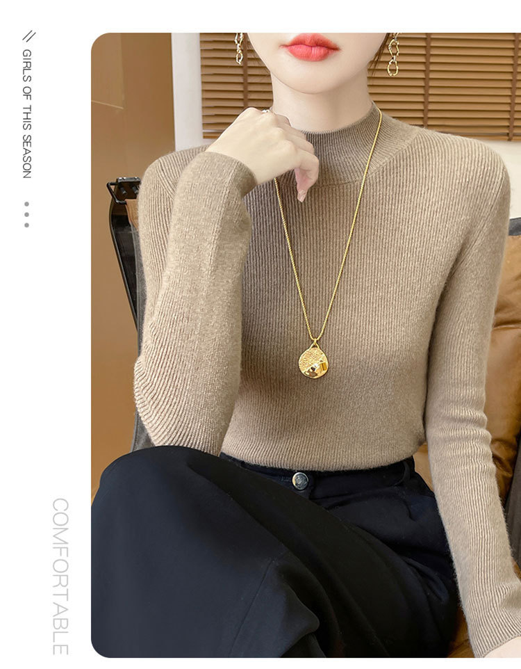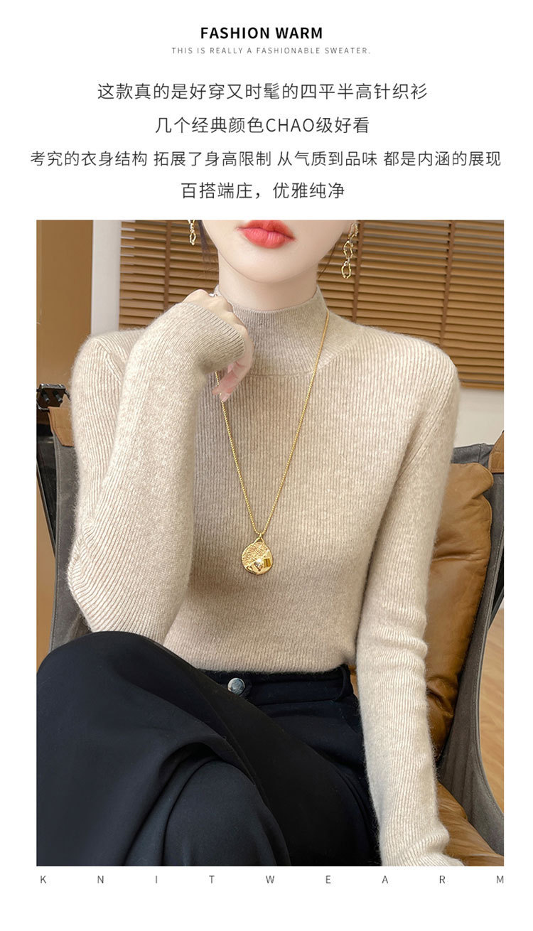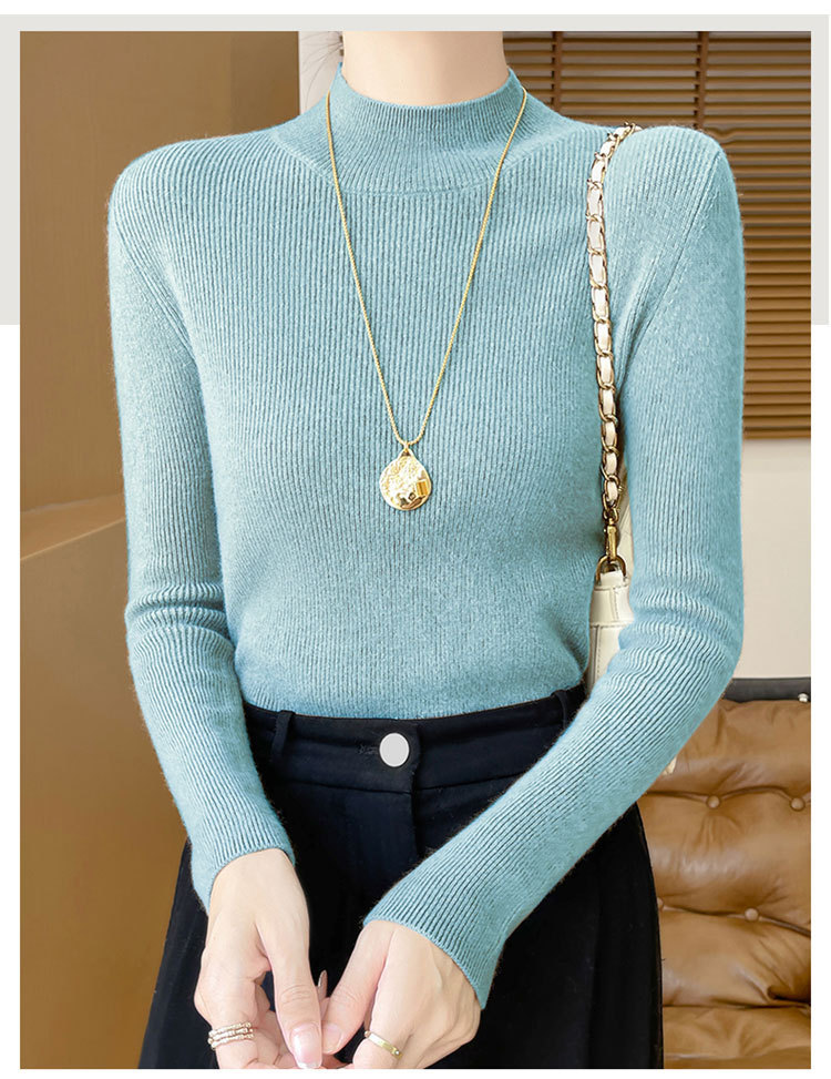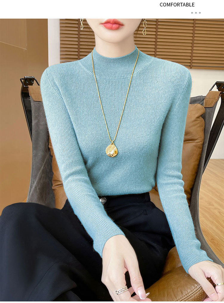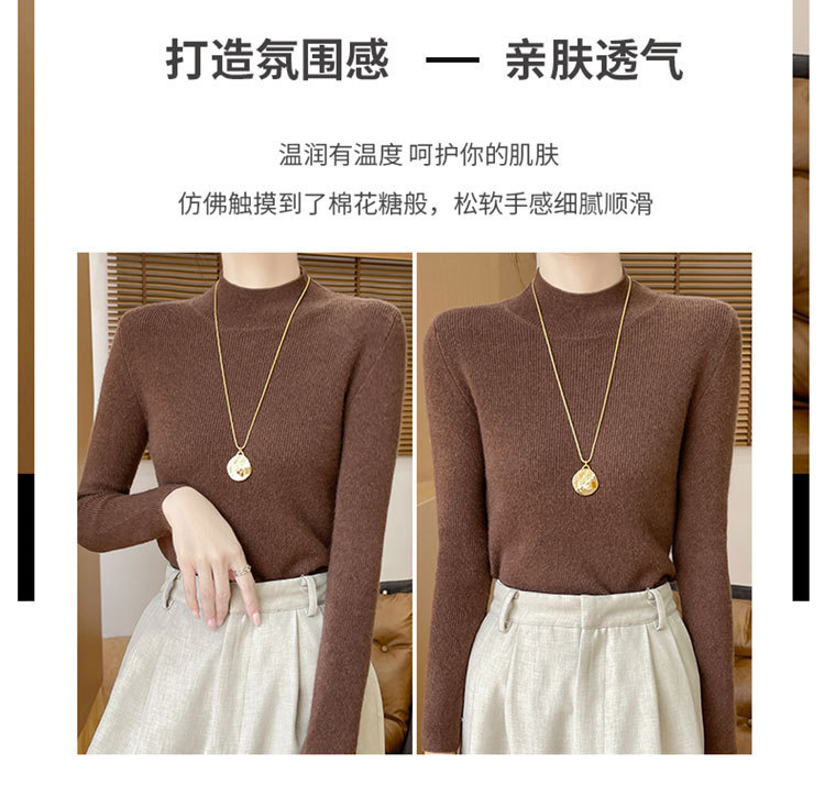 가을과 겨울 새로운 반 높이 칼라 니트 스웨터 여성용 풀오버 드로우 다운베이스 셔츠 패션 올 매치 슬림 핏 슬리밍 내부 스웨터스토어 가기
