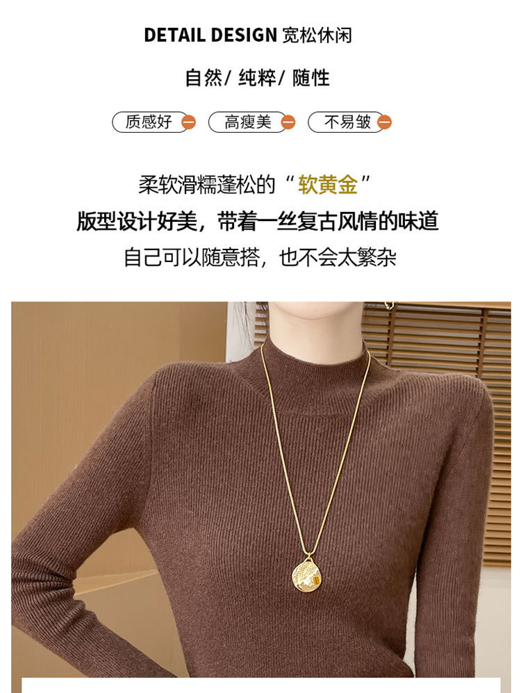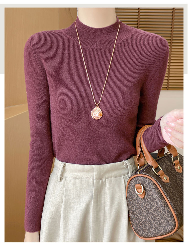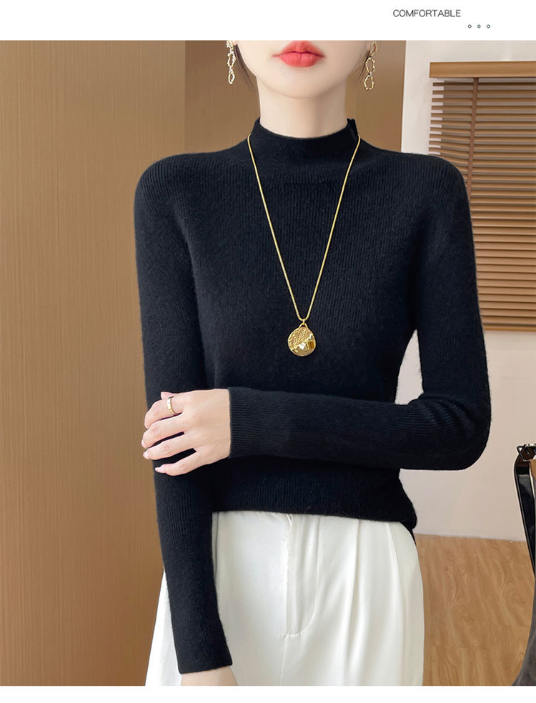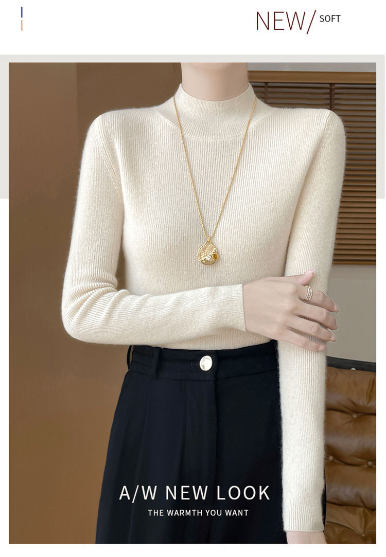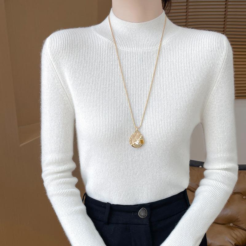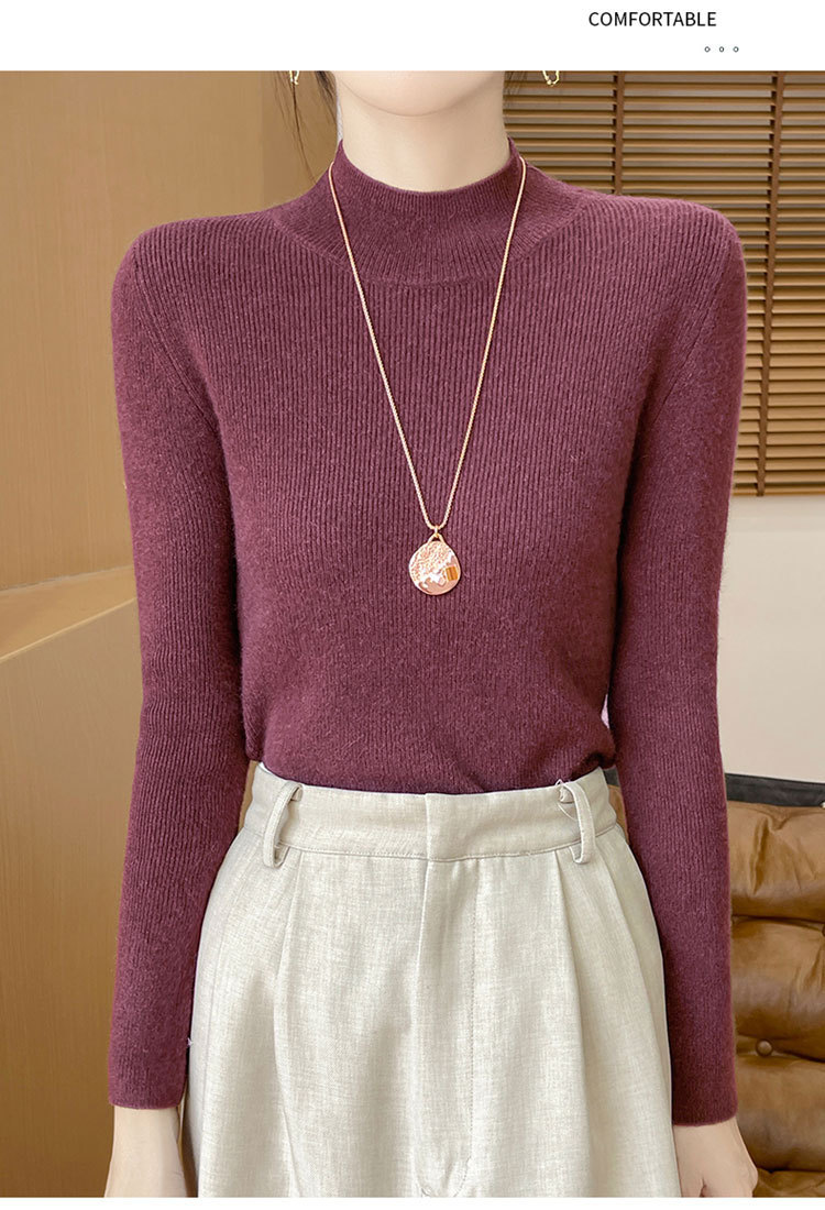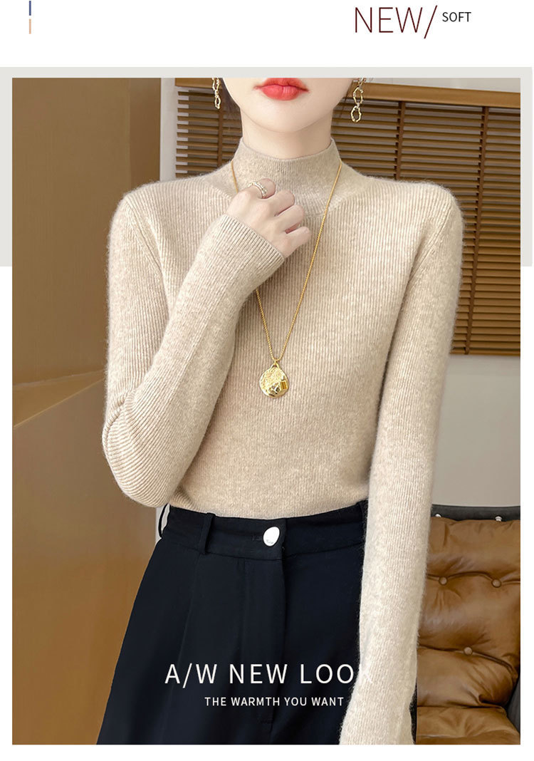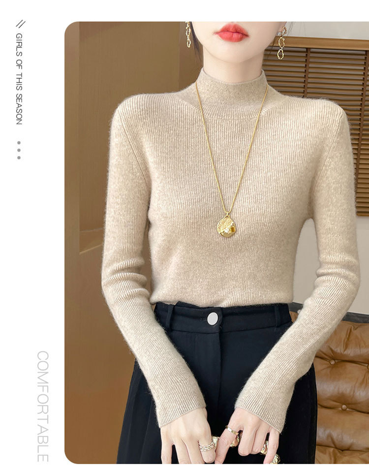 가을과 겨울 새로운 반 높이 칼라 니트 스웨터 여성용 풀오버 드로우 다운베이스 셔츠 패션 올 매치 슬림 핏 슬리밍 내부 스웨터스토어 가기