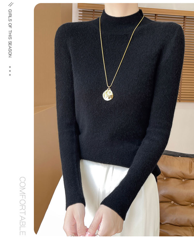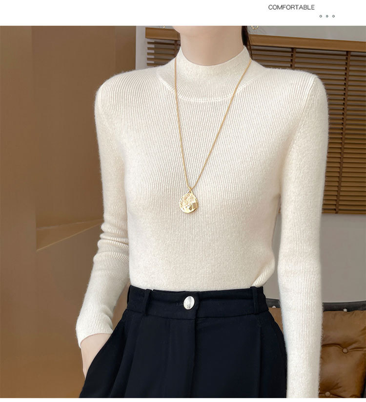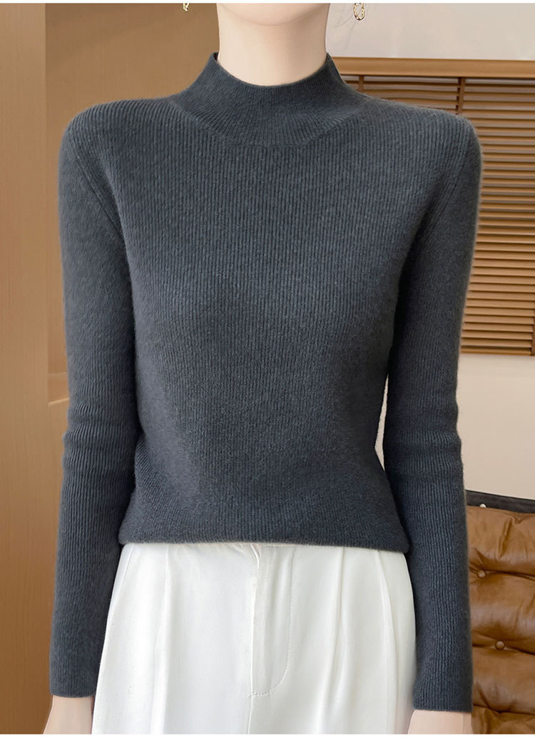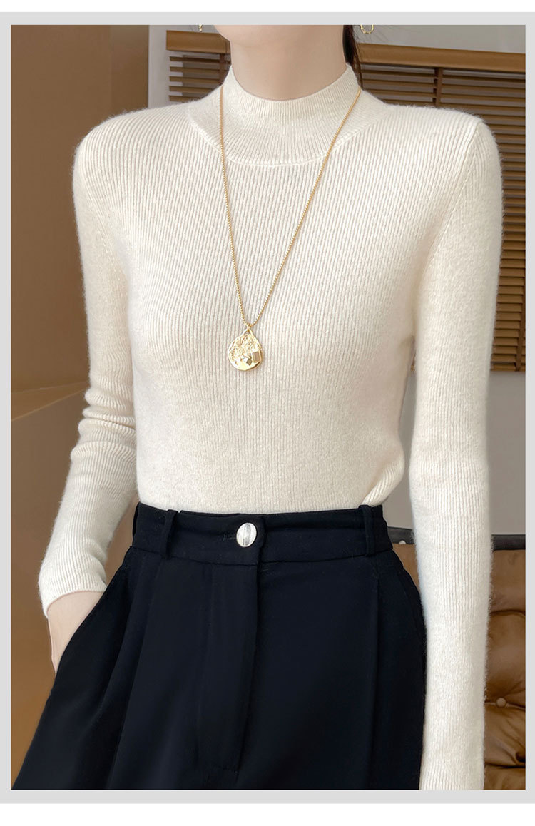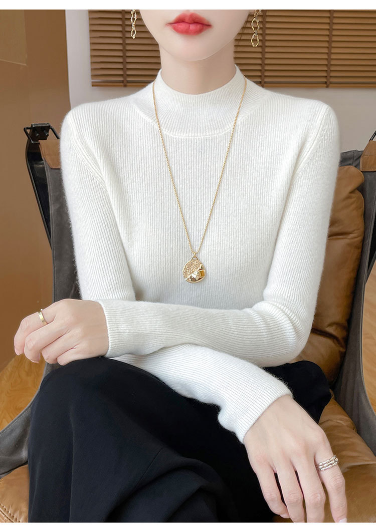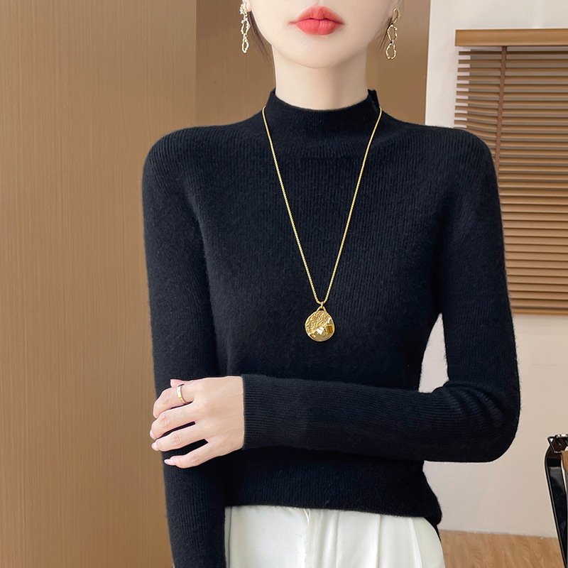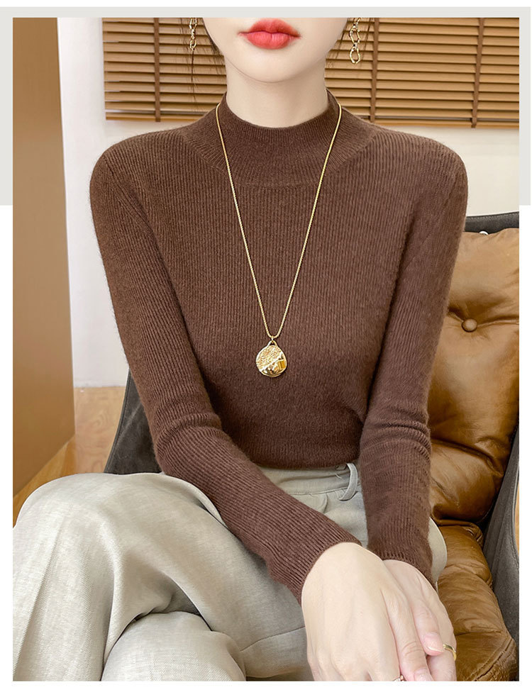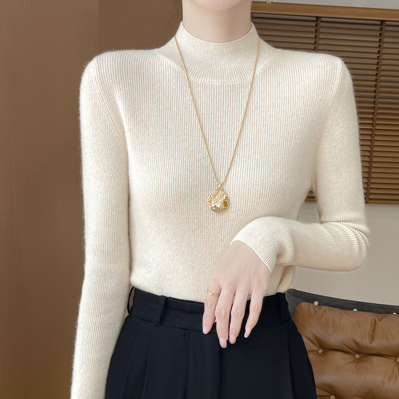 가을과 겨울 새로운 반 높이 칼라 니트 스웨터 여성용 풀오버 드로우 다운베이스 셔츠 패션 올 매치 슬림 핏 슬리밍 내부 스웨터스토어 가기