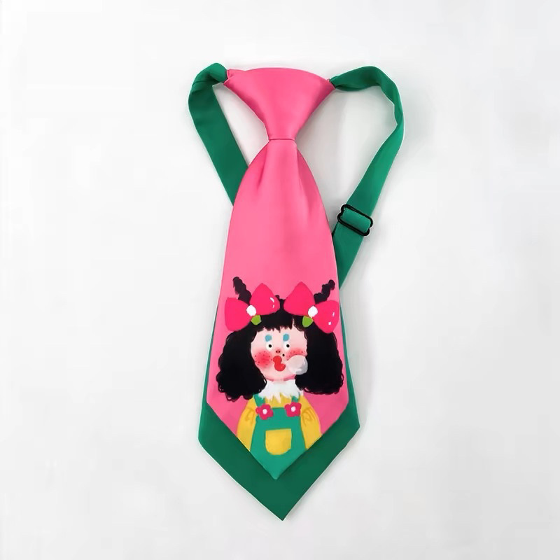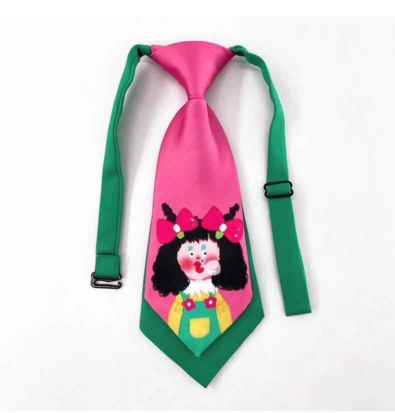 RORY 원래 인쇄 된 더블 레이어 넥타이-무료 작은 넥타이 핑크 녹색 달콤한 쿨 칼리지 jK 소녀 y2k 액세서리 미운 귀여운 소녀