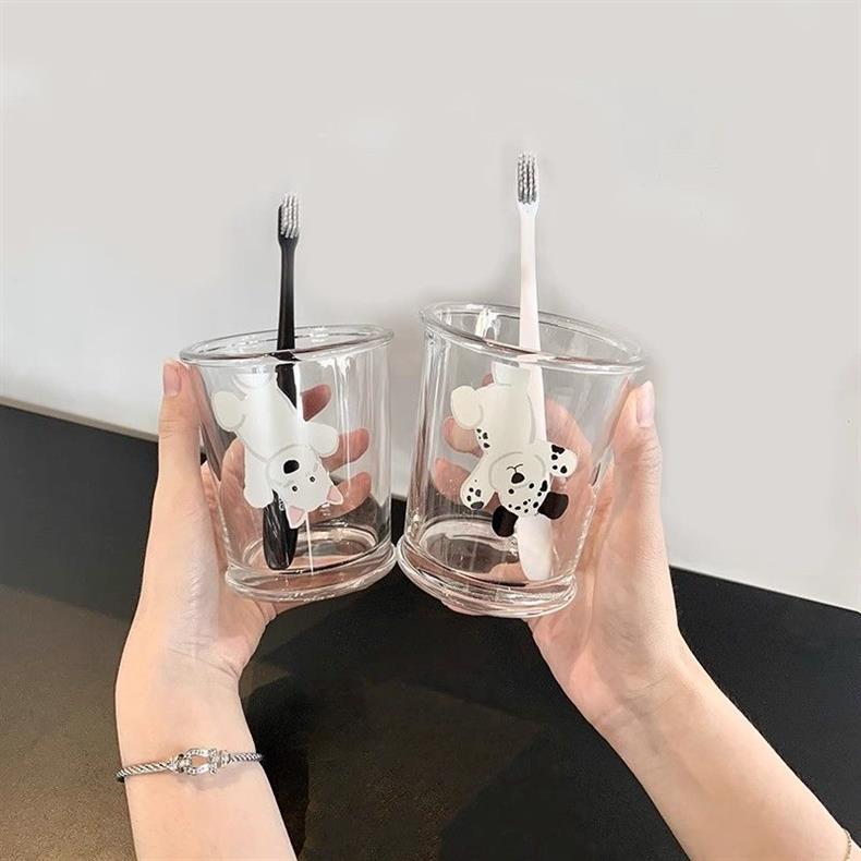 간단한 곰팡이 방지 워시 컵 커플의 치과 탱크 기숙사 워터 컵 세트 인 스타일 귀여운 가정용 유리 마우스 워시 컵스토어 가기