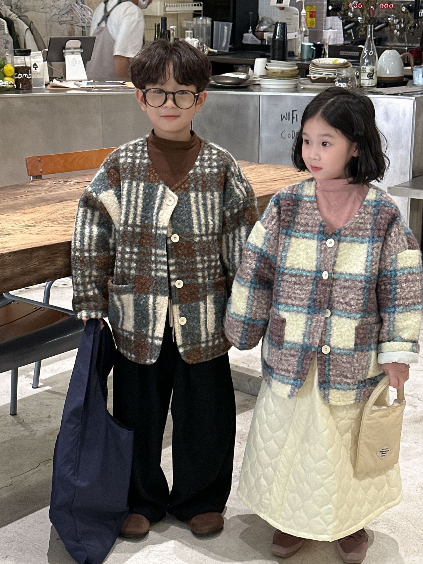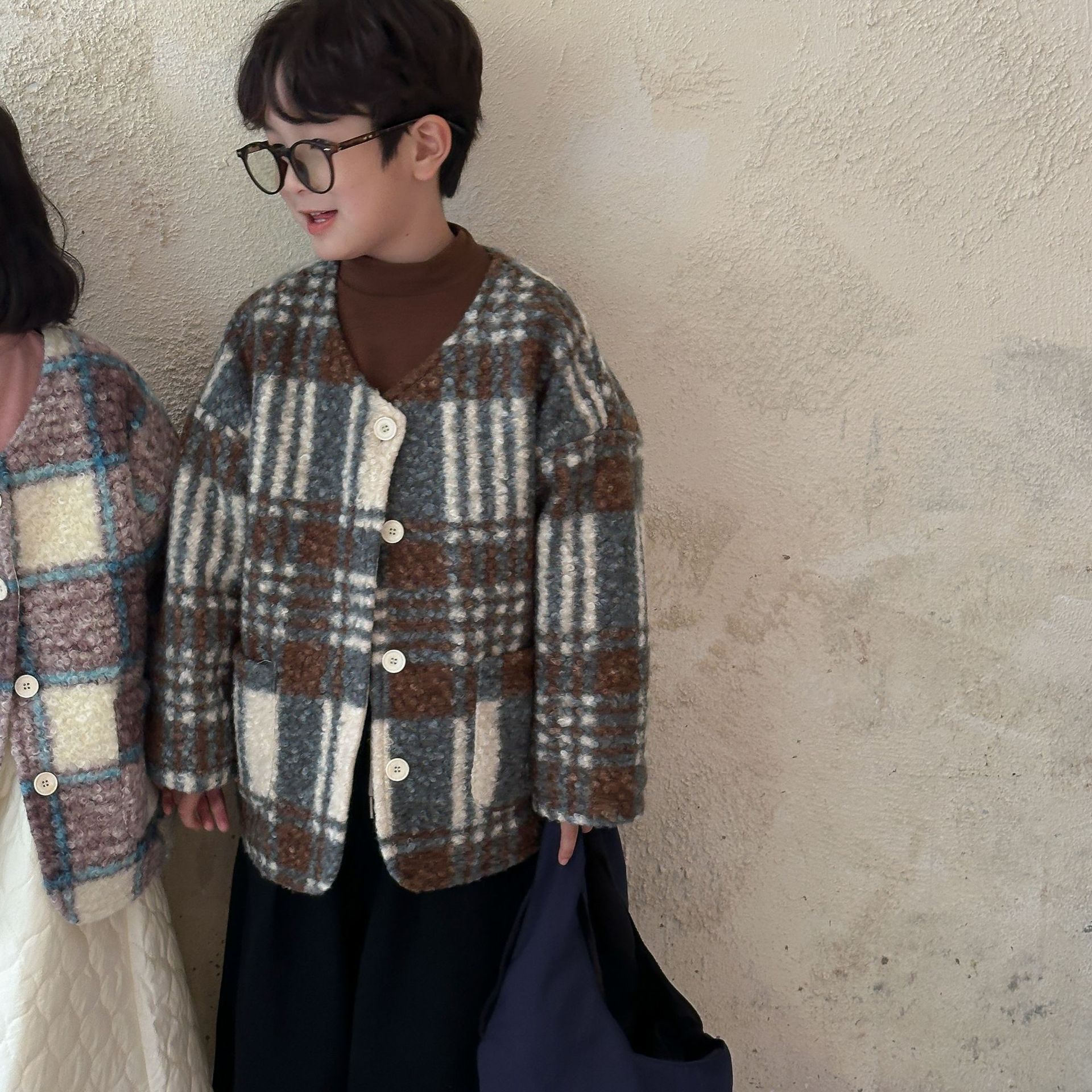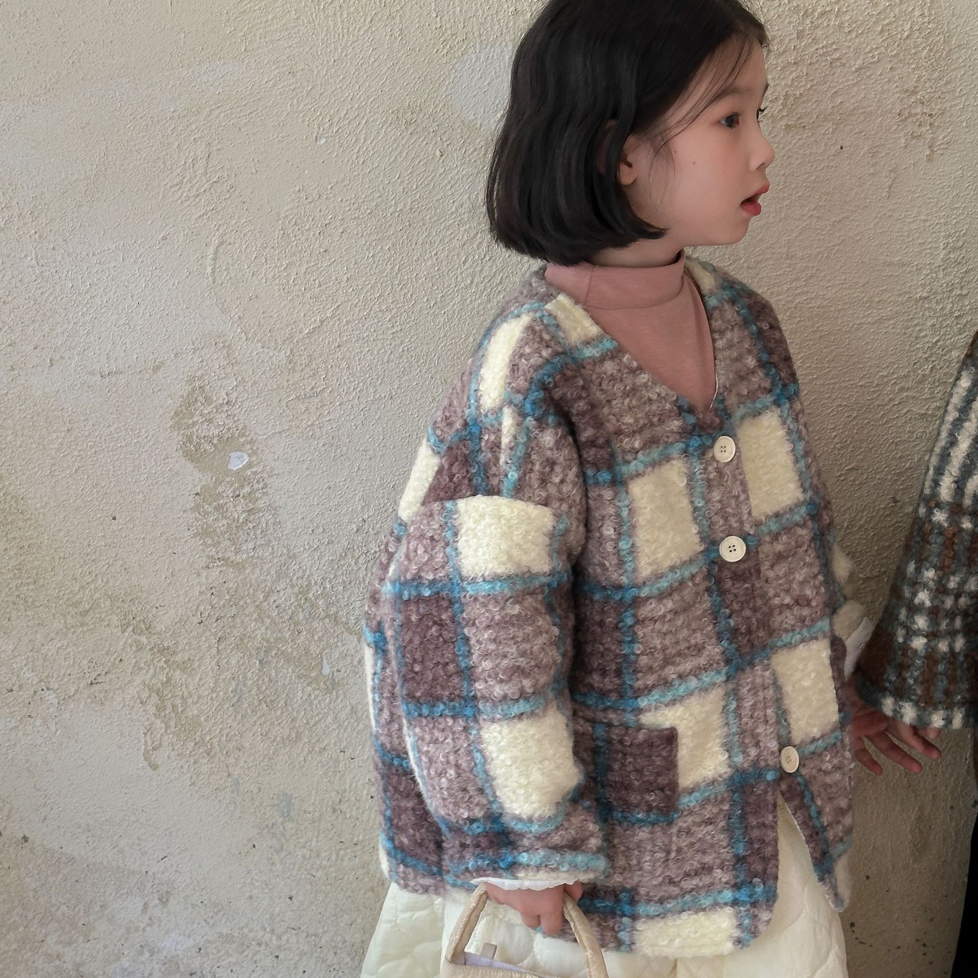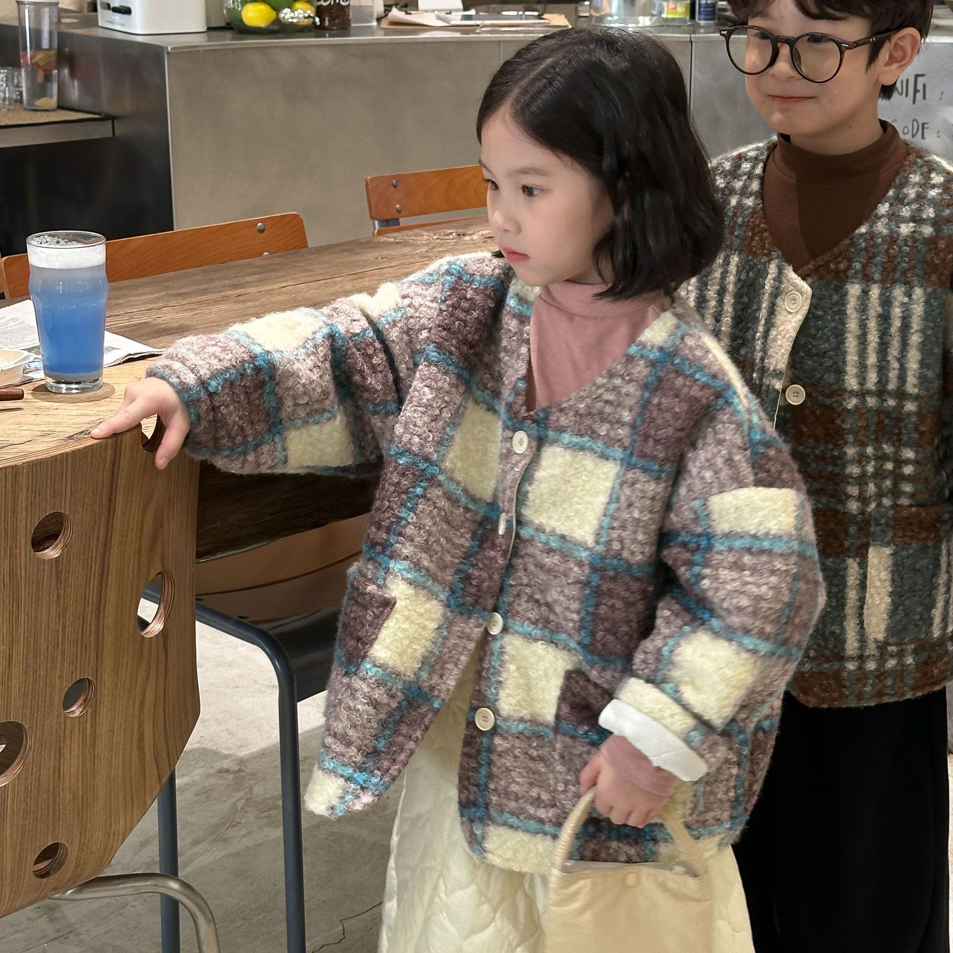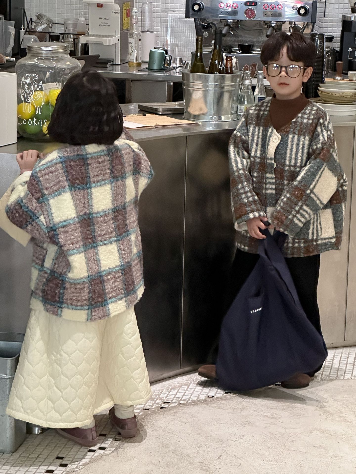 아동용 코트 2025 겨울 남아 여아 한국 스타일 체크무늬 상의 아동 캐주얼 두꺼운 샤넬 스타일 면옷스토어 가기
