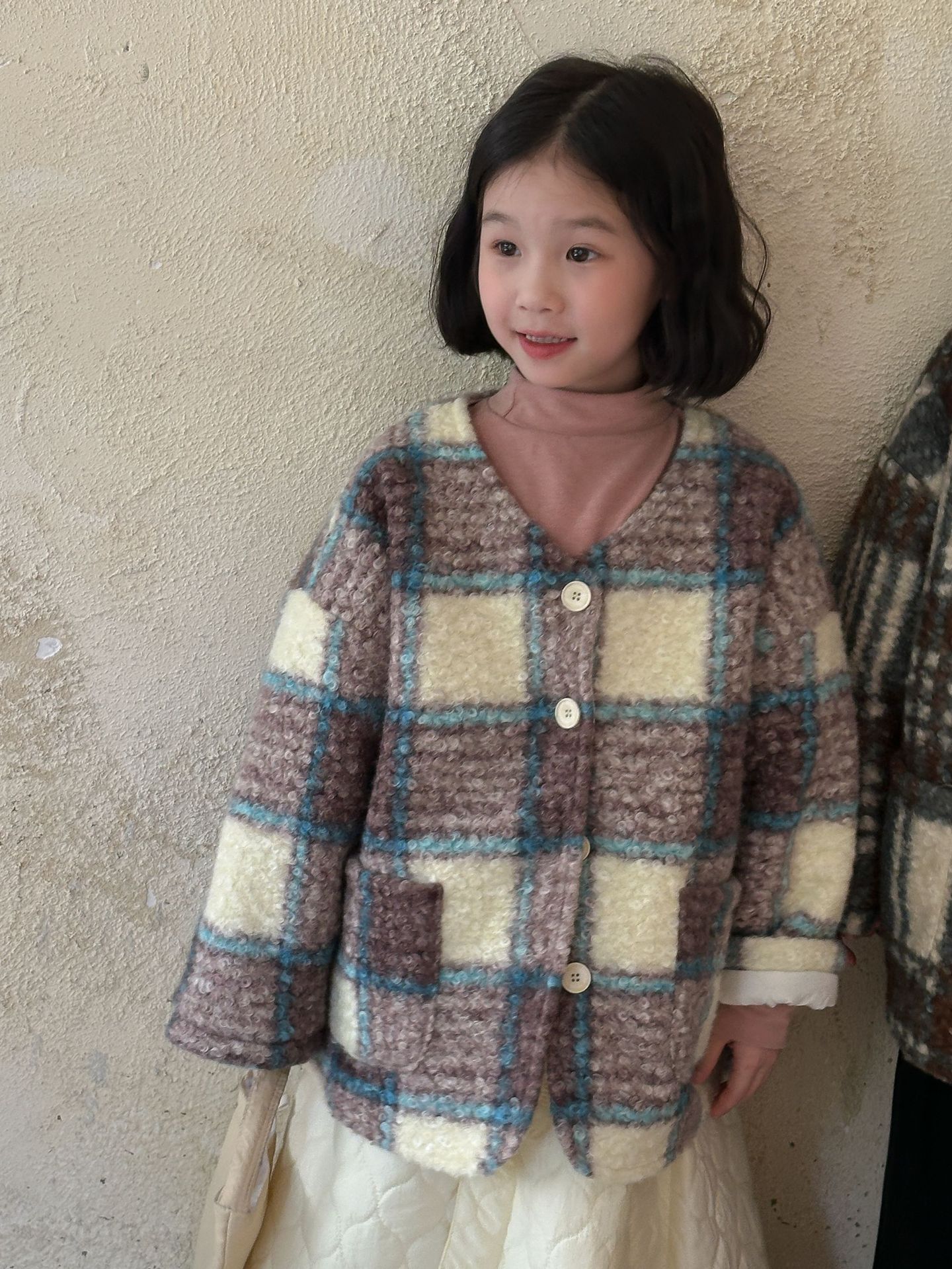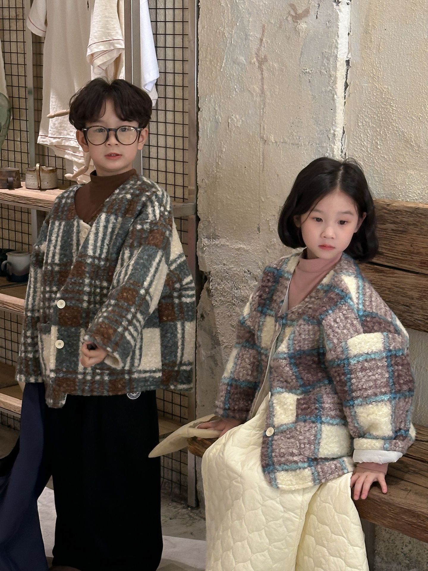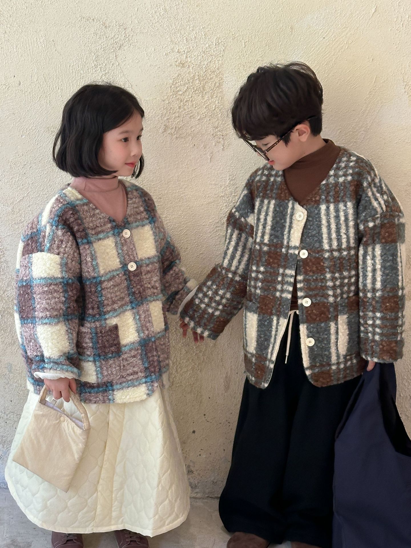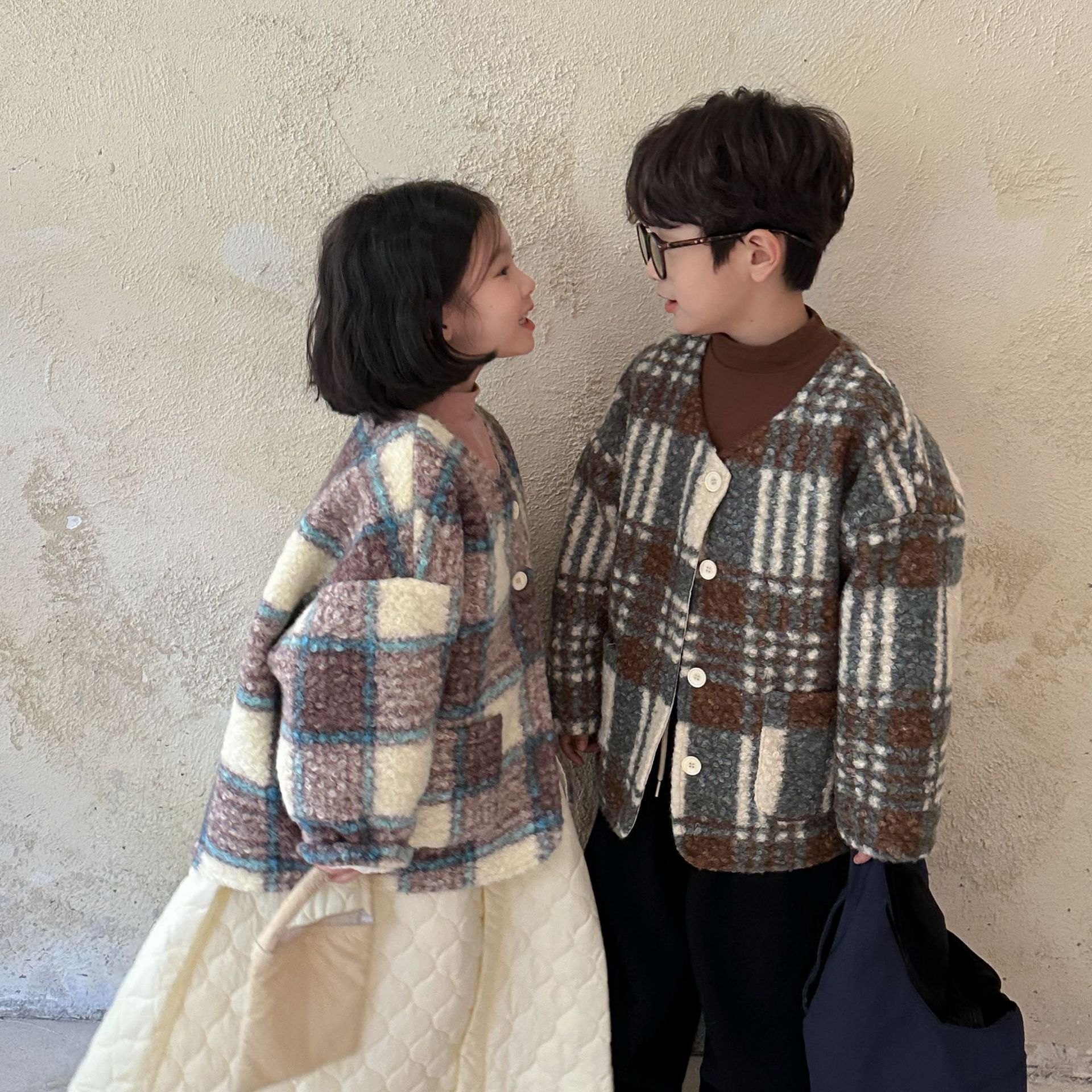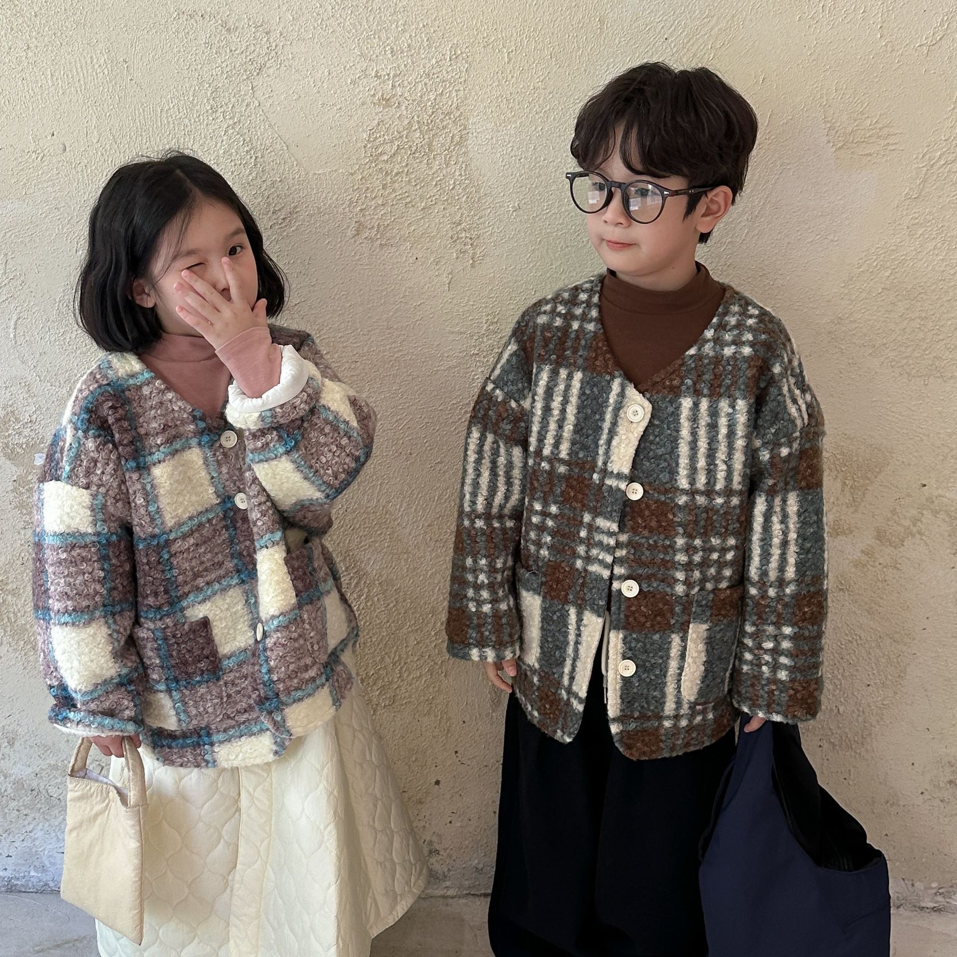 아동용 코트 2025 겨울 남아 여아 한국 스타일 체크무늬 상의 아동 캐주얼 두꺼운 샤넬 스타일 면옷스토어 가기