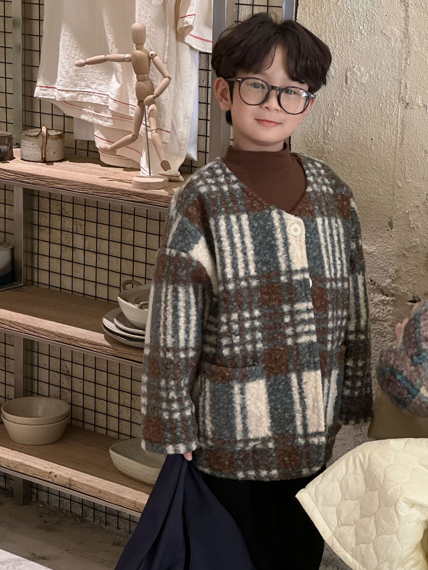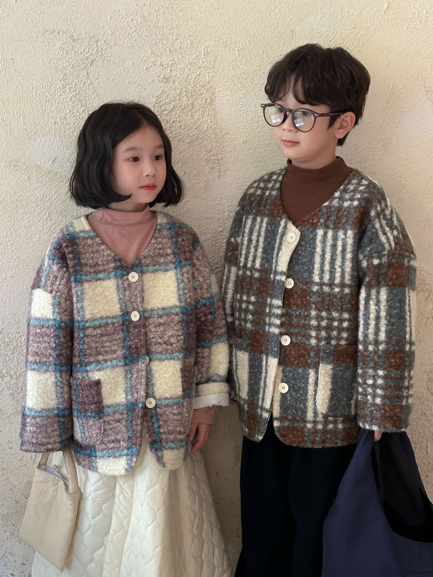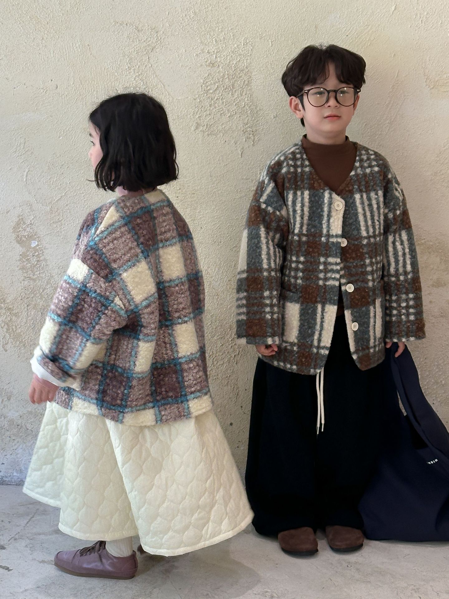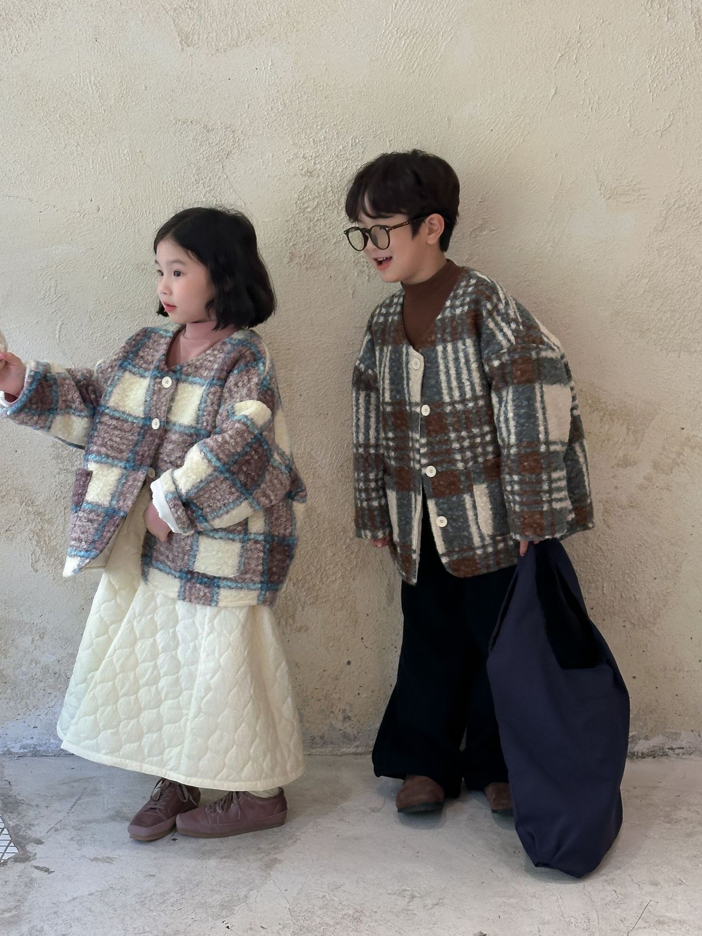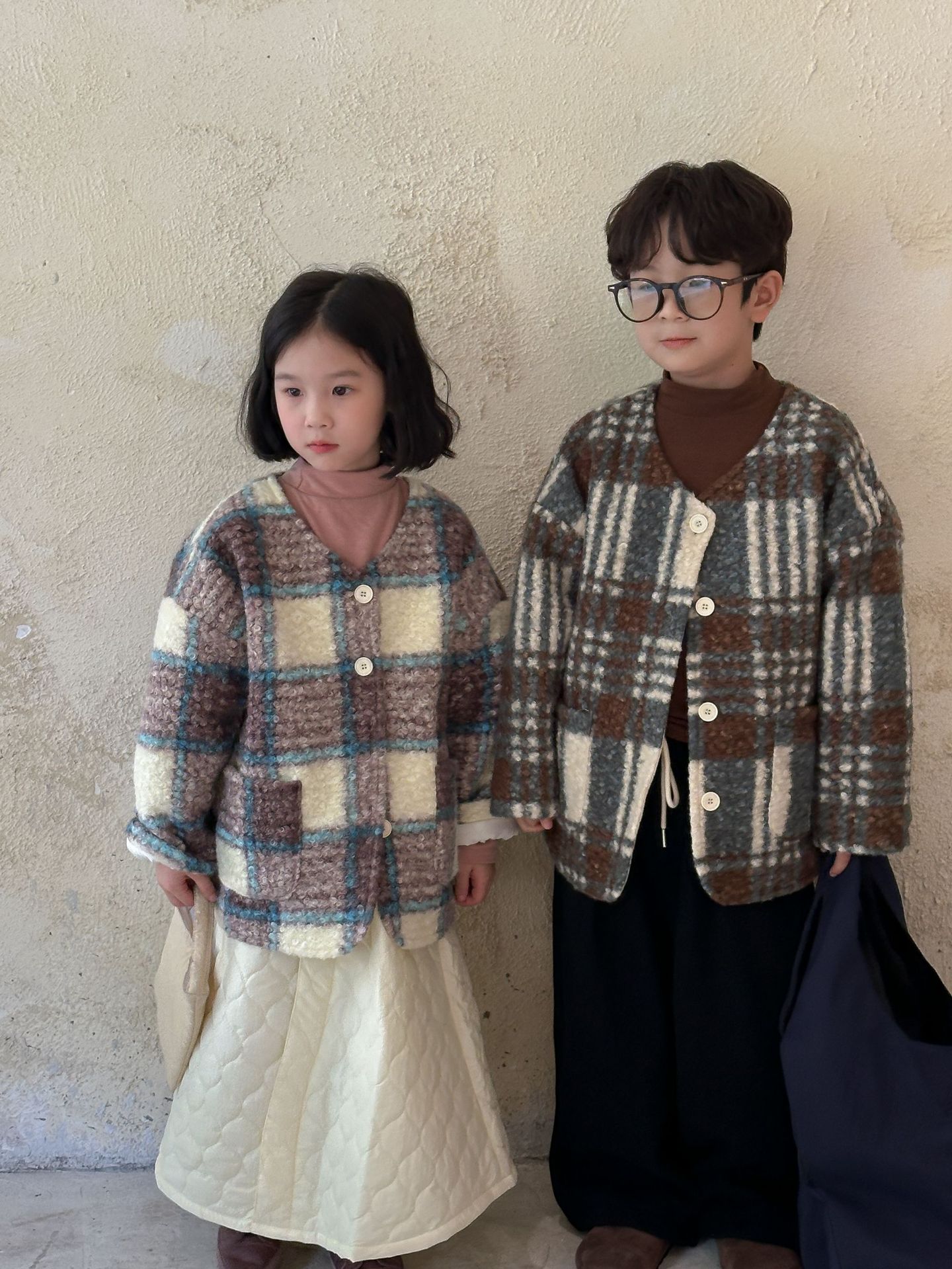 아동용 코트 2025 겨울 남아 여아 한국 스타일 체크무늬 상의 아동 캐주얼 두꺼운 샤넬 스타일 면옷스토어 가기
