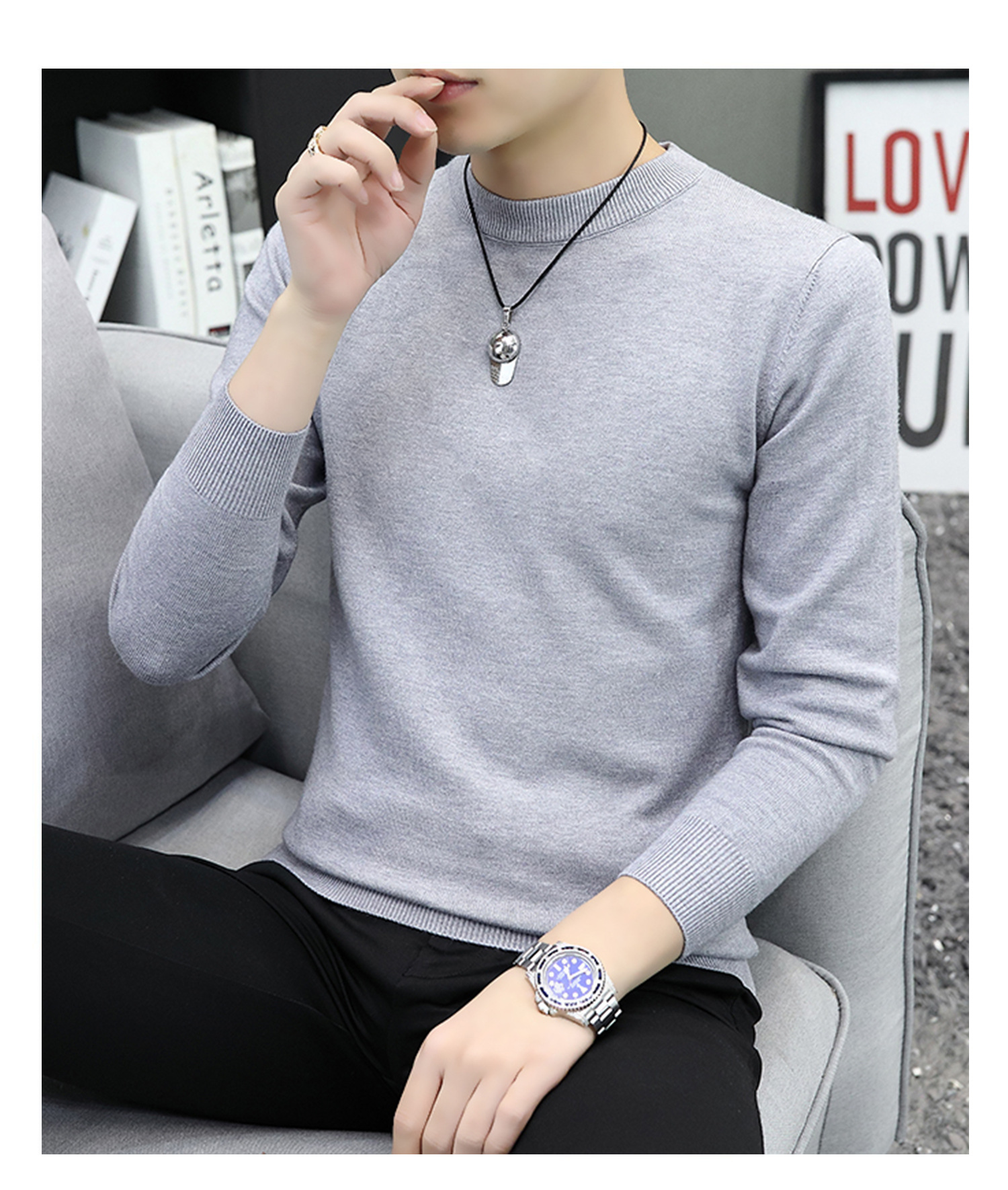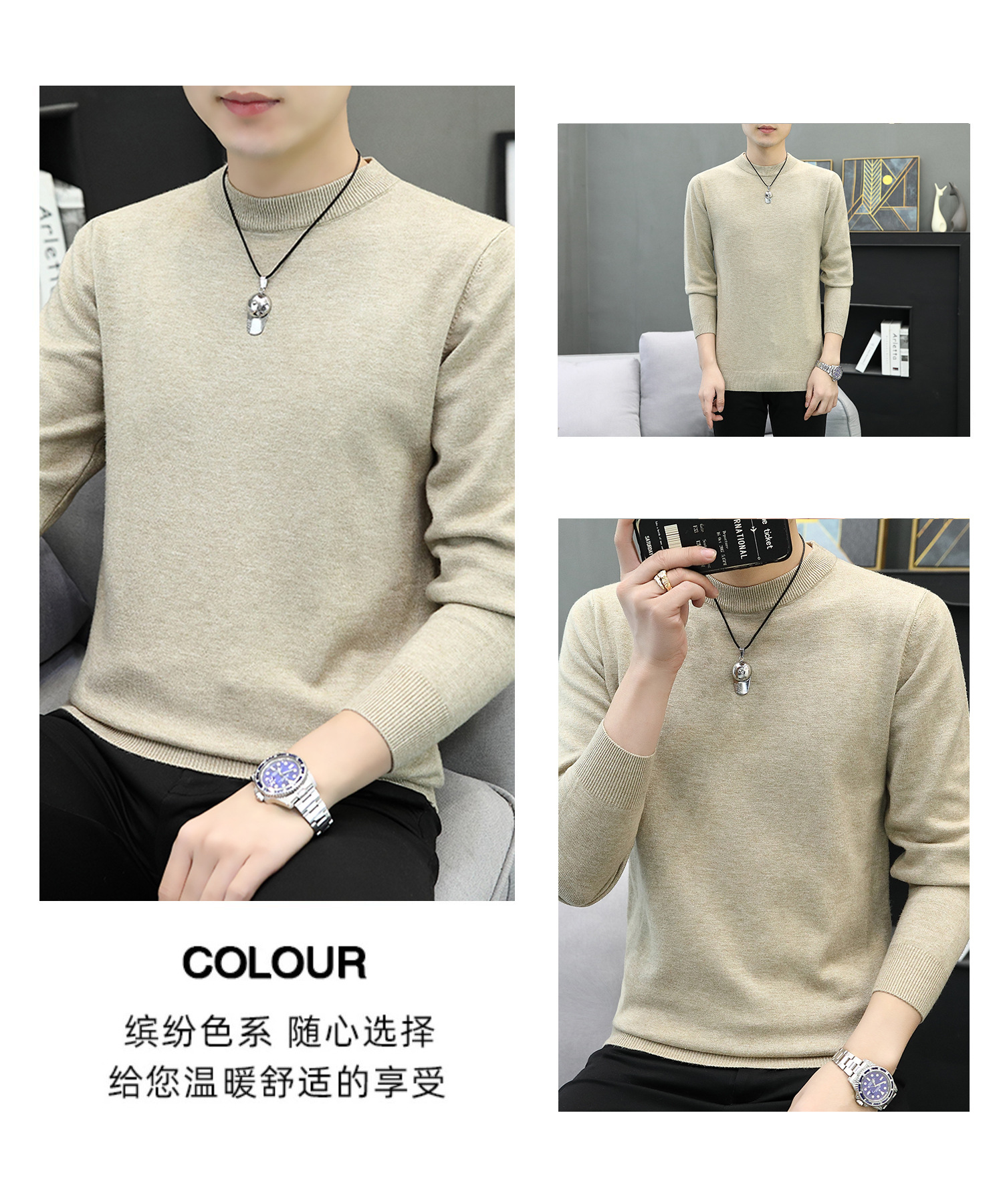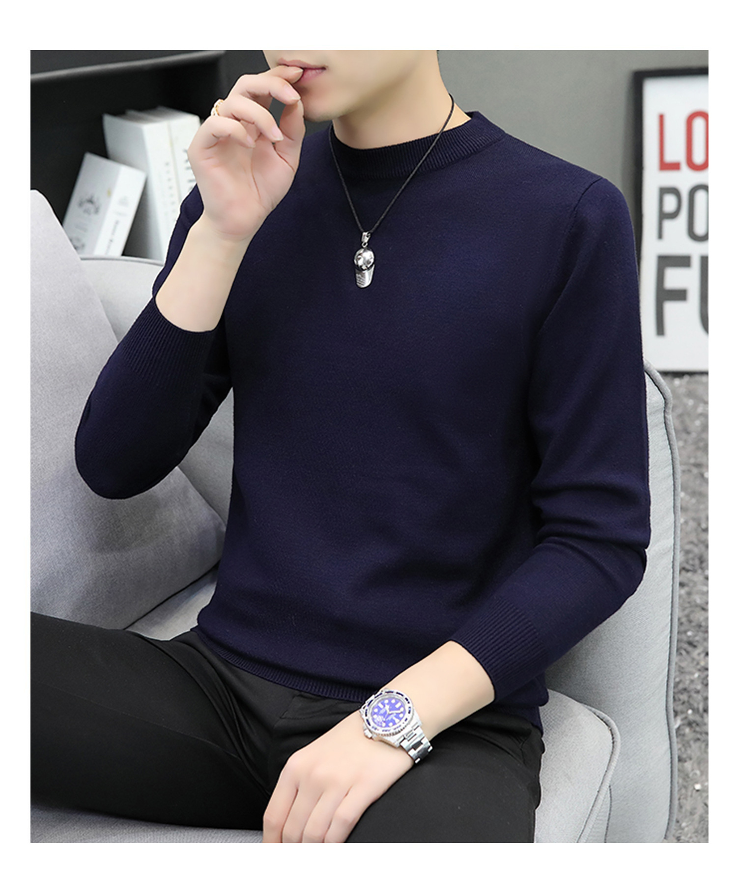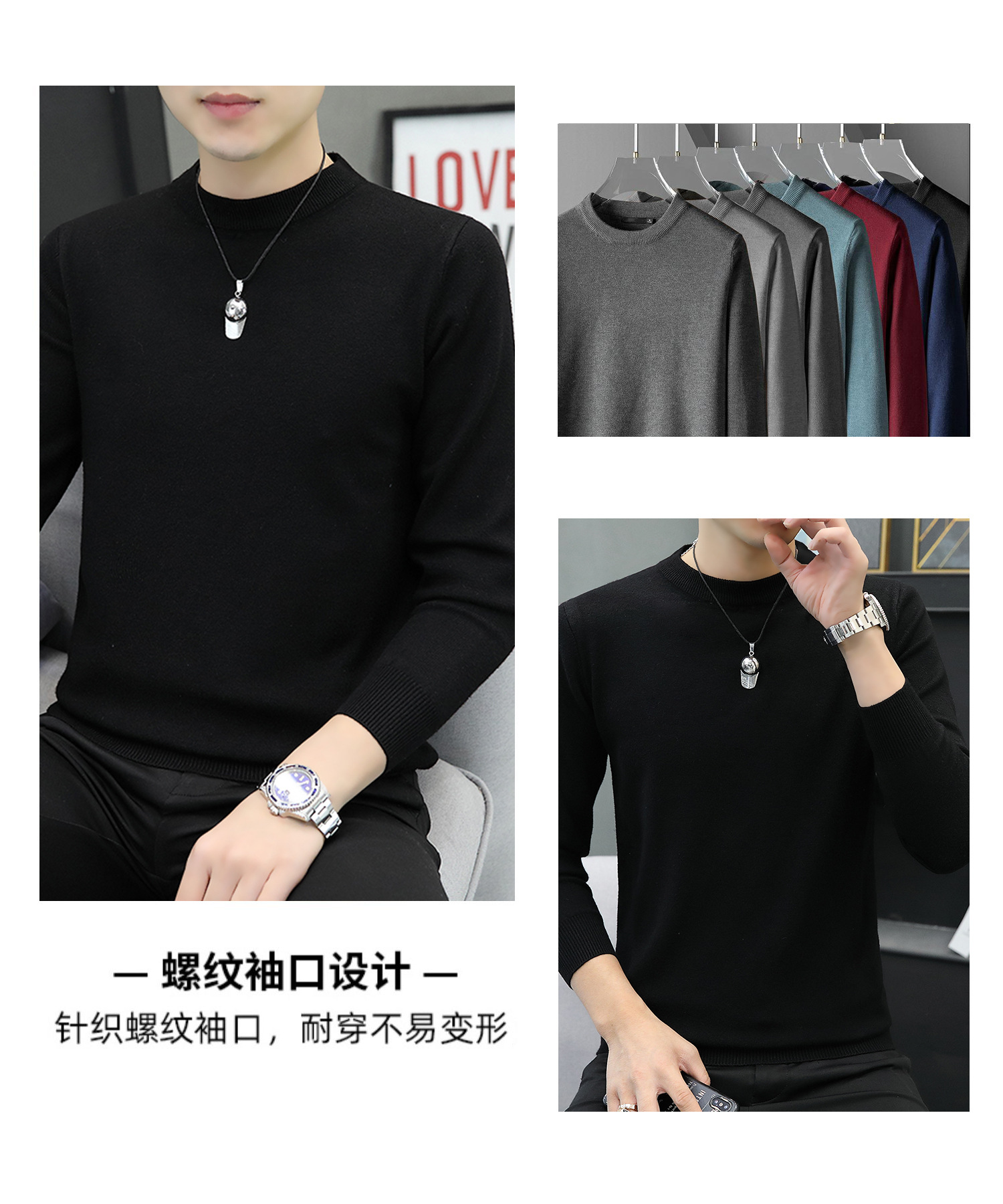 라운드넥 남성 니트 스웨터 가을 겨울 다용도 이너웨어 보온 스웨터 2025 신상 슬림핏스토어 가기