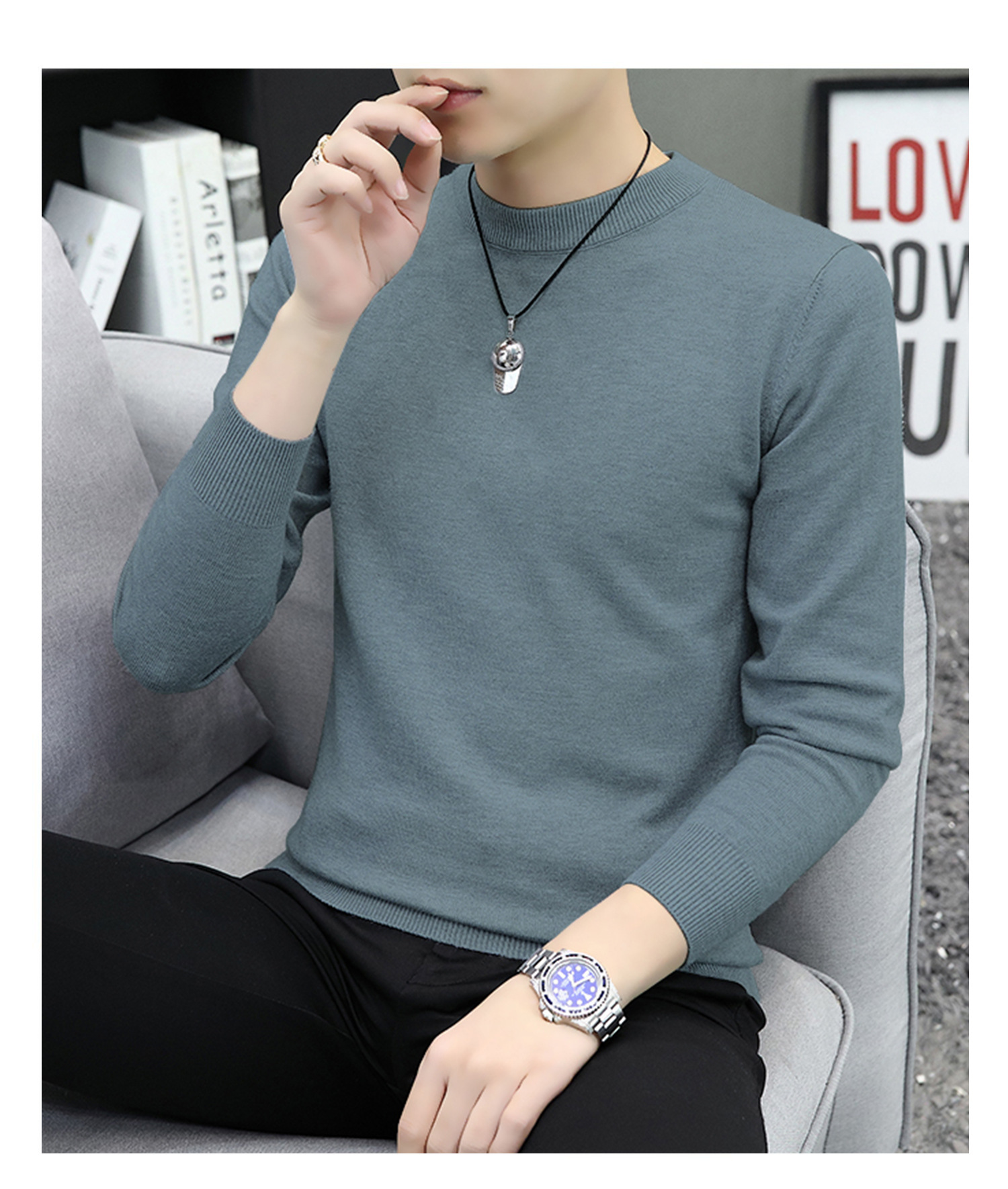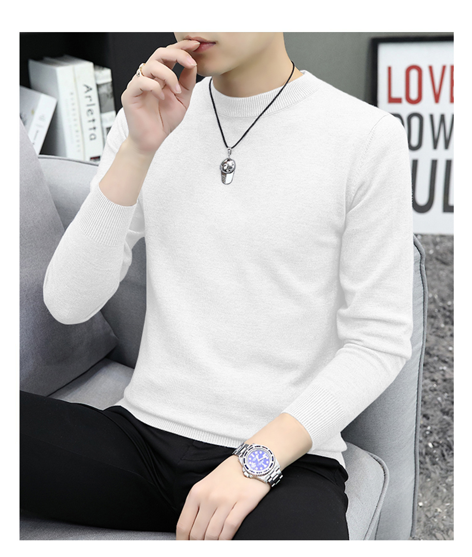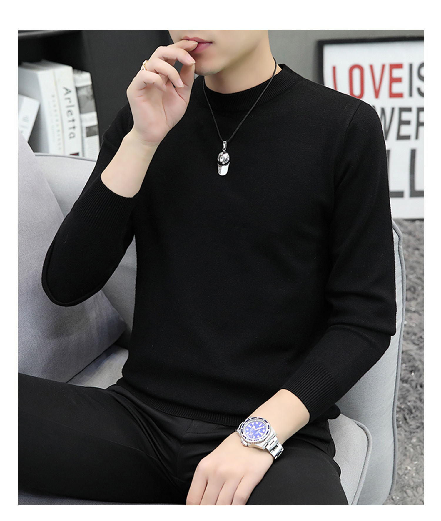 라운드넥 남성 니트 스웨터 가을 겨울 다용도 이너웨어 보온 스웨터 2025 신상 슬림핏스토어 가기