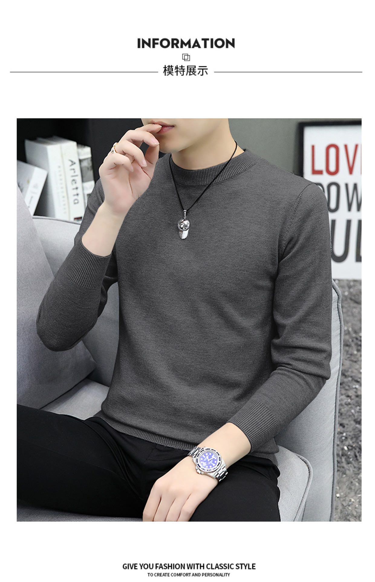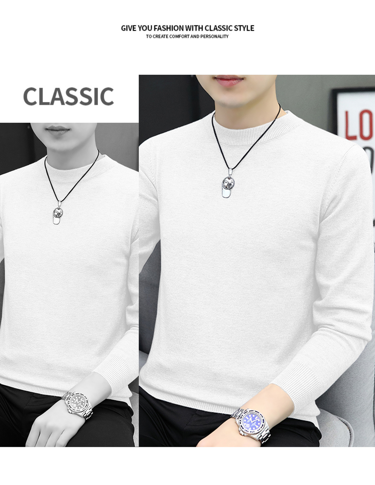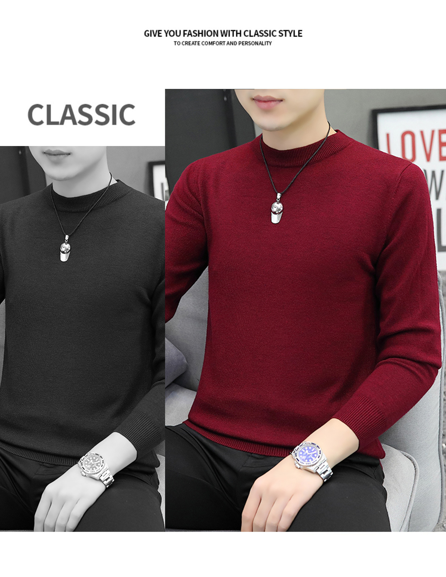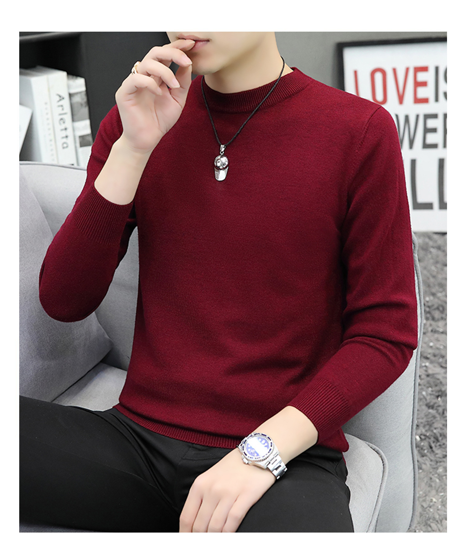라운드넥 남성 니트 스웨터 가을 겨울 다용도 이너웨어 보온 스웨터 2025 신상 슬림핏스토어 가기