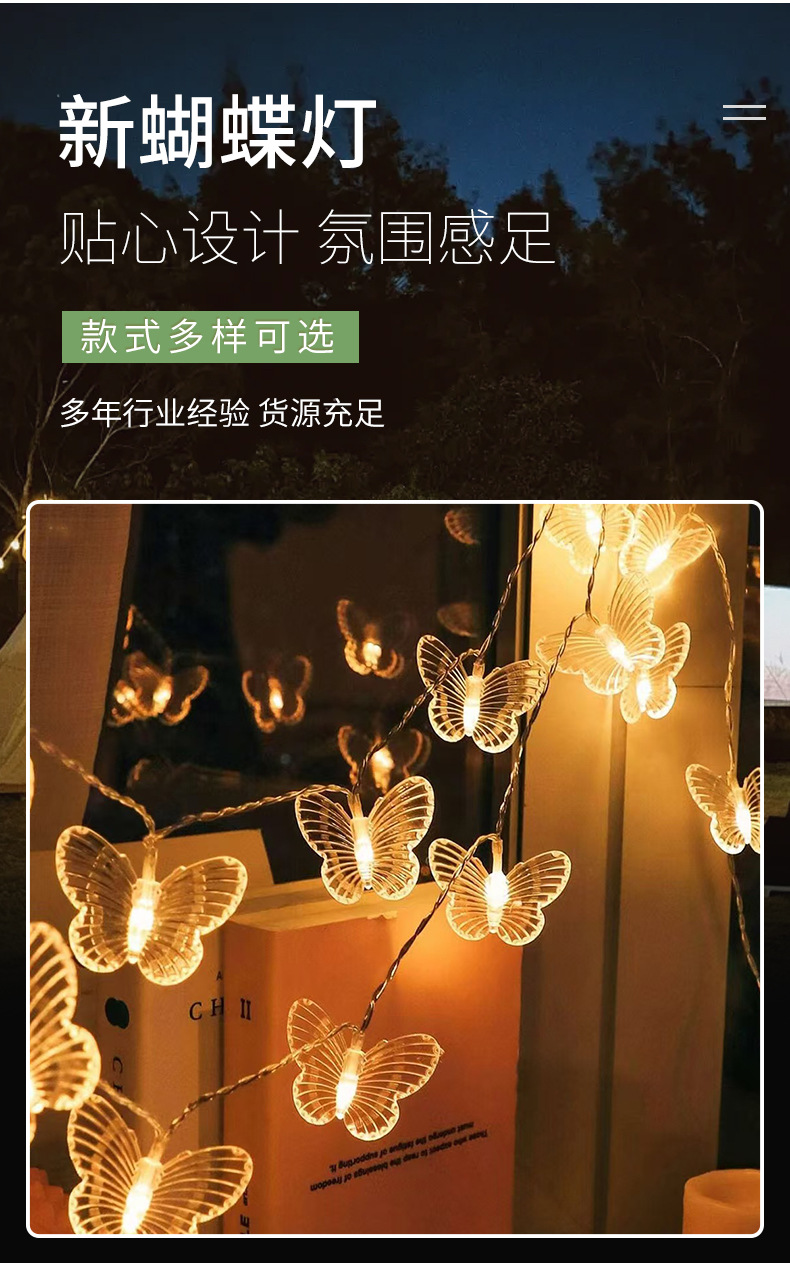 새로운 LED 새로운 나비 램프 플래시 램프 문자열 램프 분위기 램프 장식 램프 매달려 장식 전기 도금 램프 문자열 조명 결혼식