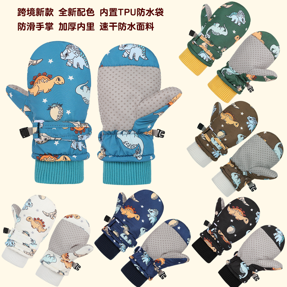 국경 새 어린이 방수 스키 장갑 기모 두꺼운 소년 장갑 겨울 소녀 장갑 아기 장갑