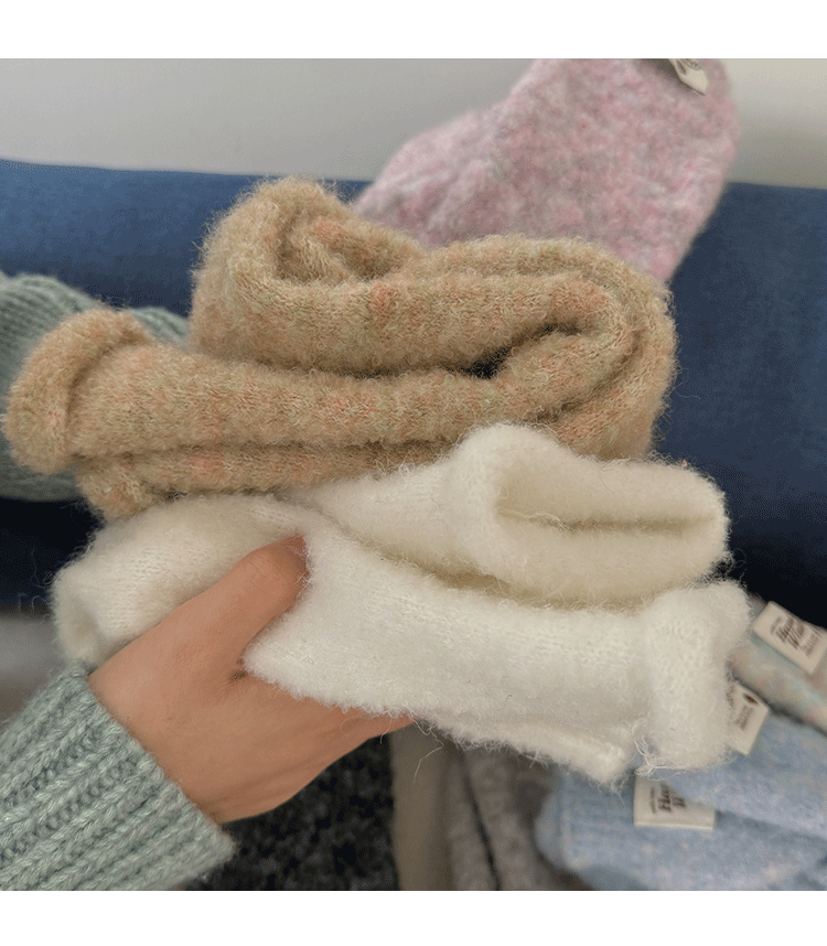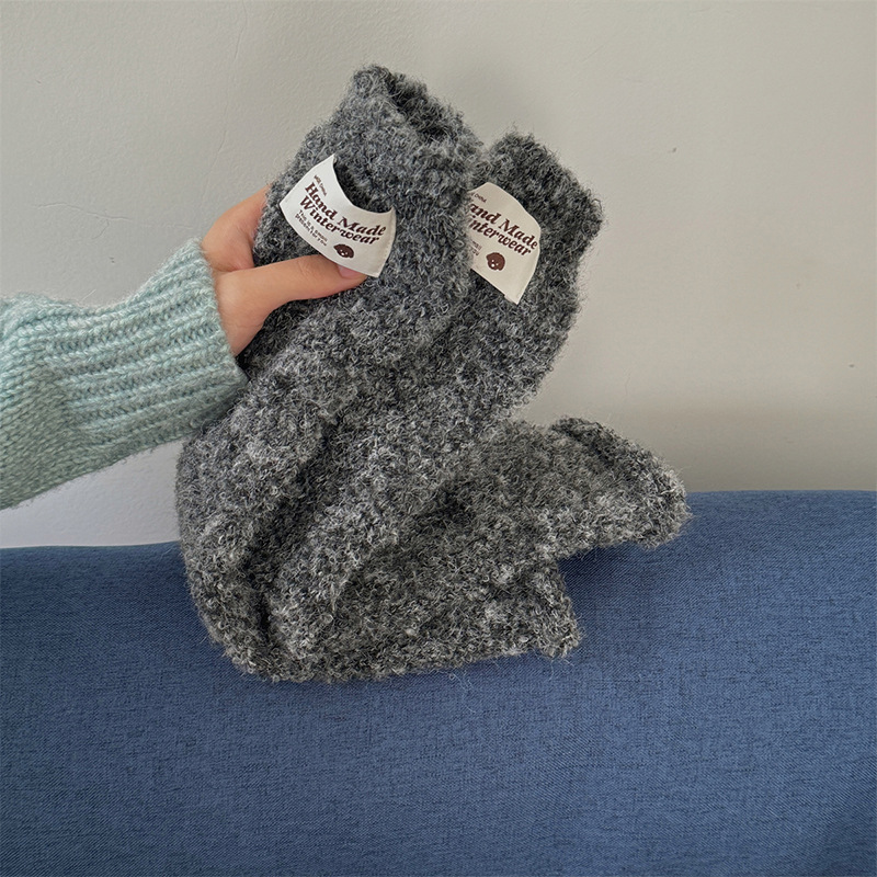 컬러 솜사탕 양말 여성의 가을과 겨울 y2k 하위 문화 틈새 단색 따뜻한 두꺼운 천 라벨 양말 여성 다리 커버스토어 가기