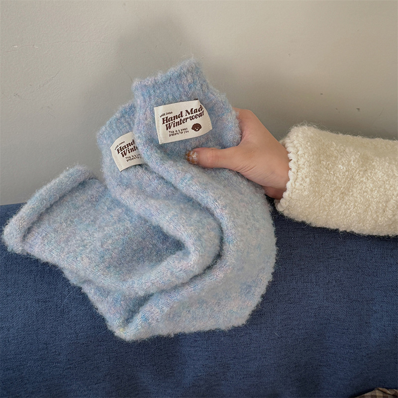 컬러 솜사탕 양말 여성의 가을과 겨울 y2k 하위 문화 틈새 단색 따뜻한 두꺼운 천 라벨 양말 여성 다리 커버