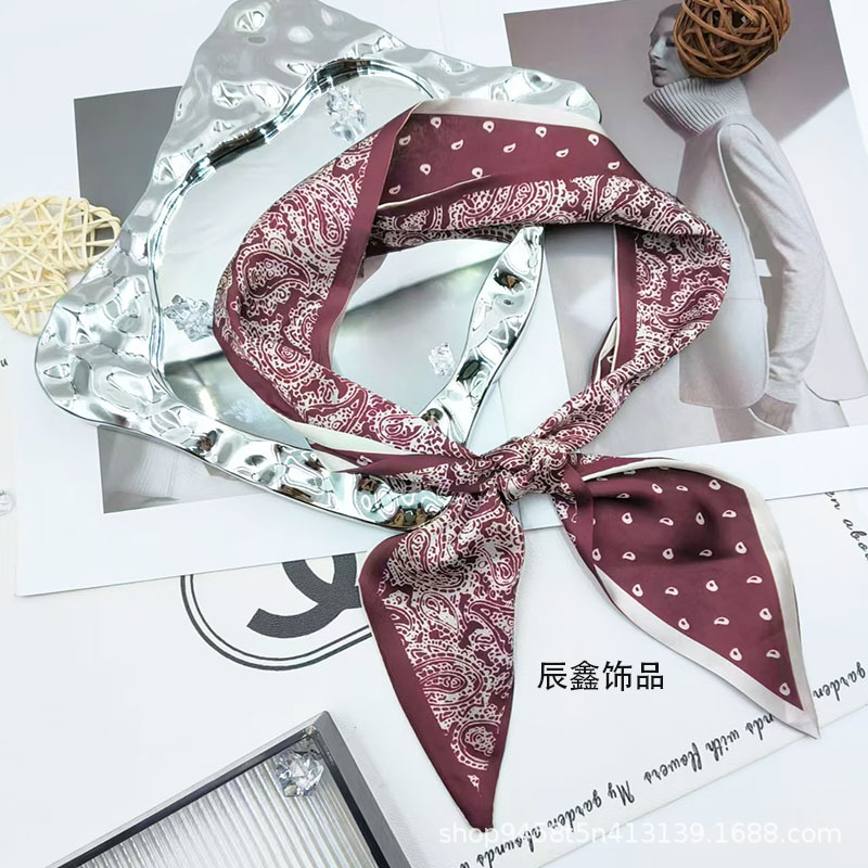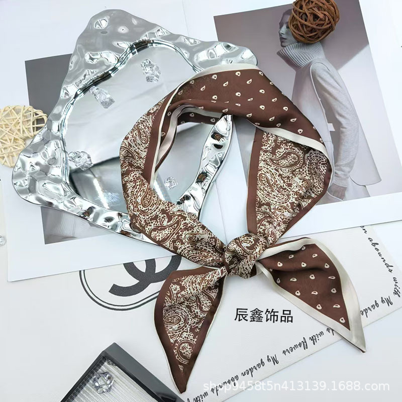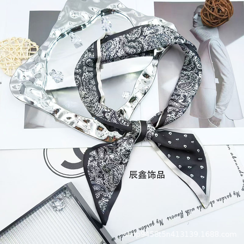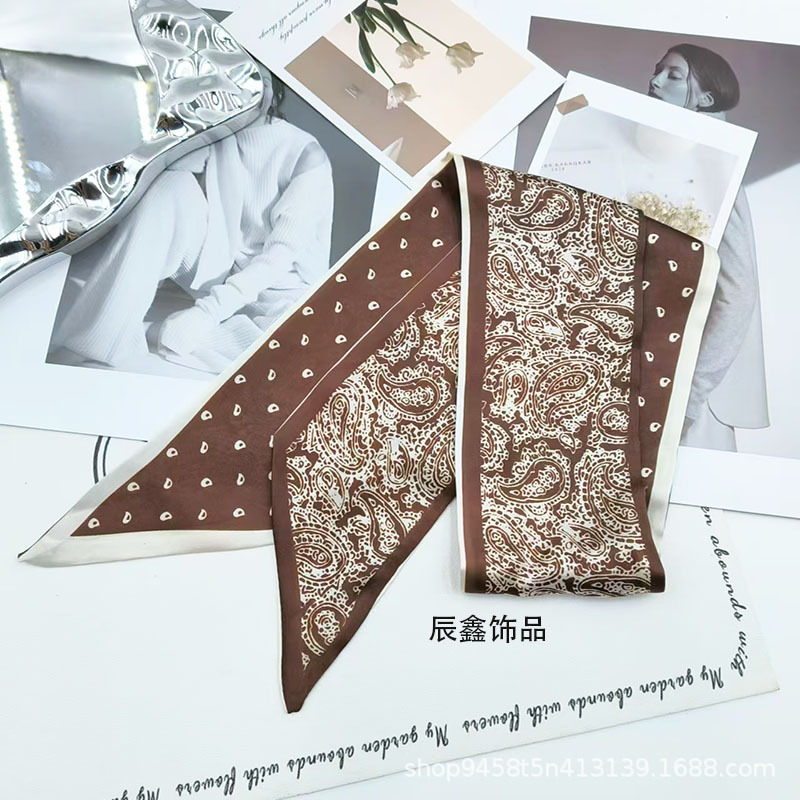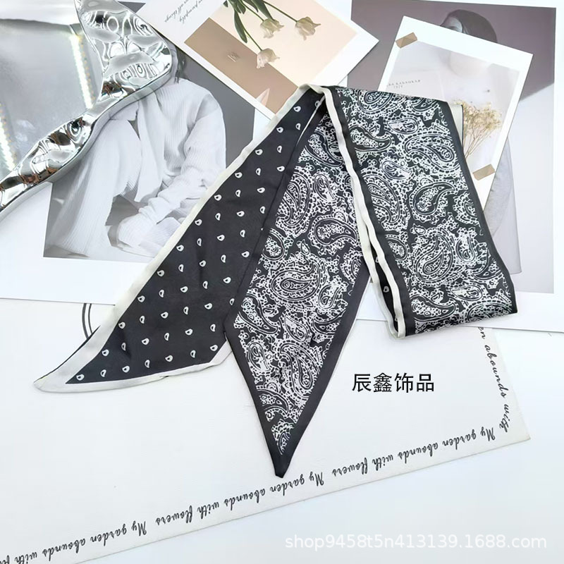 새로운 한국 스타일의 작은 긴 폴카 도트 실크 스카프, 여성스럽고 다재다능하며 고급스러운 스카프, 리본, 머리 스카프, 도매