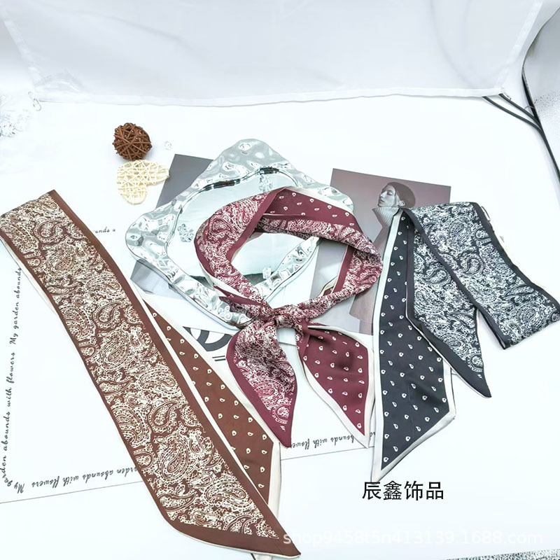 새로운 한국 스타일의 작은 긴 폴카 도트 실크 스카프, 여성스럽고 다재다능하며 고급스러운 스카프, 리본, 머리 스카프, 도매스토어 가기