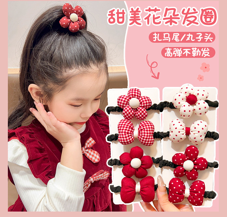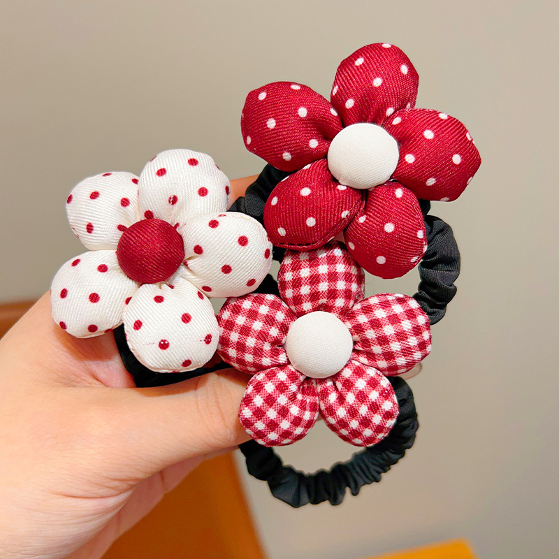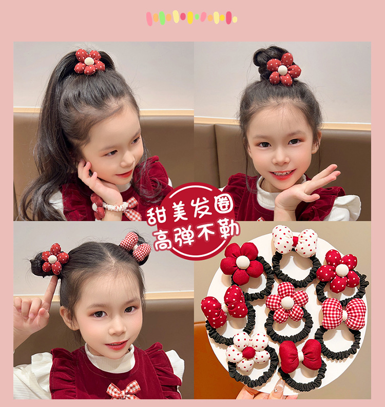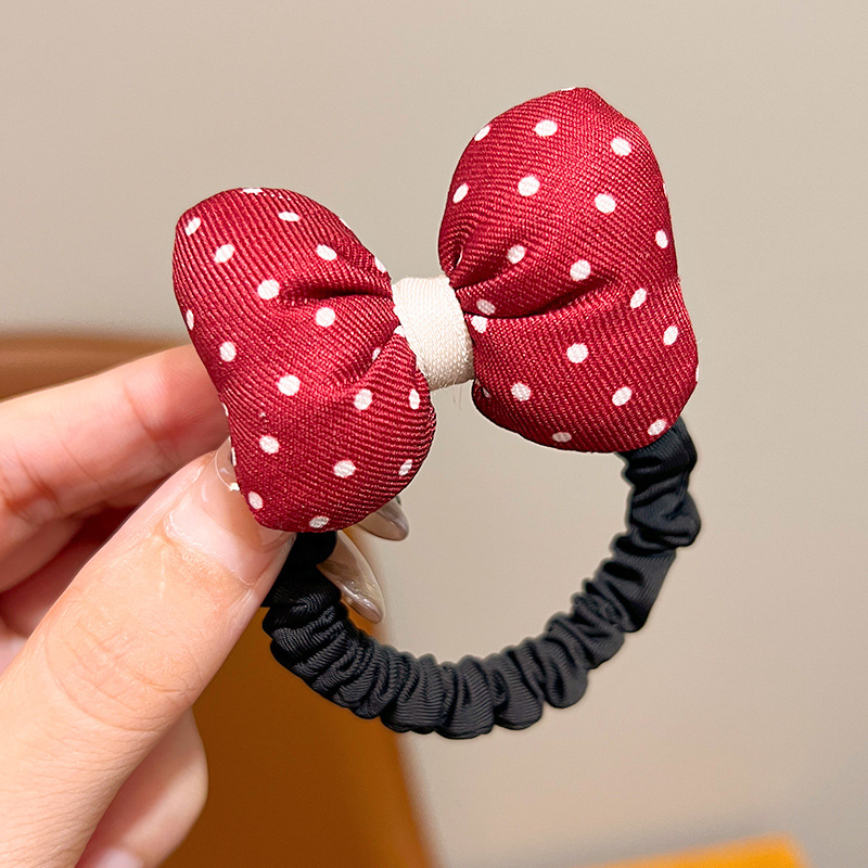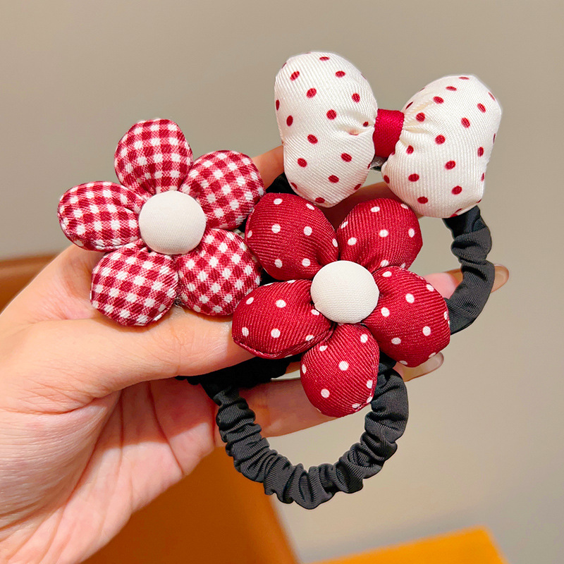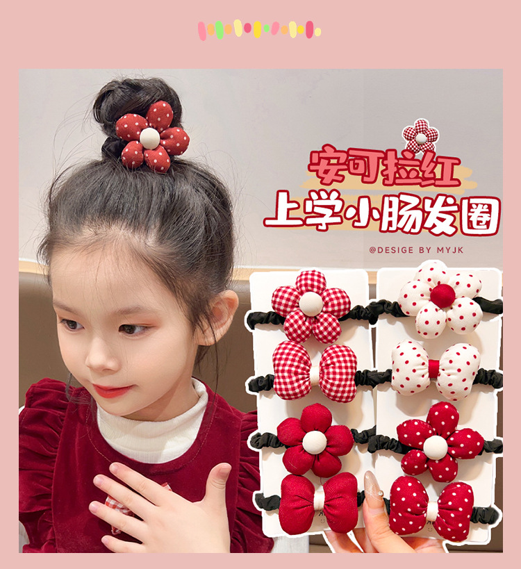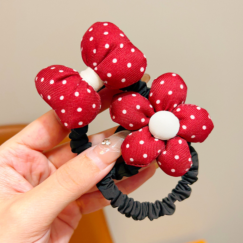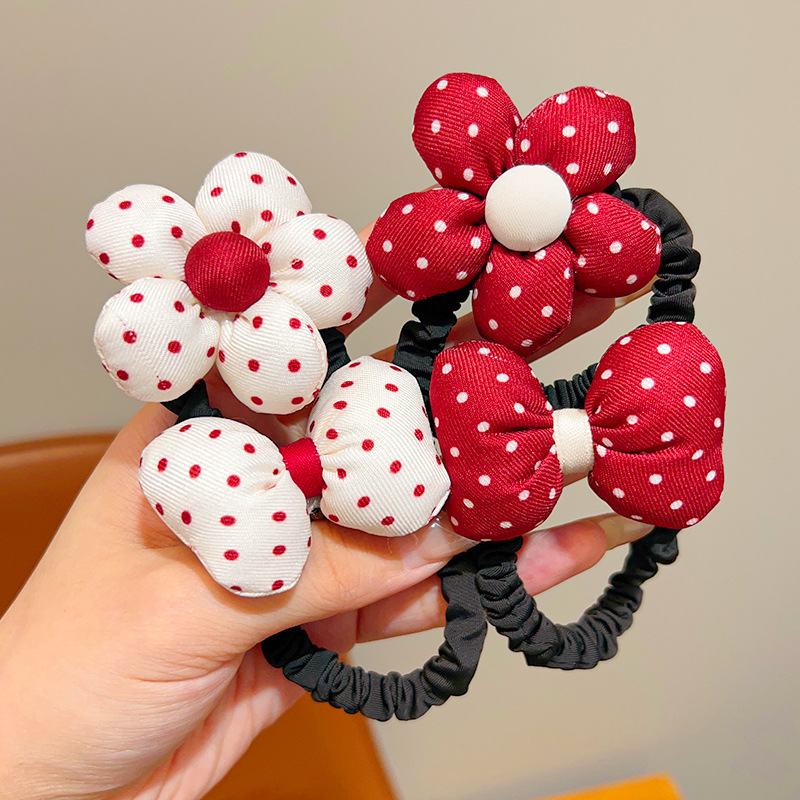 어린이 앙코라 붉은 달콤한 꽃 머리 반지 소녀 귀여운 폴도트 활 머리 밧줄 어린 소녀의 올 매치 헤어 액세서리