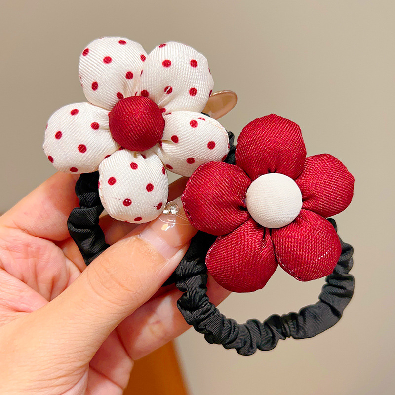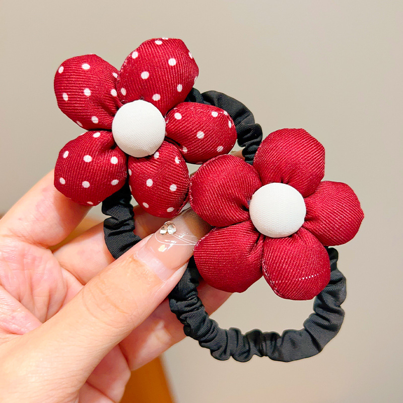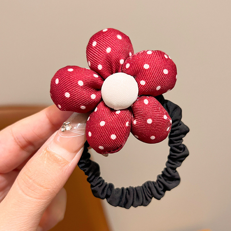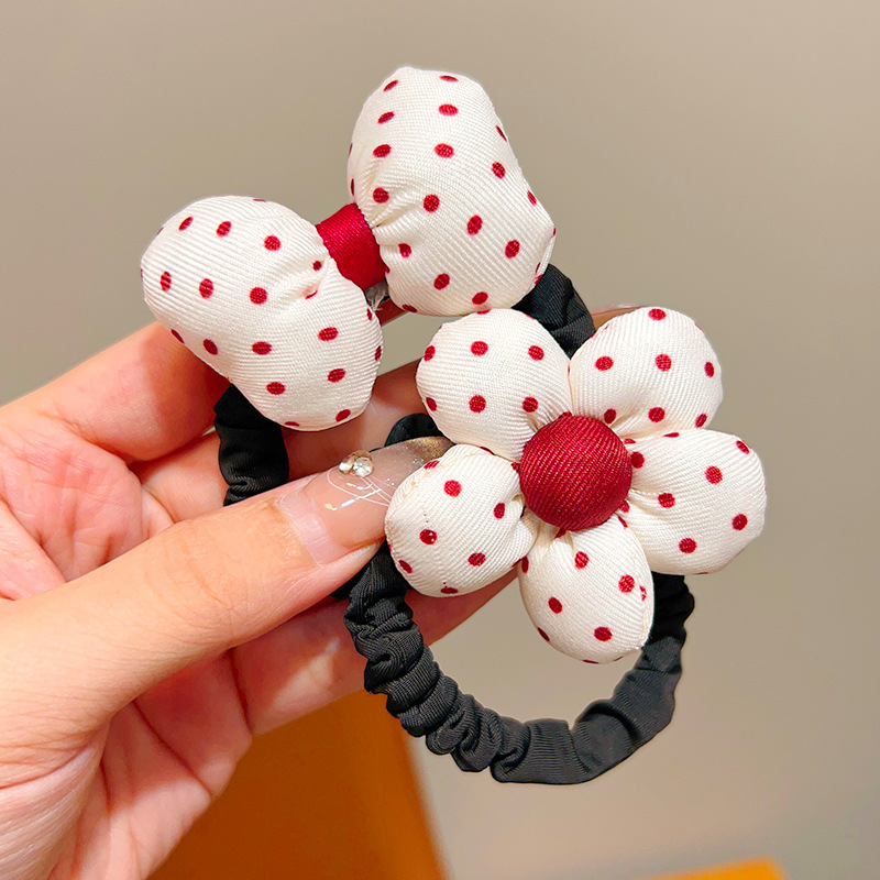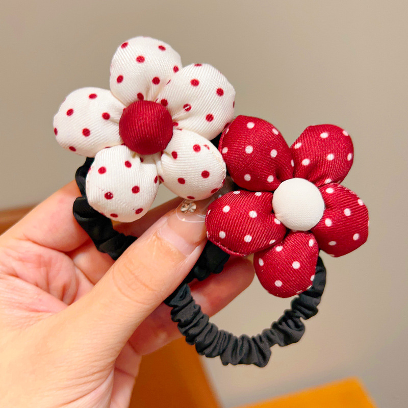 • 1#붉은 물방울 무늬 꽃 머리끈