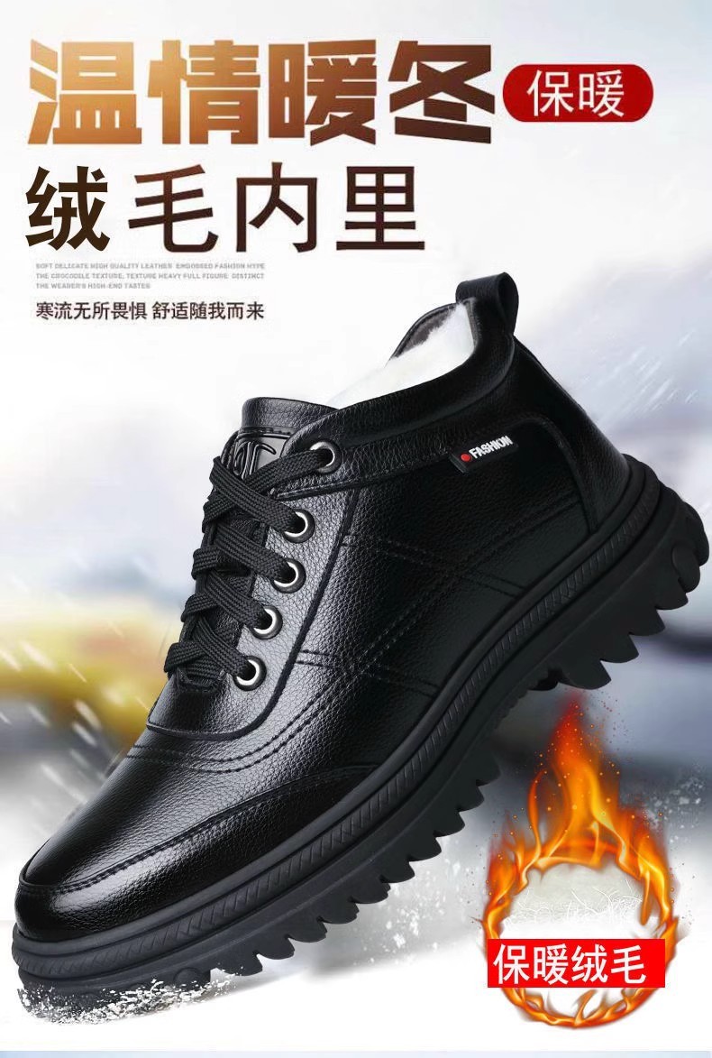 남성 가죽 신발 겨울 새로운 스타일 플러스 벨벳 두꺼운 따뜻한 면화 중년 및 노인 하이 탑 부드러운 밑창 미끄럼 방지 신발 도매스토어 가기