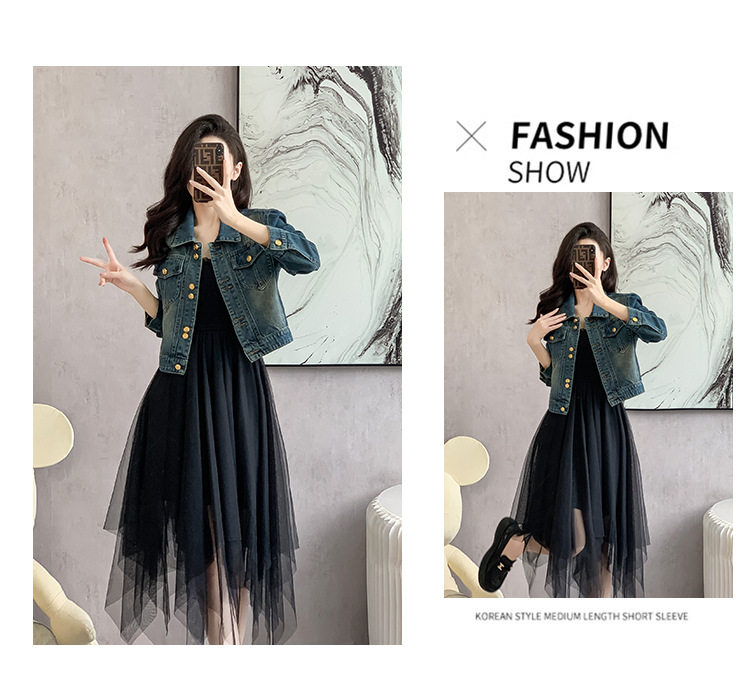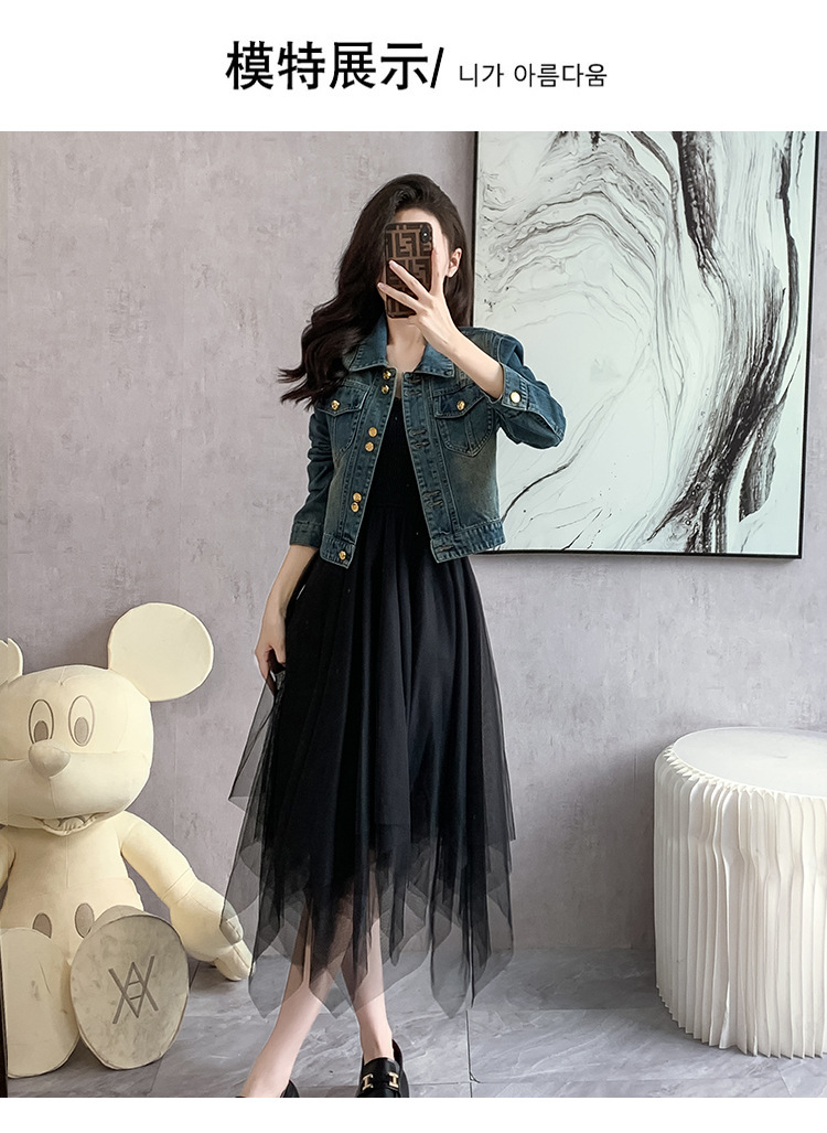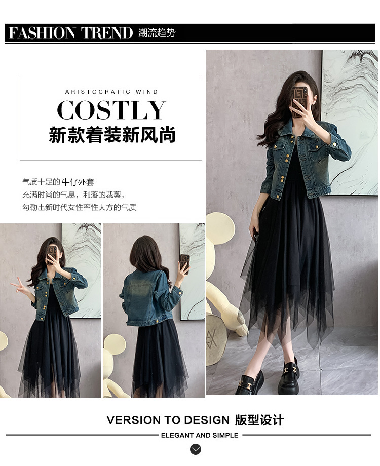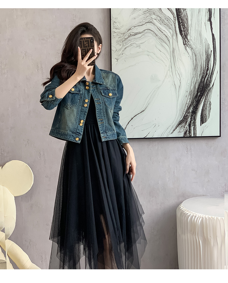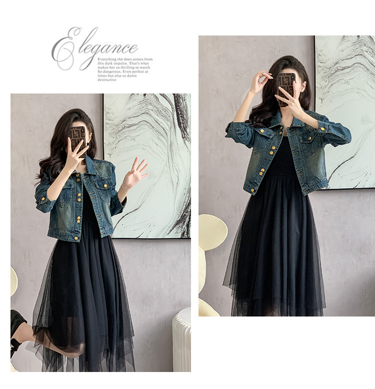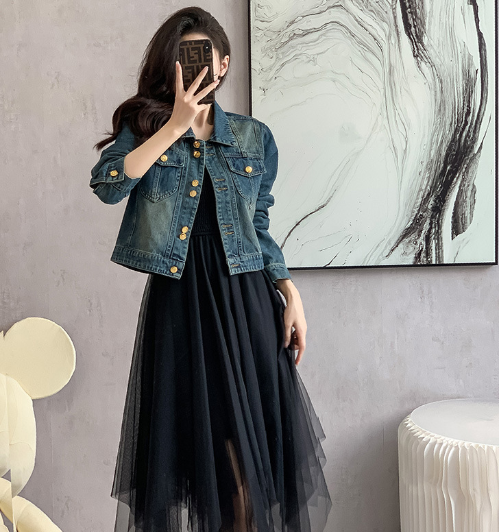 빈티지 슬림 핏 데님 쇼트 재킷 여자 가을 2024 새로운 도착 POLO 칼라 올 매치 긴팔 짧은 재킷 트렌디 탑