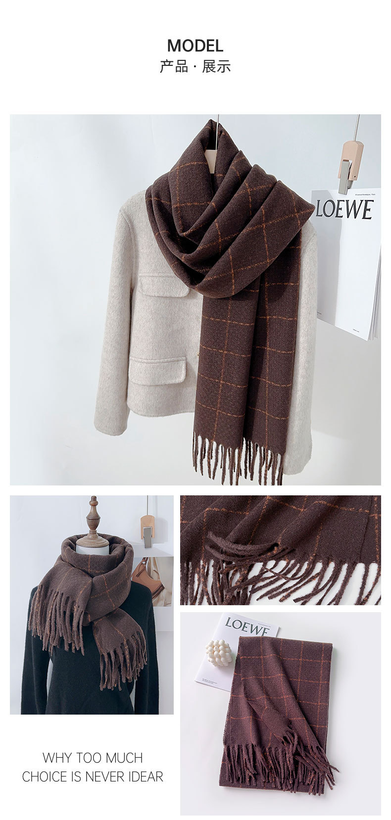 모조 캐시미어 스카프 여자 2024 년 새로운 가을 및 겨울 분위기 올 매치 하이 엔드 감각 격자 무늬 여자 두꺼운 따뜻한 목스토어 가기