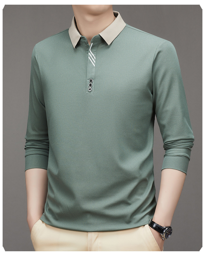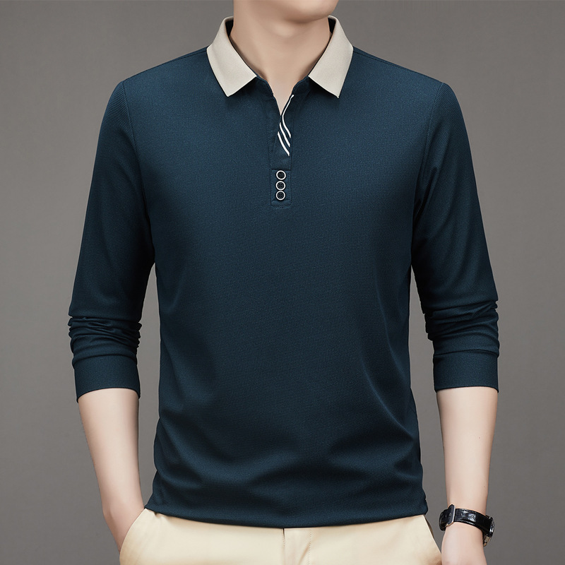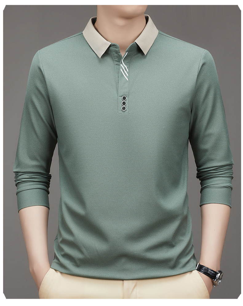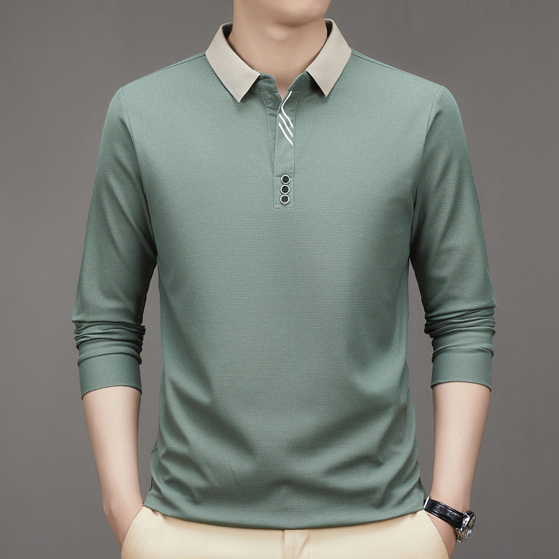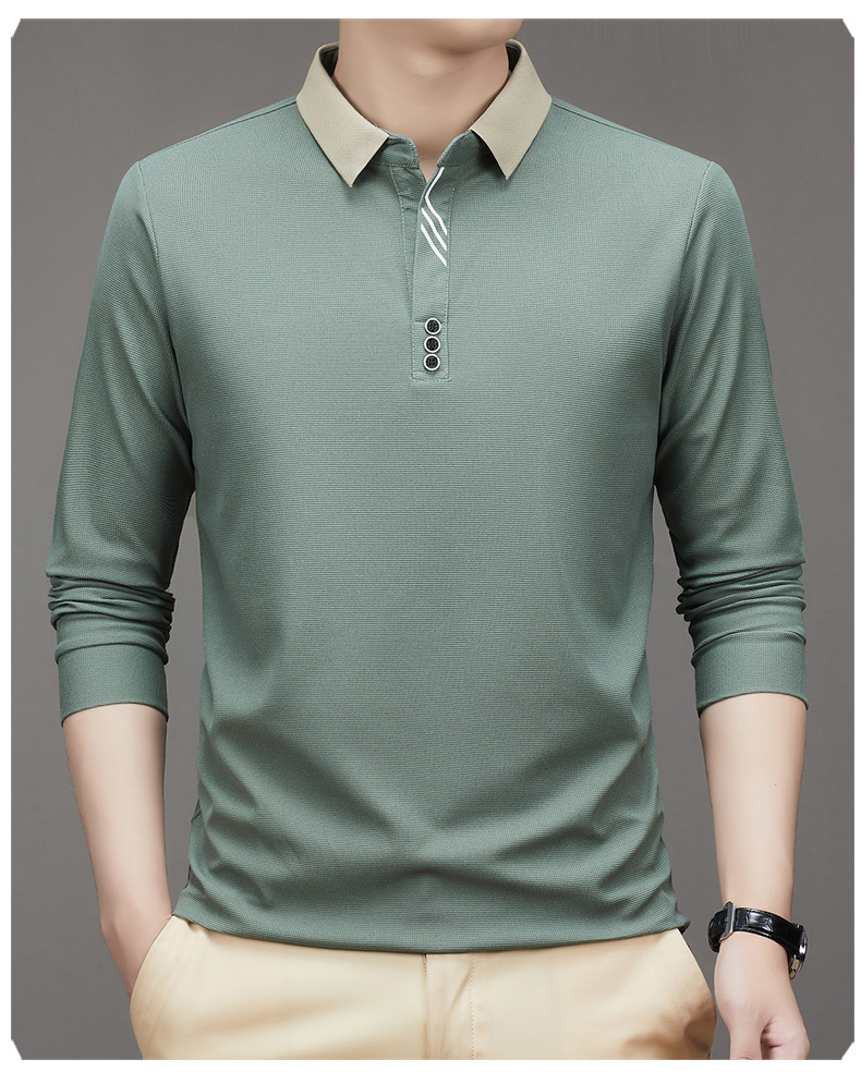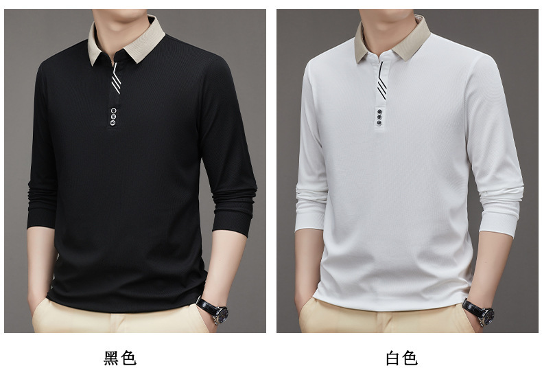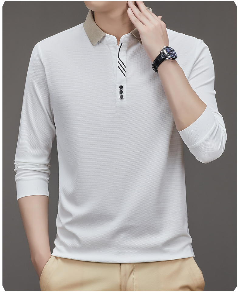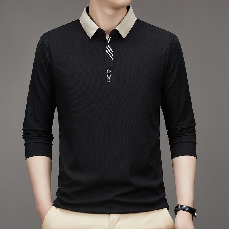 새로운 남성 반팔 가을 긴팔 폴로 셔츠 비즈니스 가위 칼라 핏 솔리드 컬러 랩베이스 티셔츠 남성용스토어 가기