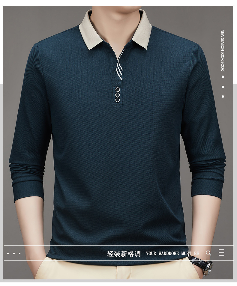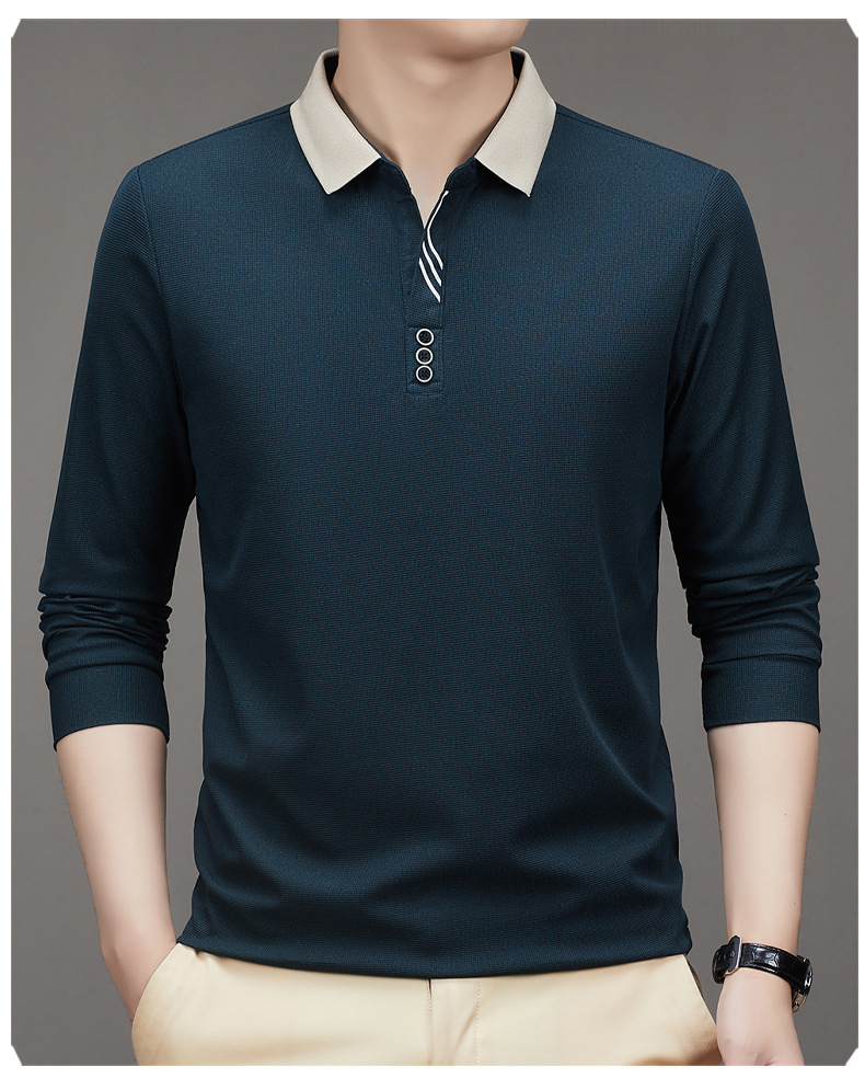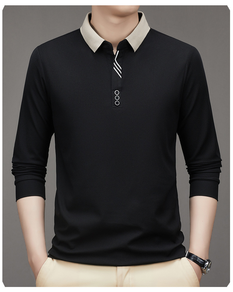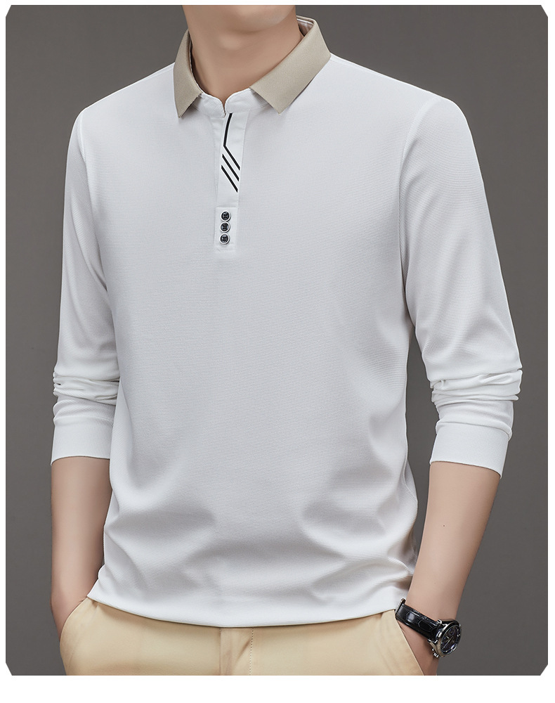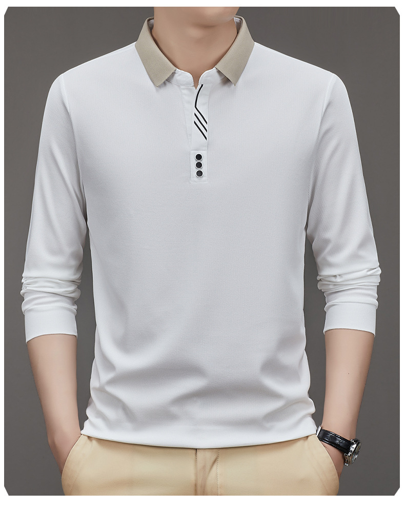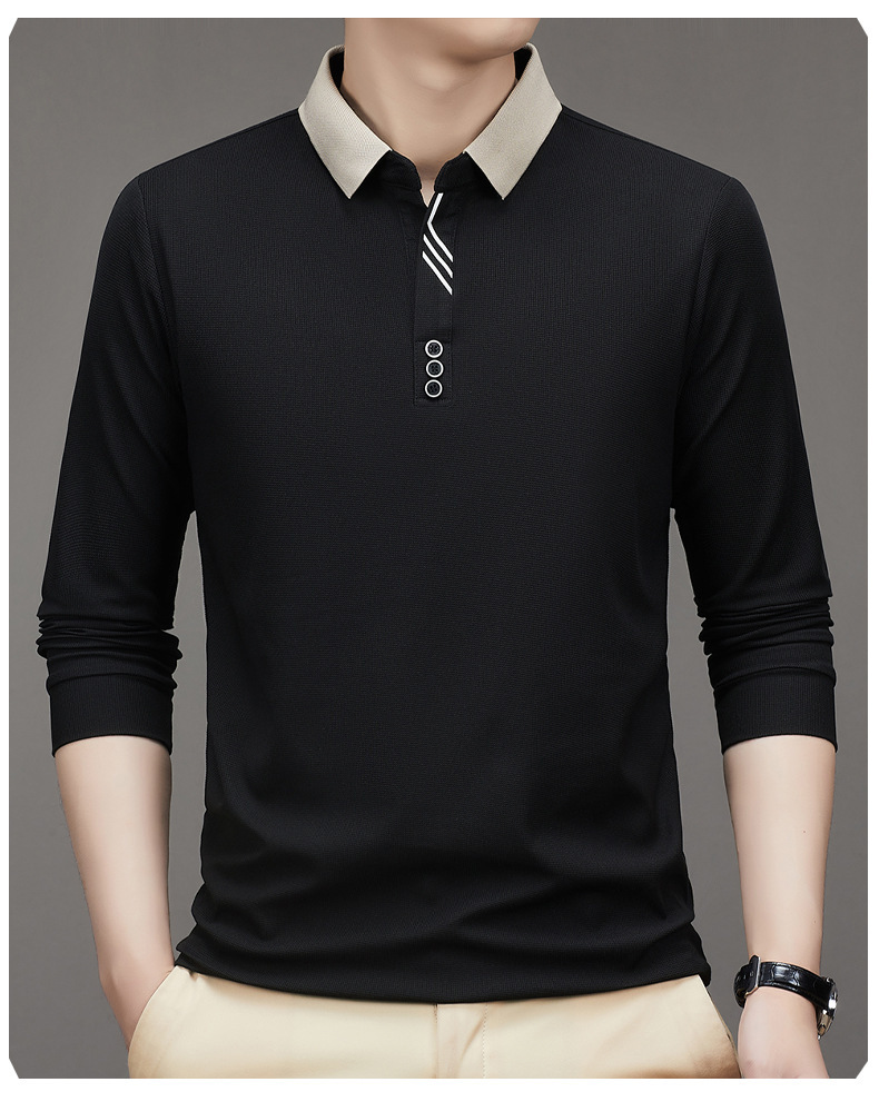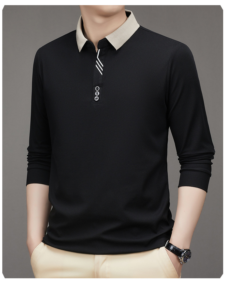 새로운 남성 반팔 가을 긴팔 폴로 셔츠 비즈니스 가위 칼라 핏 솔리드 컬러 랩베이스 티셔츠 남성용스토어 가기