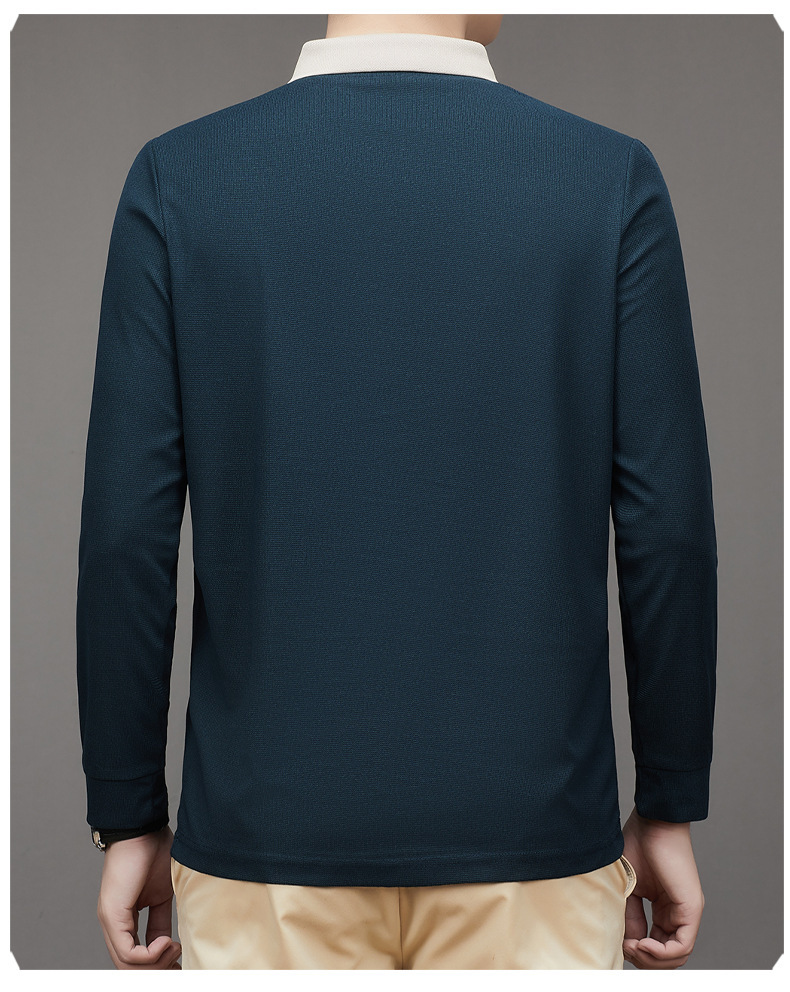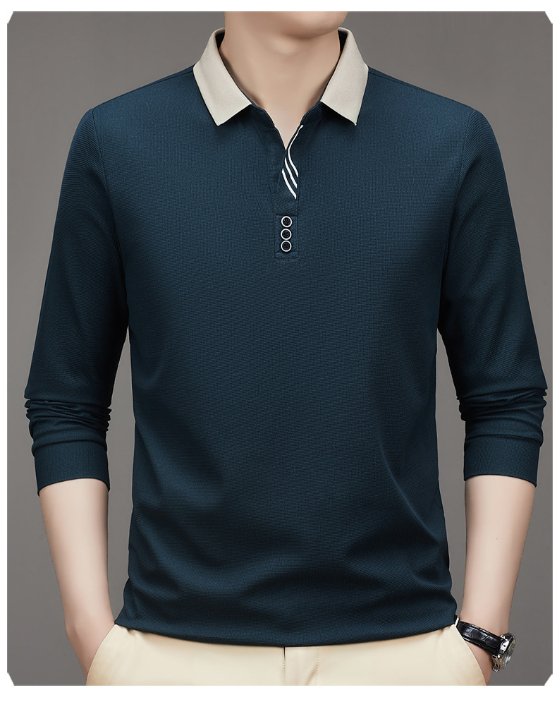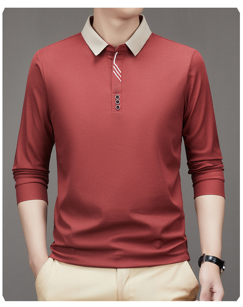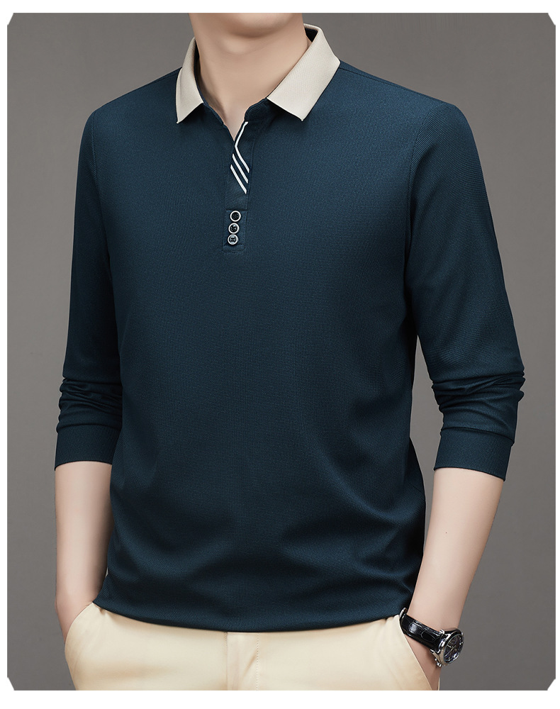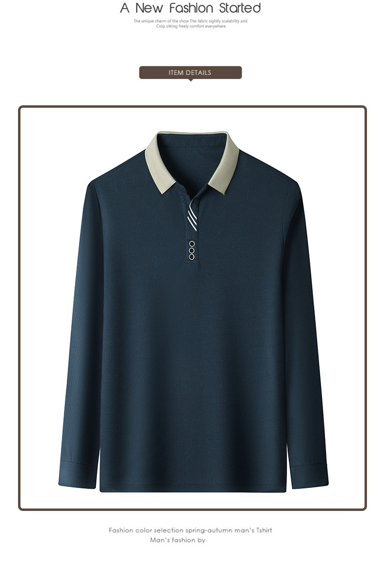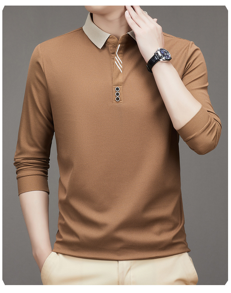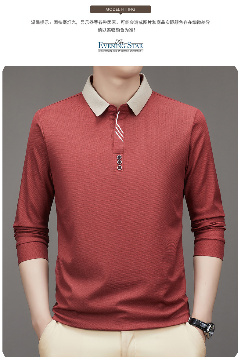 새로운 남성 반팔 가을 긴팔 폴로 셔츠 비즈니스 가위 칼라 핏 솔리드 컬러 랩베이스 티셔츠 남성용스토어 가기