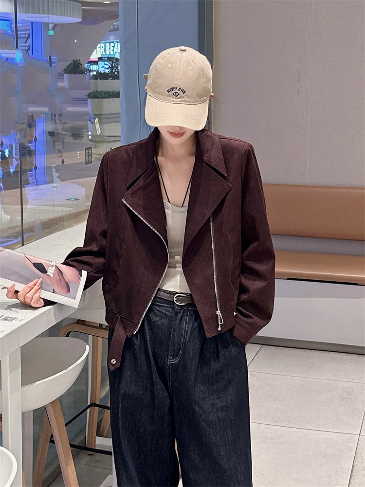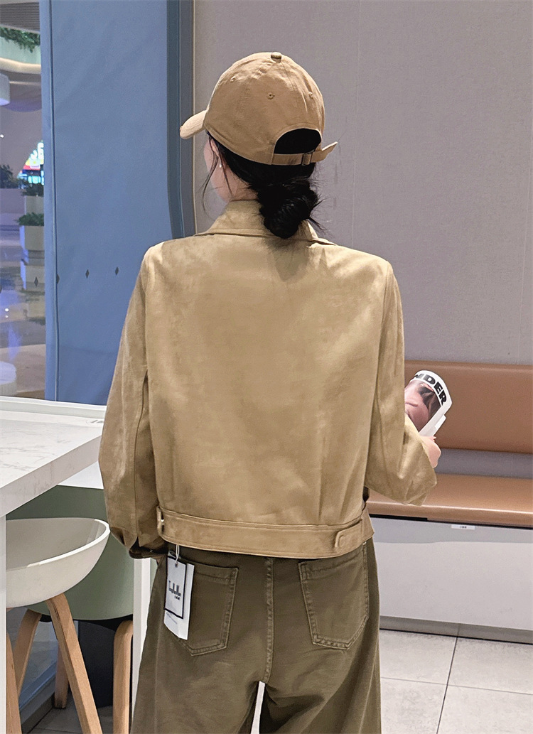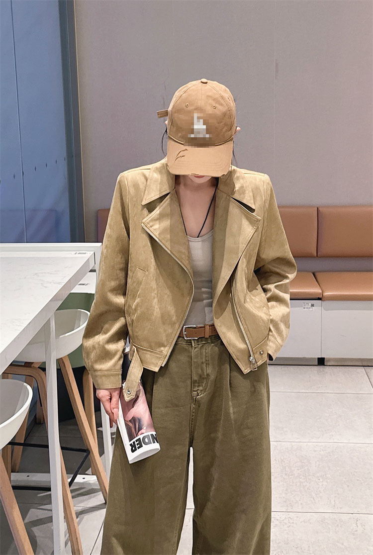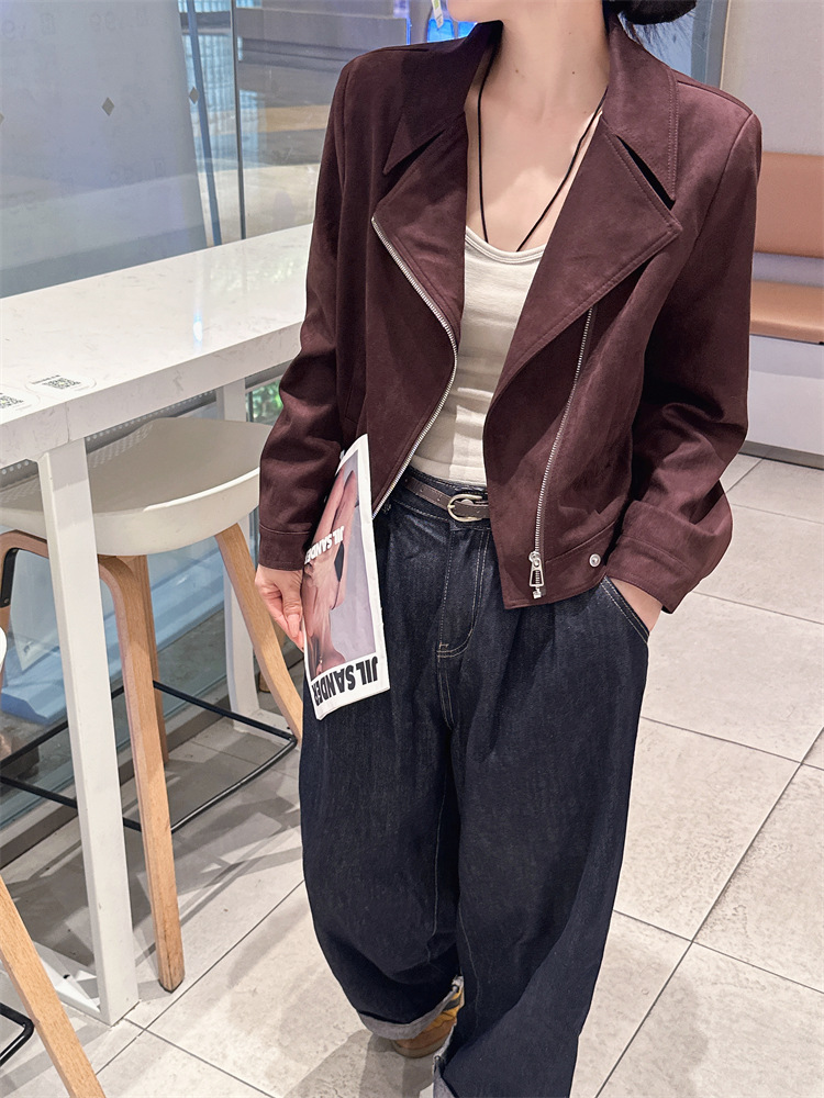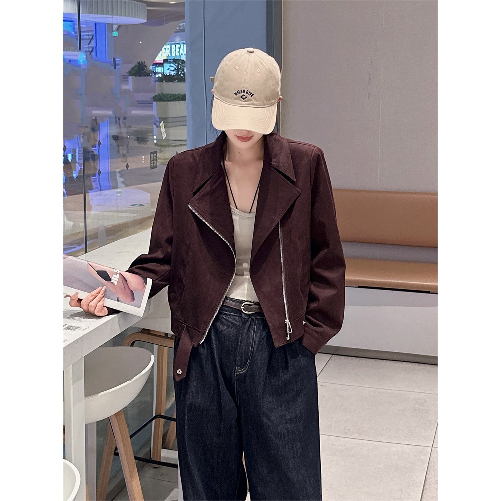 2024 새로운 사슴 가죽 양털 코트 여성의 가을 새로운 하이 엔드 센스 자전거 세트 짧은 레트로 재킷 탑스토어 가기