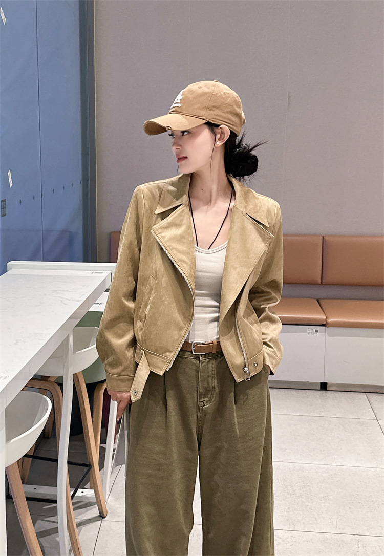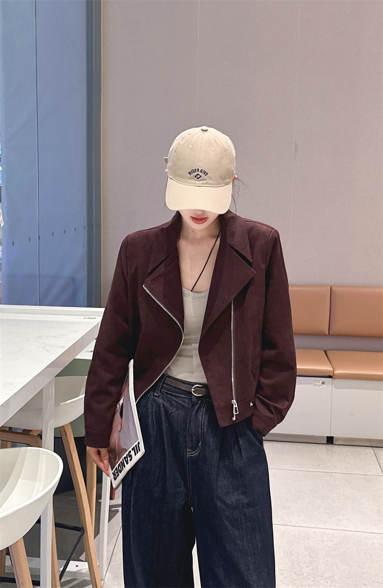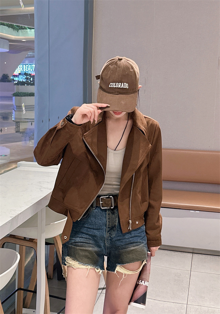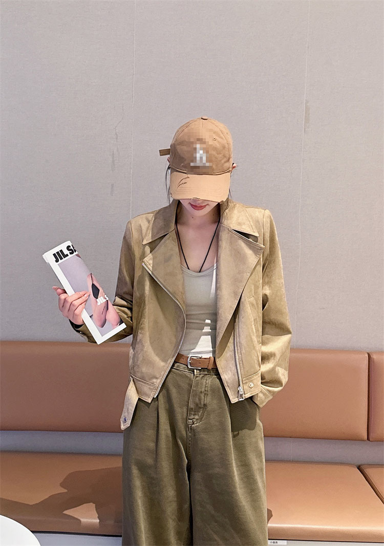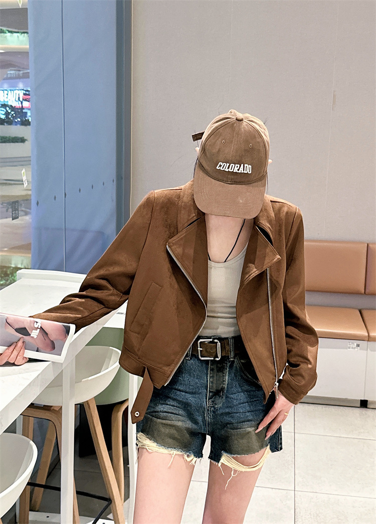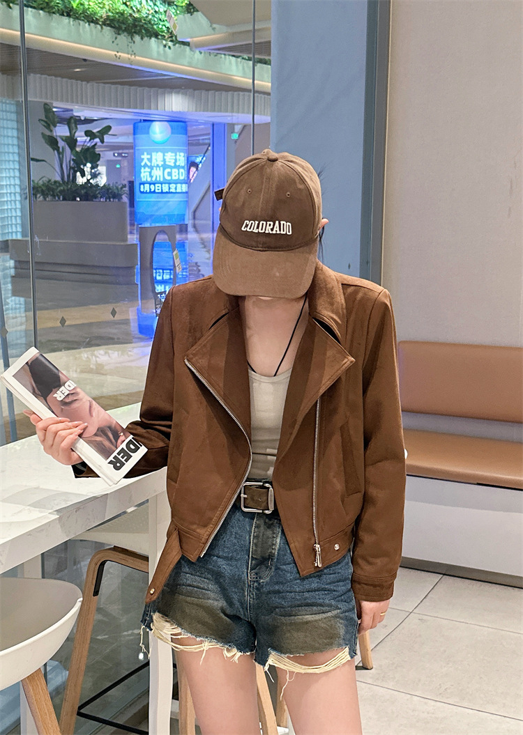 2024 새로운 사슴 가죽 양털 코트 여성의 가을 새로운 하이 엔드 센스 자전거 세트 짧은 레트로 재킷 탑스토어 가기