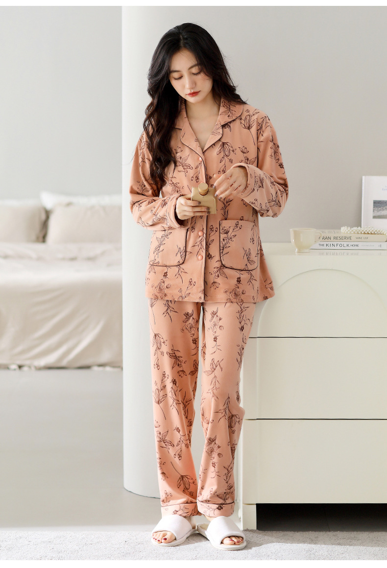 섬 벨벳 파자마 여성의 가을과 겨울 얇은 벨벳 코랄 벨벳 중년 어머니 집 옷 봄과 가을 플러스 사이즈 따뜻한 세트스토어 가기