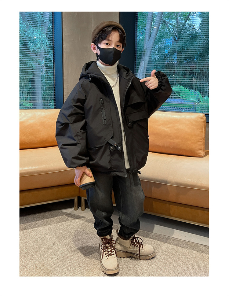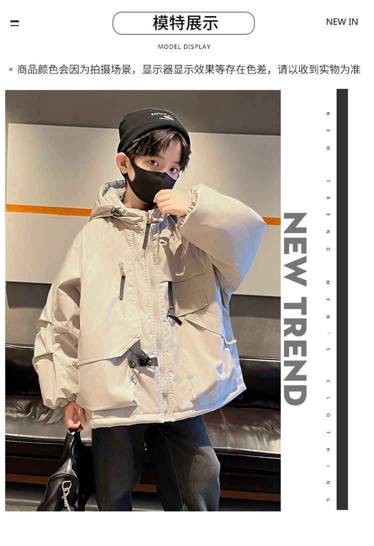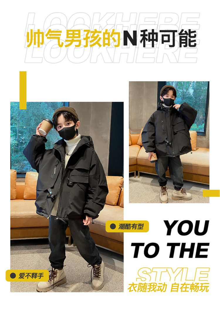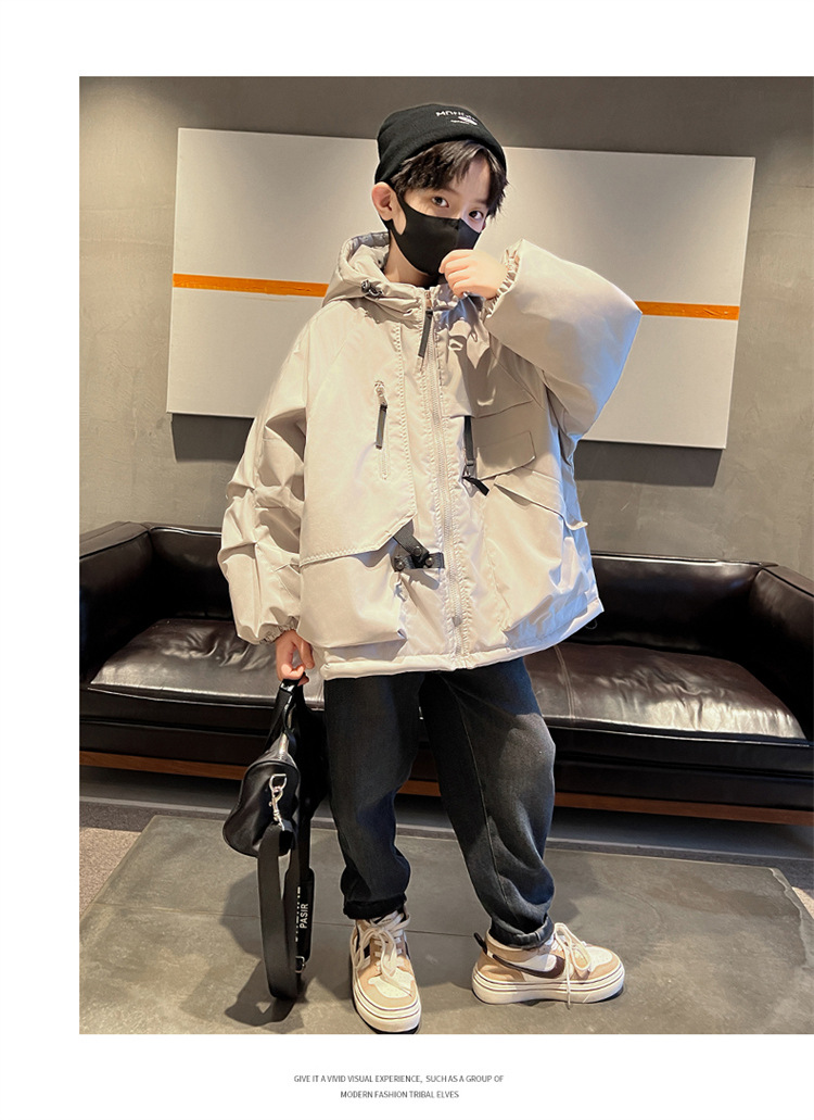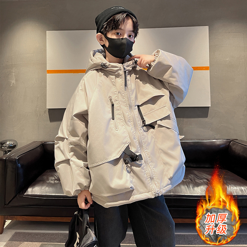 아동복 소년의 겨울복 작업 코트 2024 새로운 가을과 겨울 스타일 큰 소년의 겨울 래플 잘 생긴 충전 옷스토어 가기