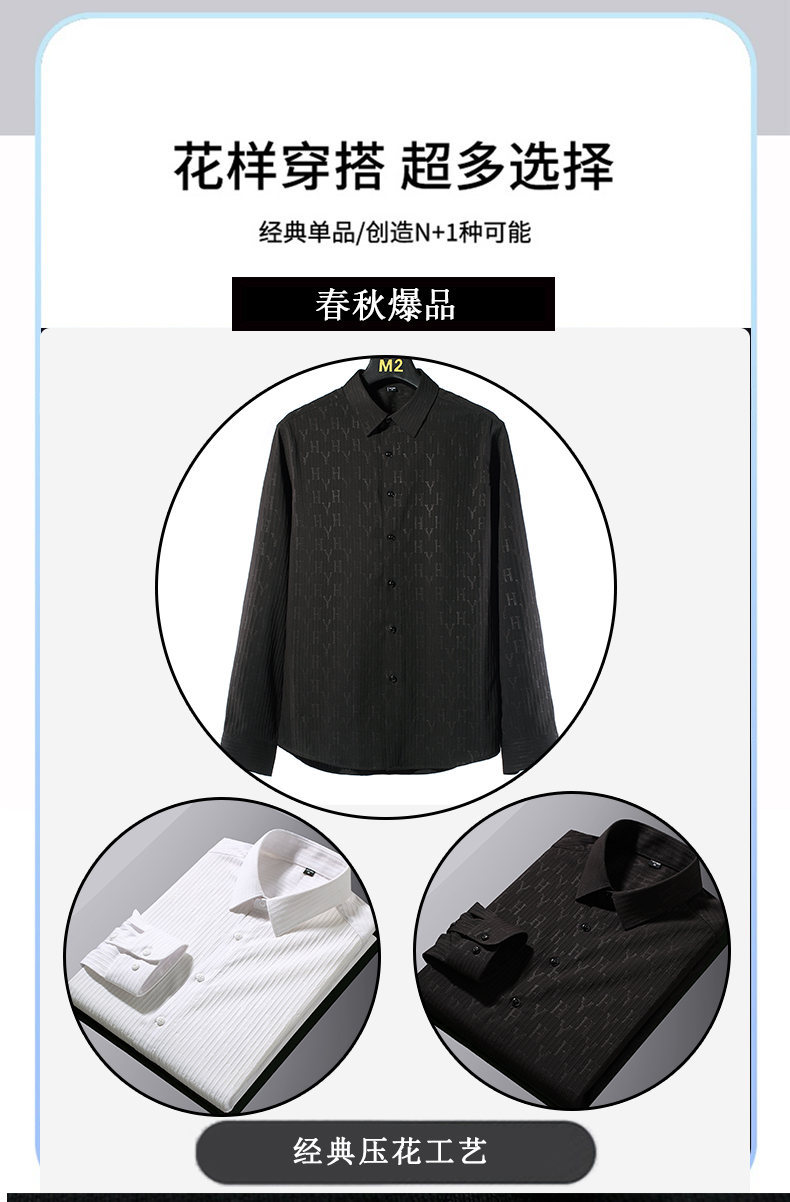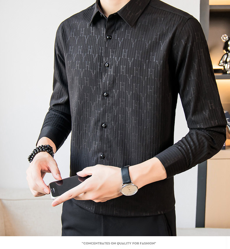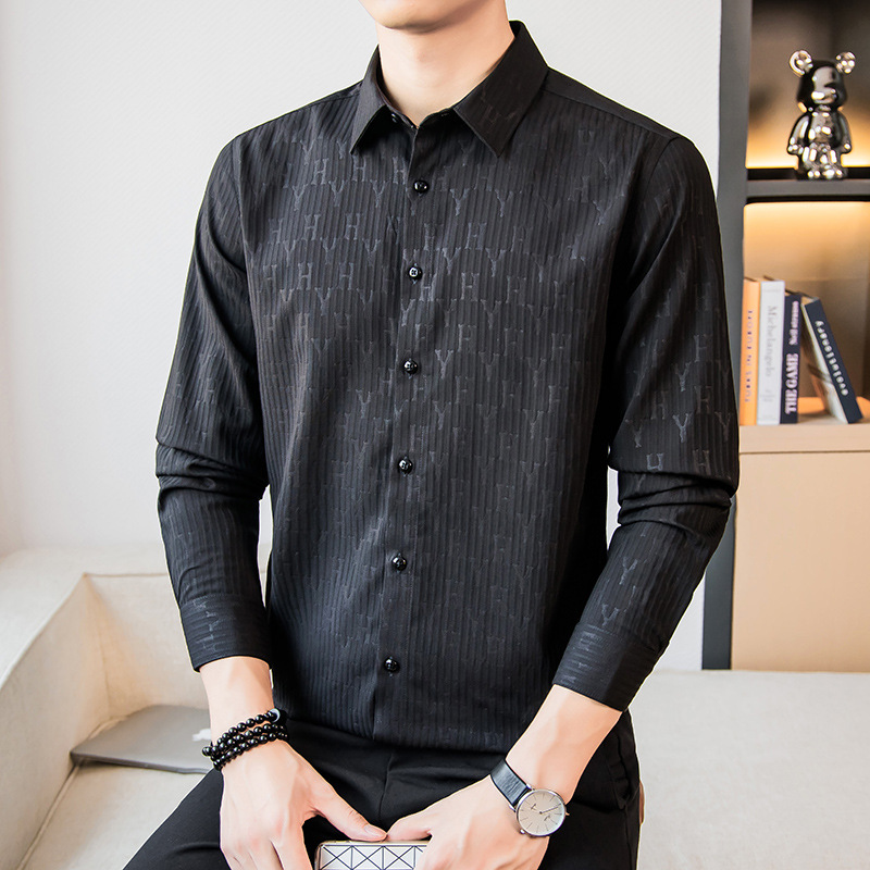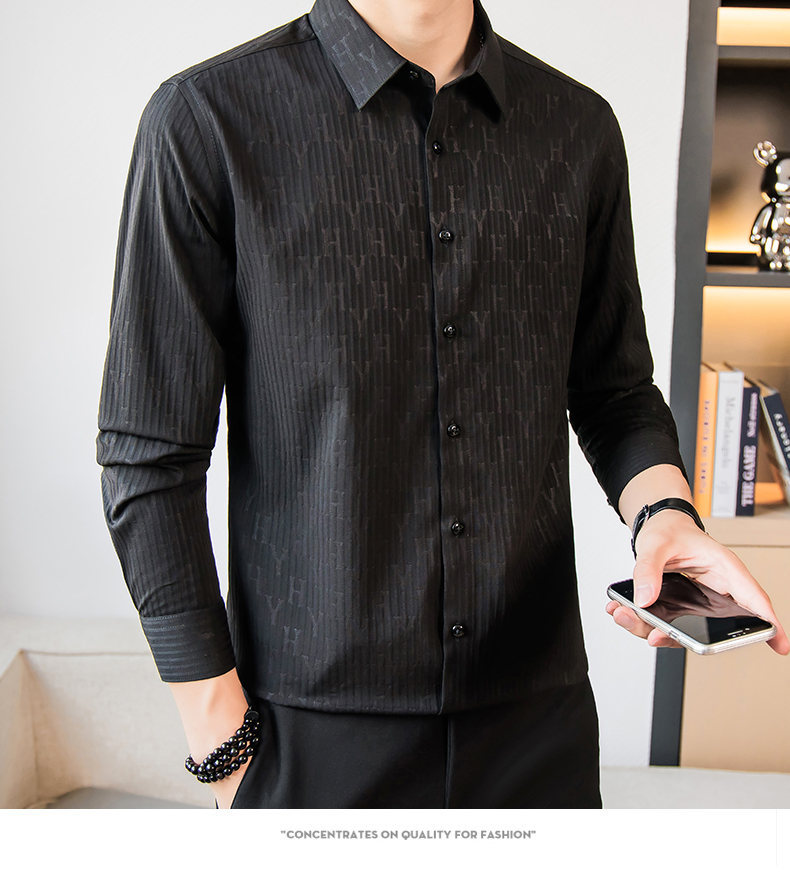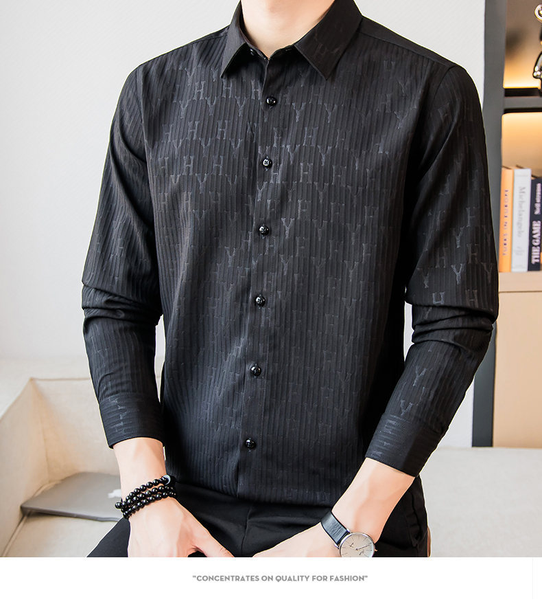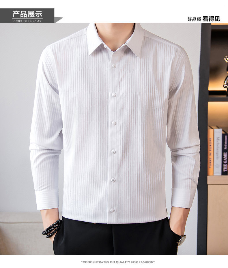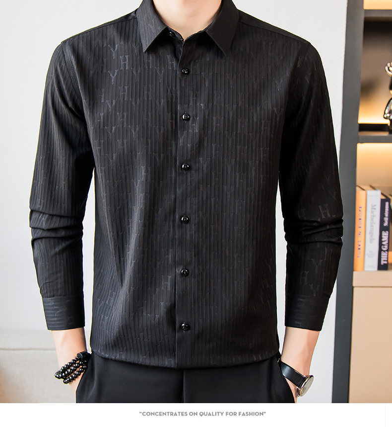 국경 간 남성 [전문 셔츠] 2024 가을 새로운 폭발 줄무늬 3 차원 양각 조명 비즈니스 캐주얼 긴 소매 셔츠