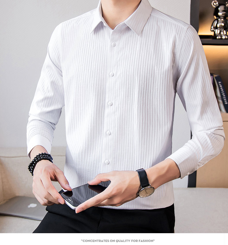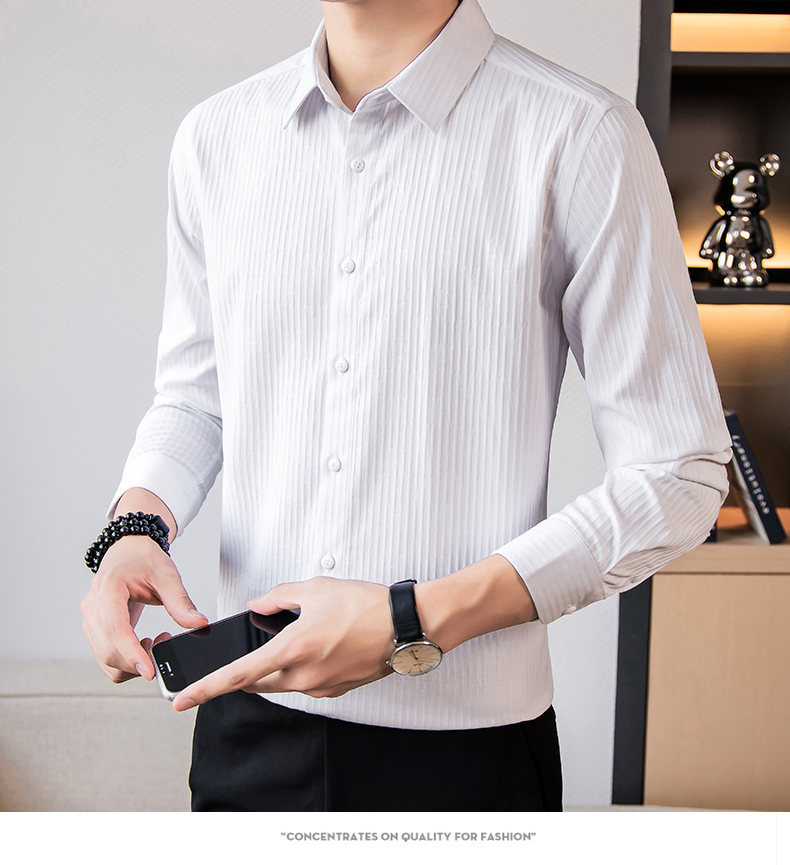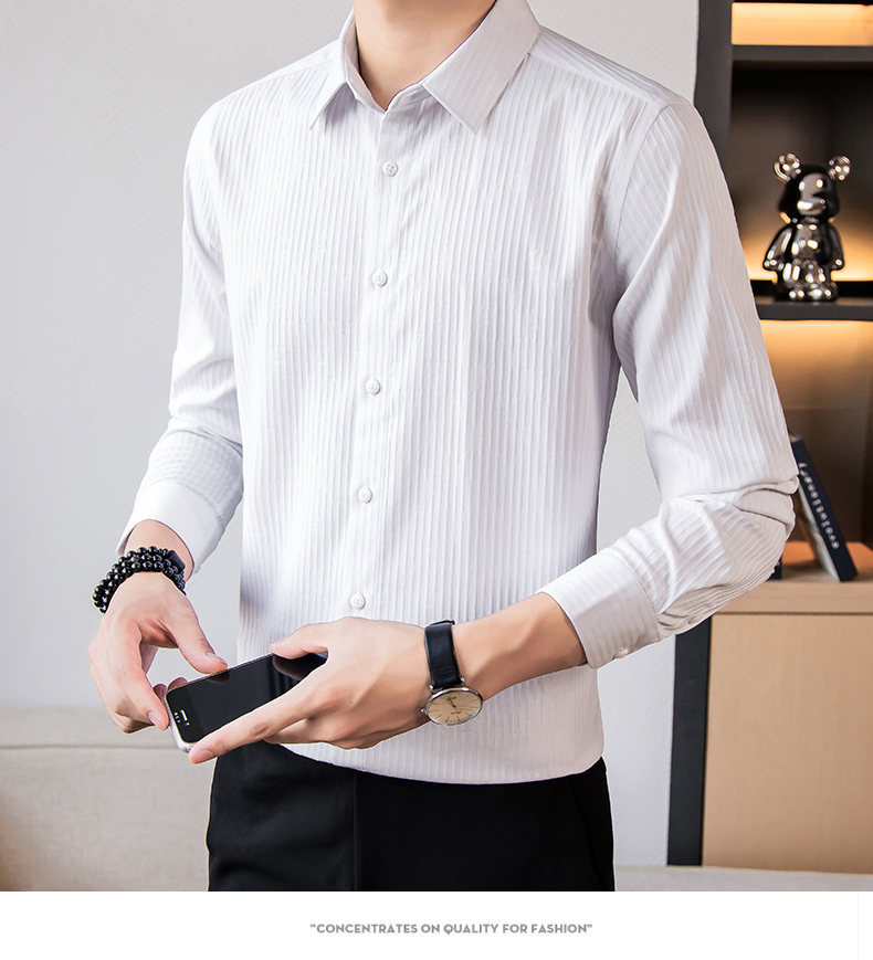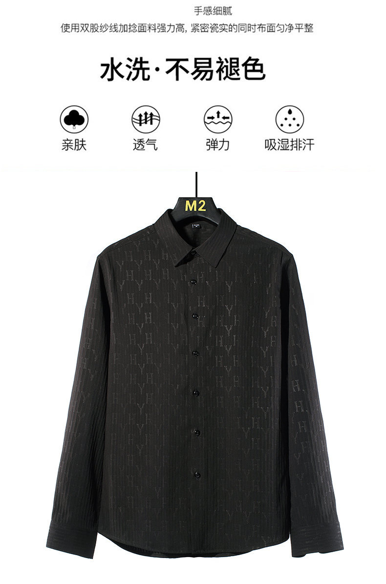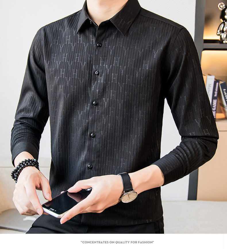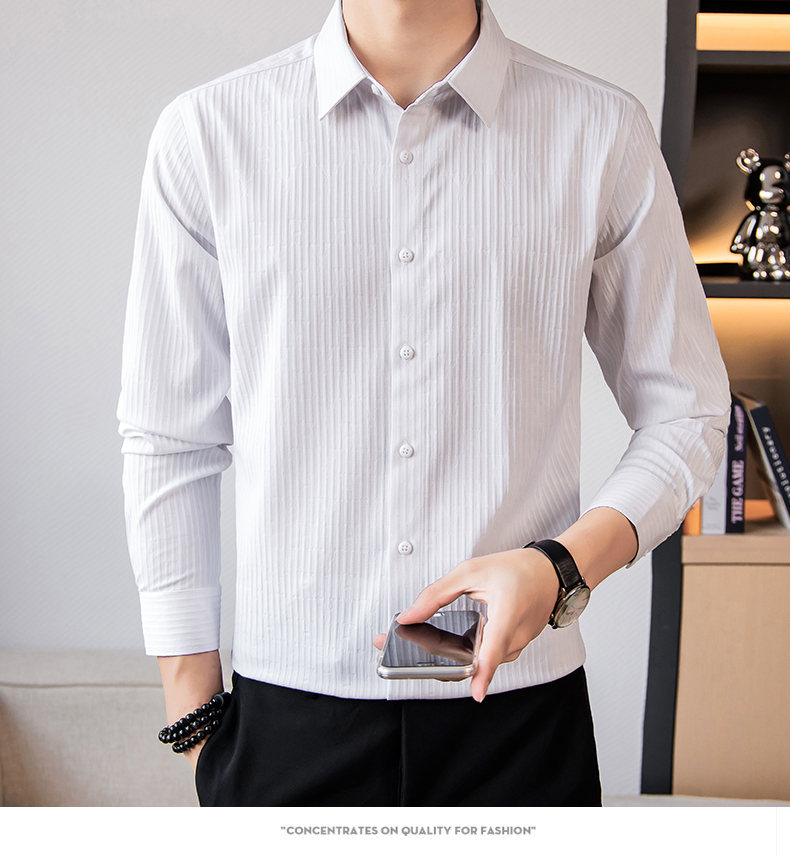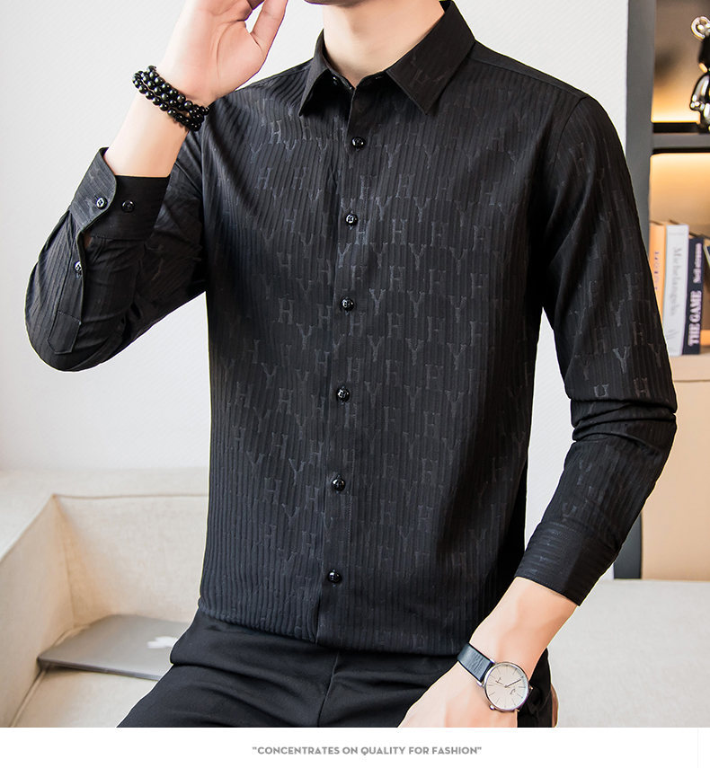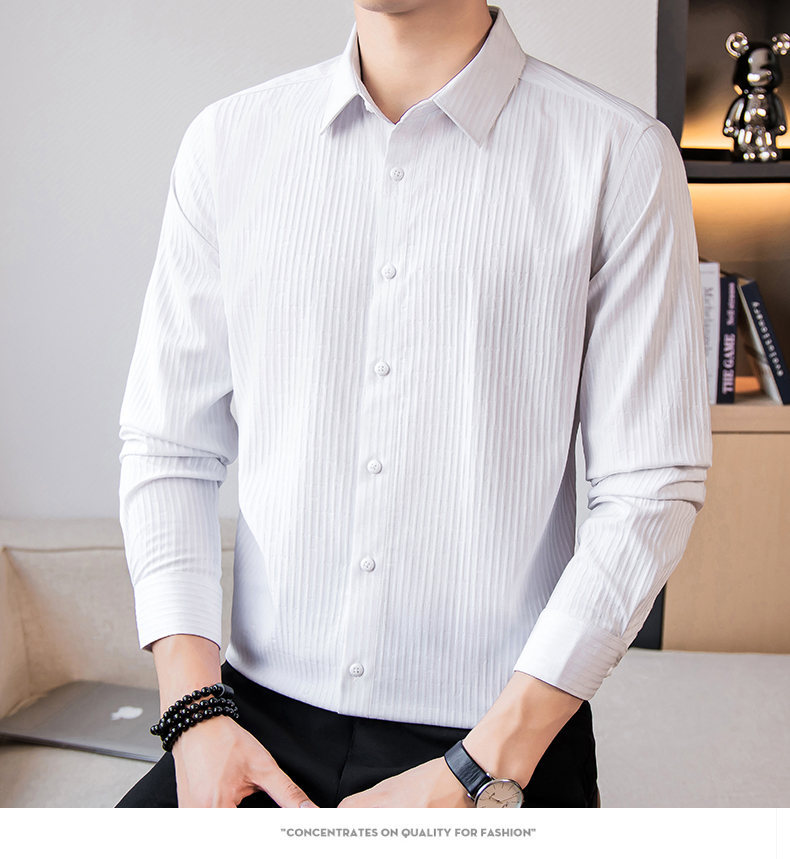 국경 간 남성 [전문 셔츠] 2024 가을 새로운 폭발 줄무늬 3 차원 양각 조명 비즈니스 캐주얼 긴 소매 셔츠
