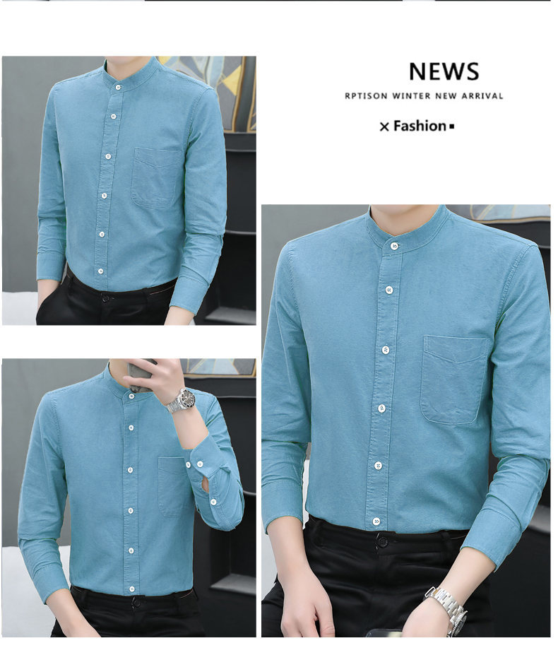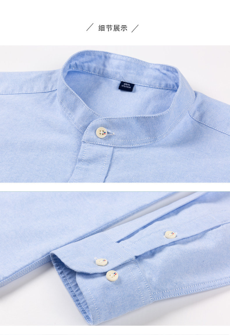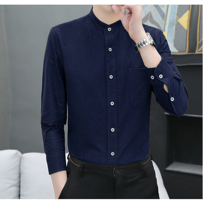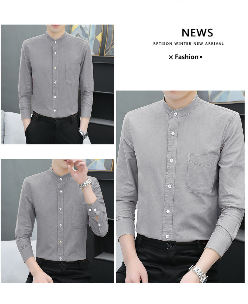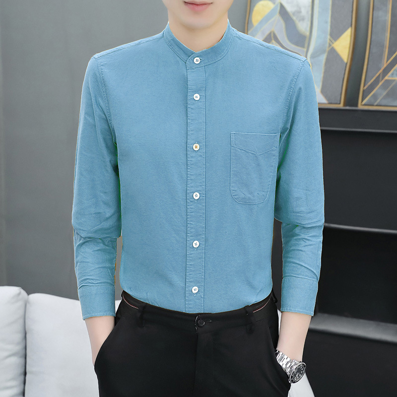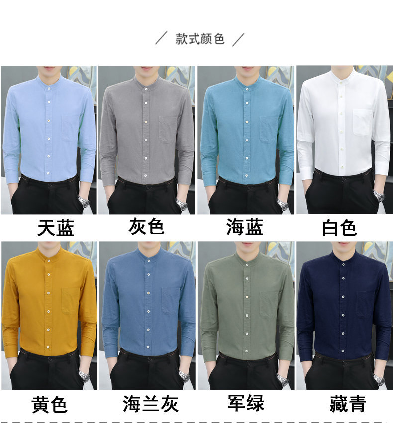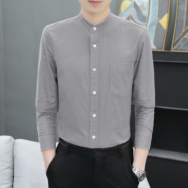 국경 간 AliExpress 폭발 [전문 셔츠] 스탠드 칼라 긴팔 셔츠 남성 청소년 면화 옥스포드 섬유 비즈니스 레저 조수스토어 가기