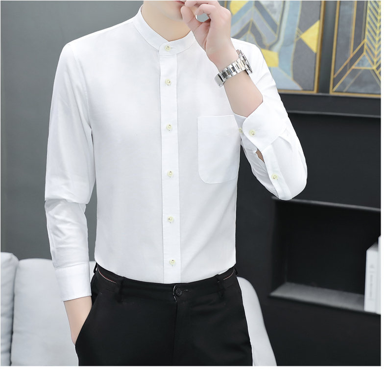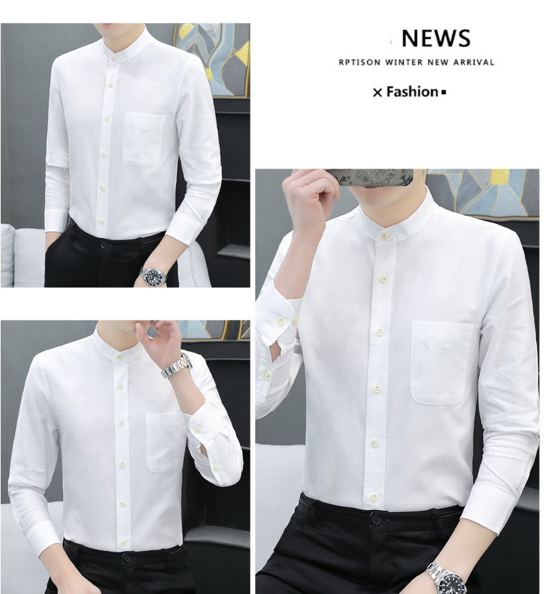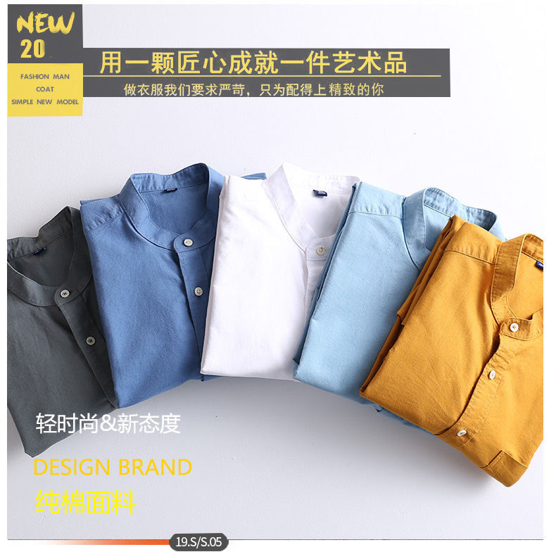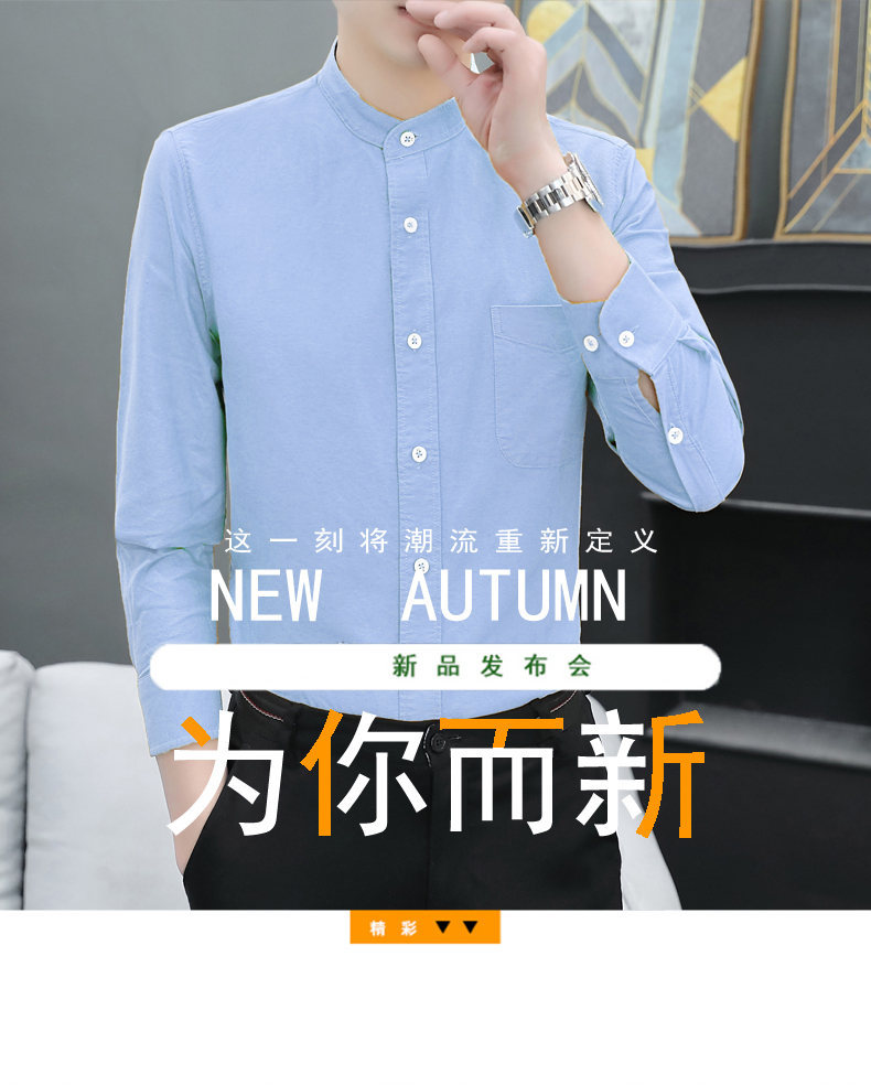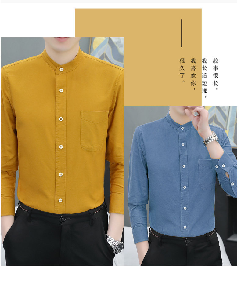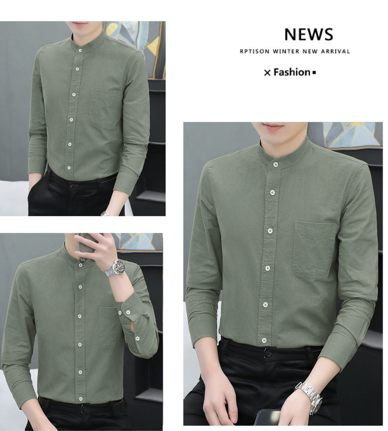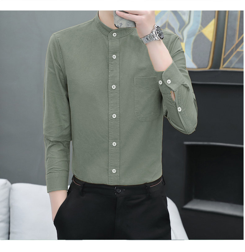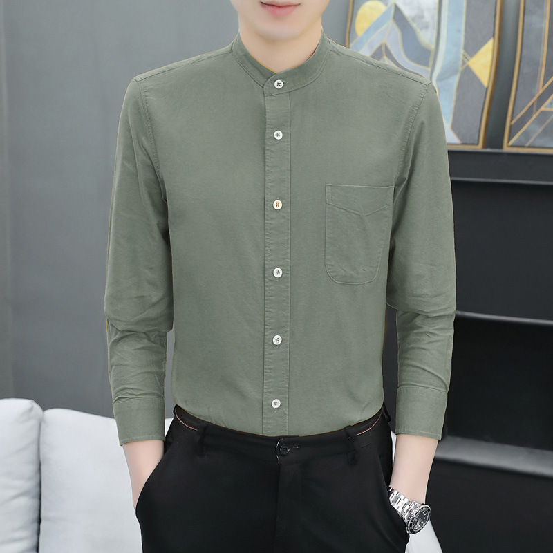 국경 간 AliExpress 폭발 [전문 셔츠] 스탠드 칼라 긴팔 셔츠 남성 청소년 면화 옥스포드 섬유 비즈니스 레저 조수스토어 가기