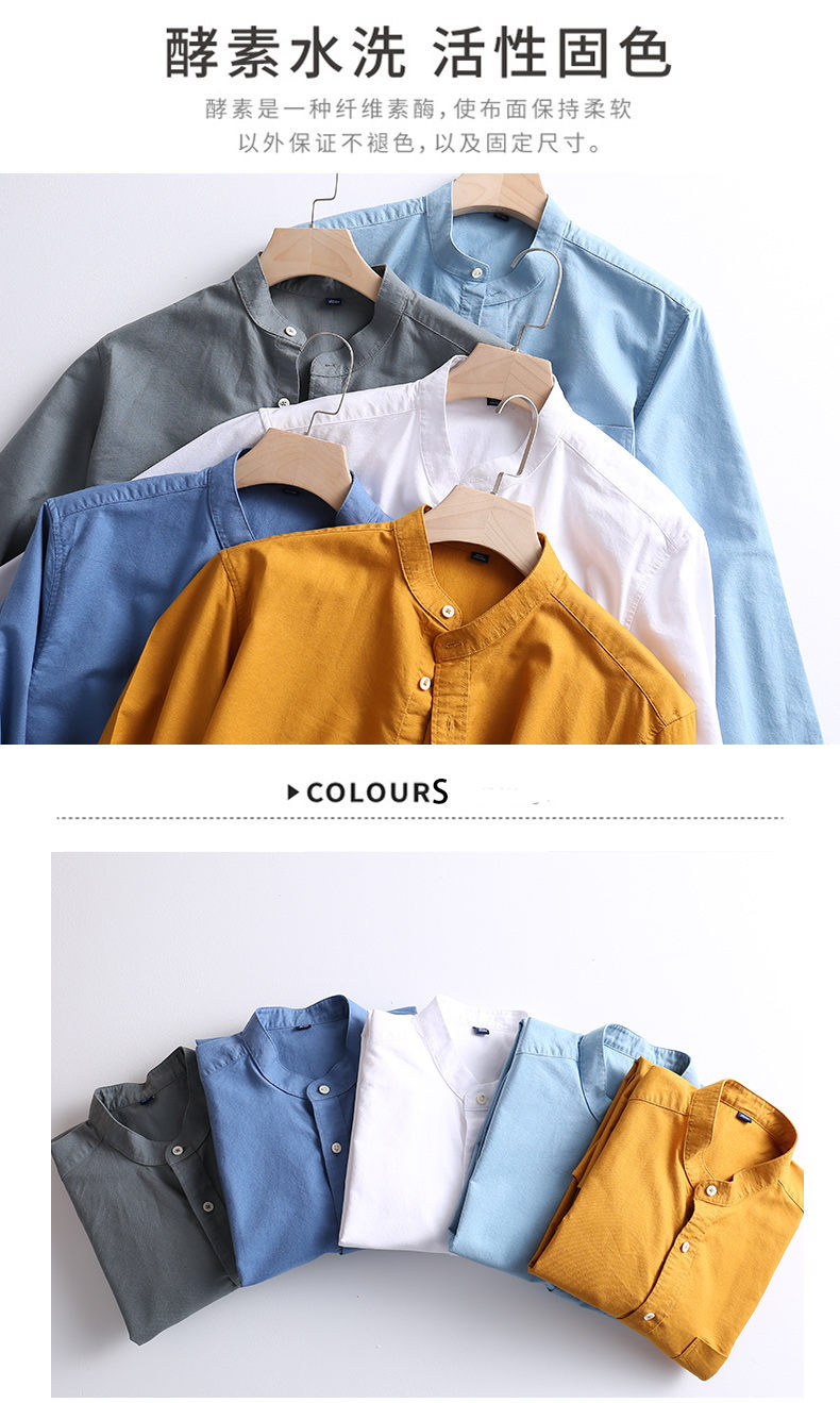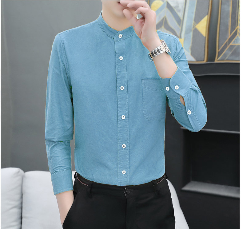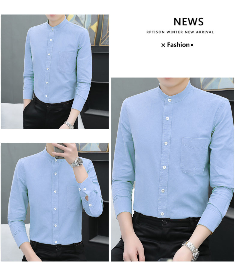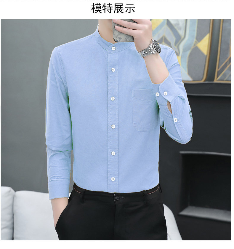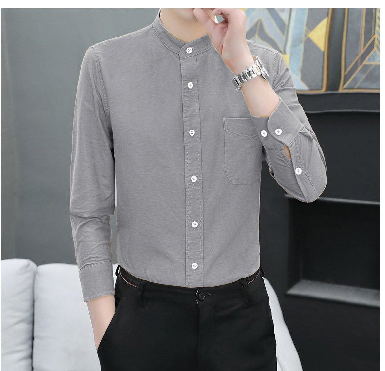 국경 간 AliExpress 폭발 [전문 셔츠] 스탠드 칼라 긴팔 셔츠 남성 청소년 면화 옥스포드 섬유 비즈니스 레저 조수