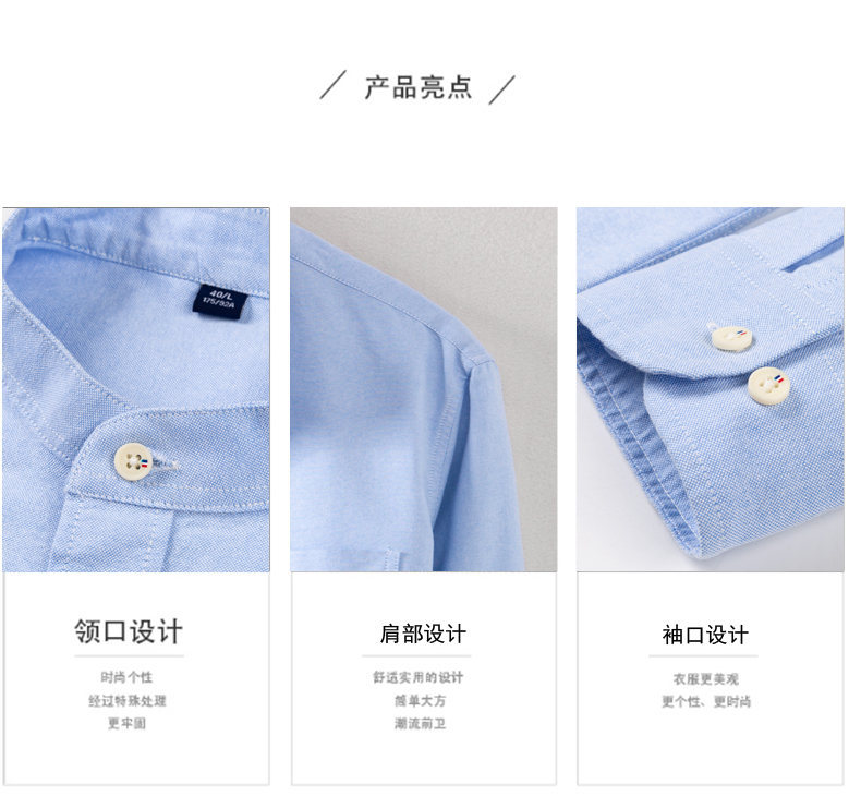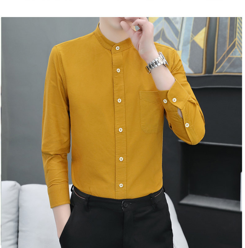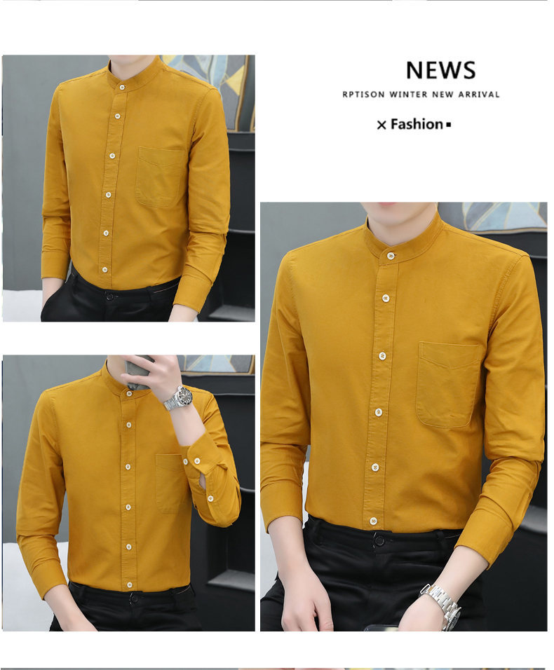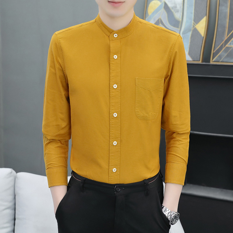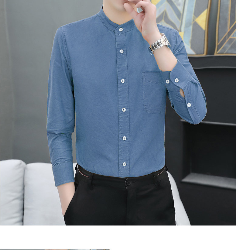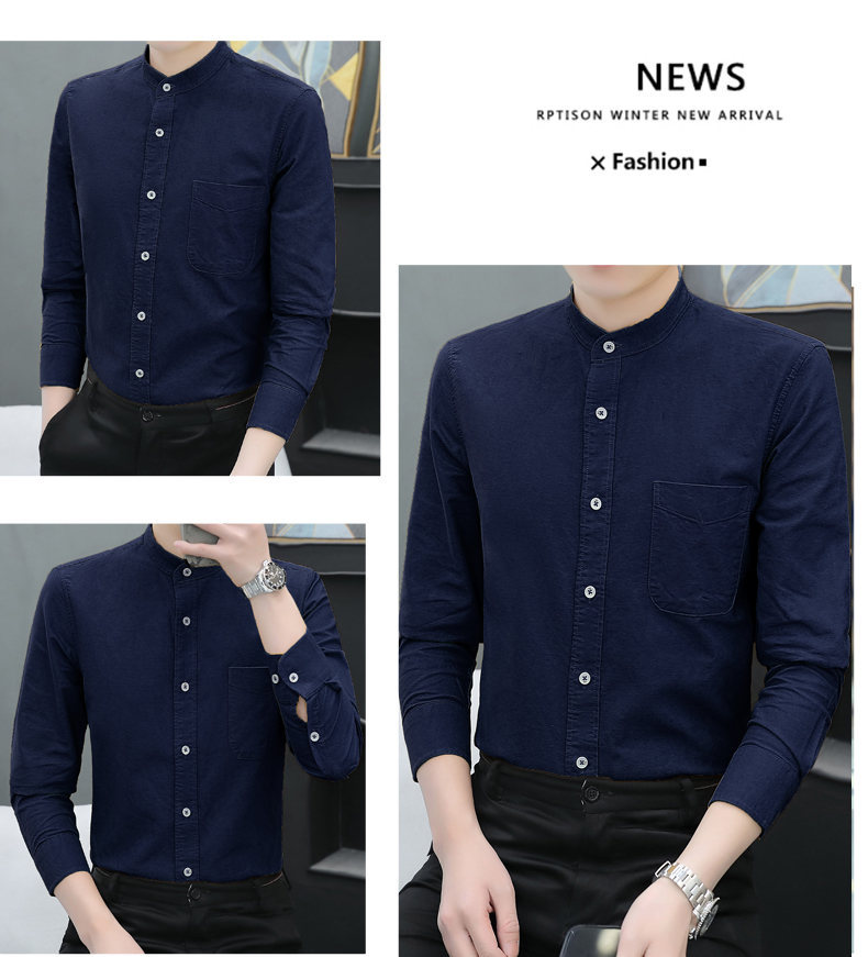 국경 간 AliExpress 폭발 [전문 셔츠] 스탠드 칼라 긴팔 셔츠 남성 청소년 면화 옥스포드 섬유 비즈니스 레저 조수