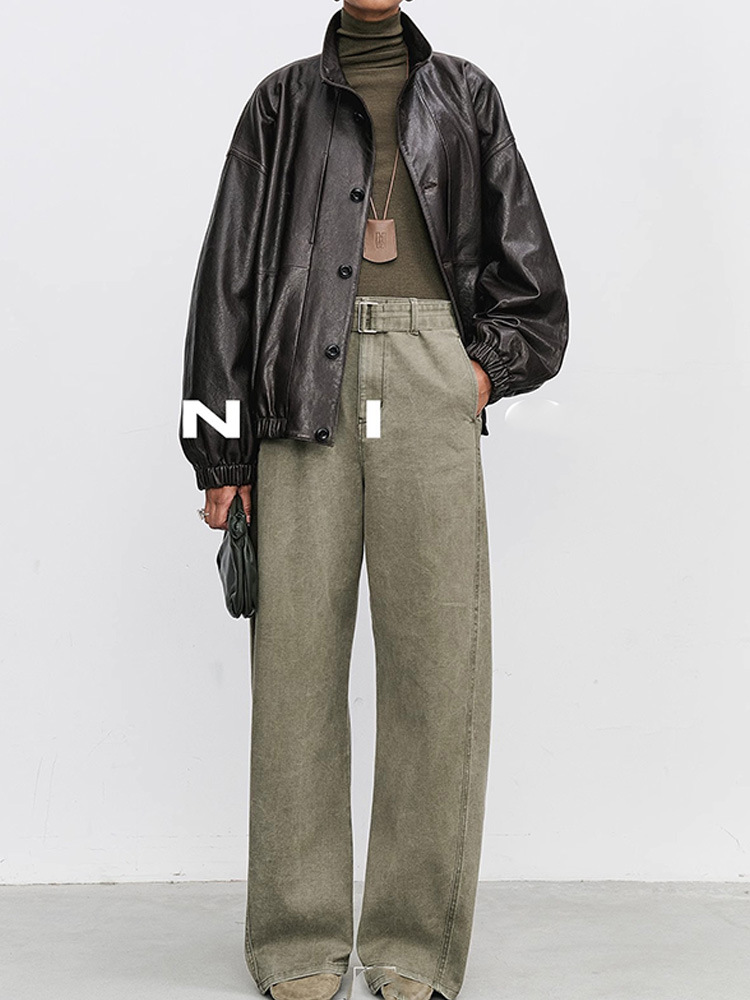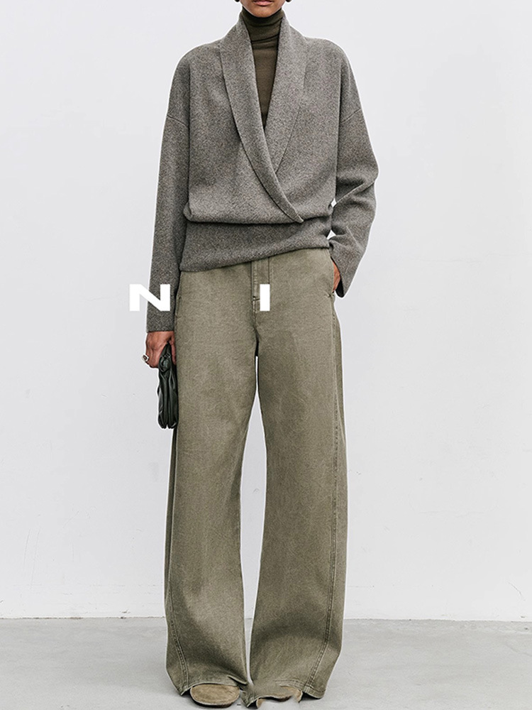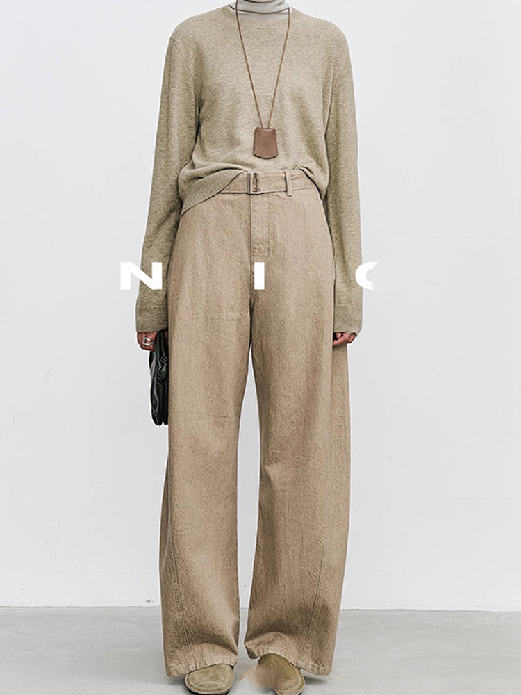 니치 미니멀 빈티지 스타일 2025 봄 가을 컬러 데님 팬츠 여성 패션 벤드 칼바늘 바지 캐주얼 롱 팬츠