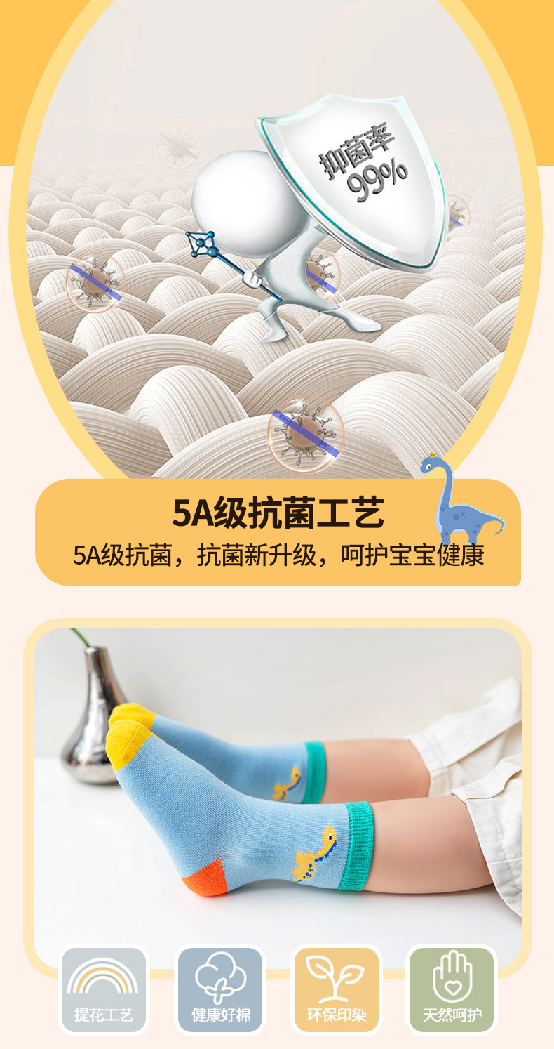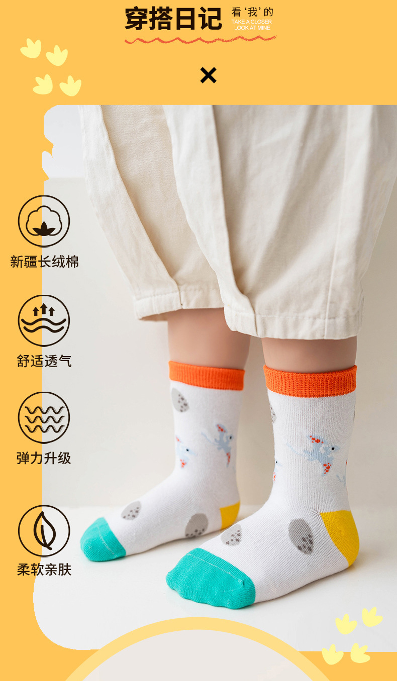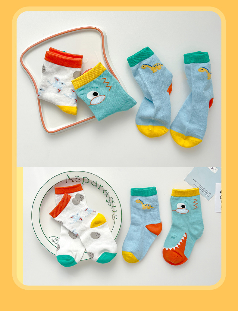 24 봄과 가을 어린이 양말이 면화 만화 작은 공룡 귀여운 자카드 미드 튜브 양말 뼈없는 손 바느질 도매