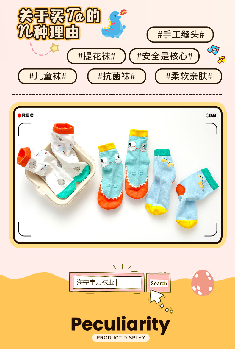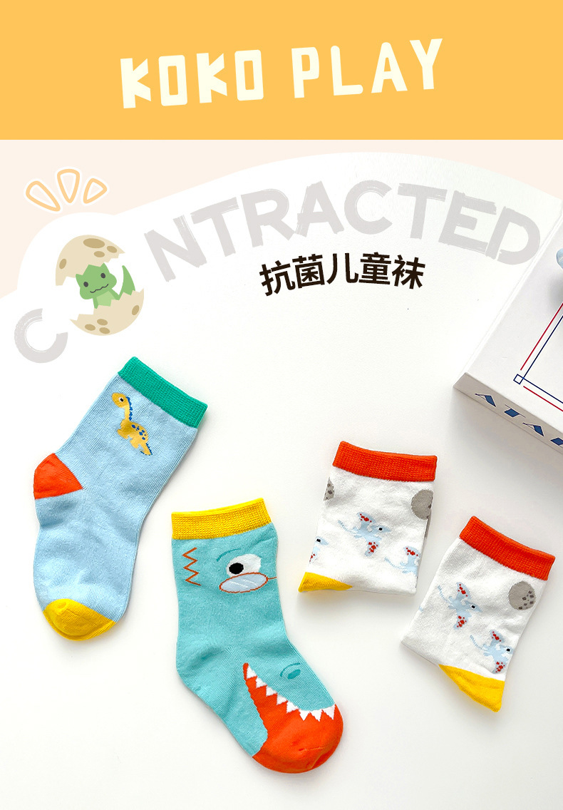 24 봄과 가을 어린이 양말이 면화 만화 작은 공룡 귀여운 자카드 미드 튜브 양말 뼈없는 손 바느질 도매스토어 가기