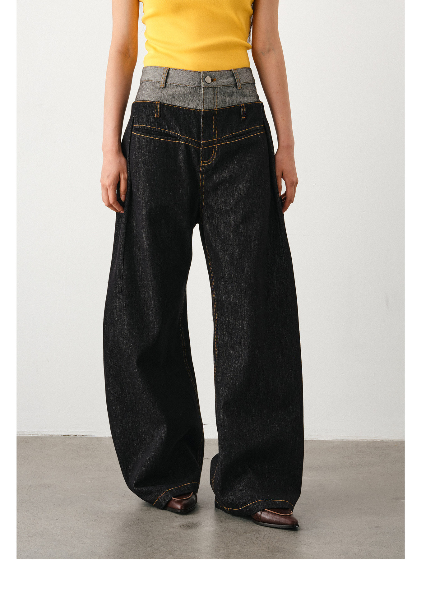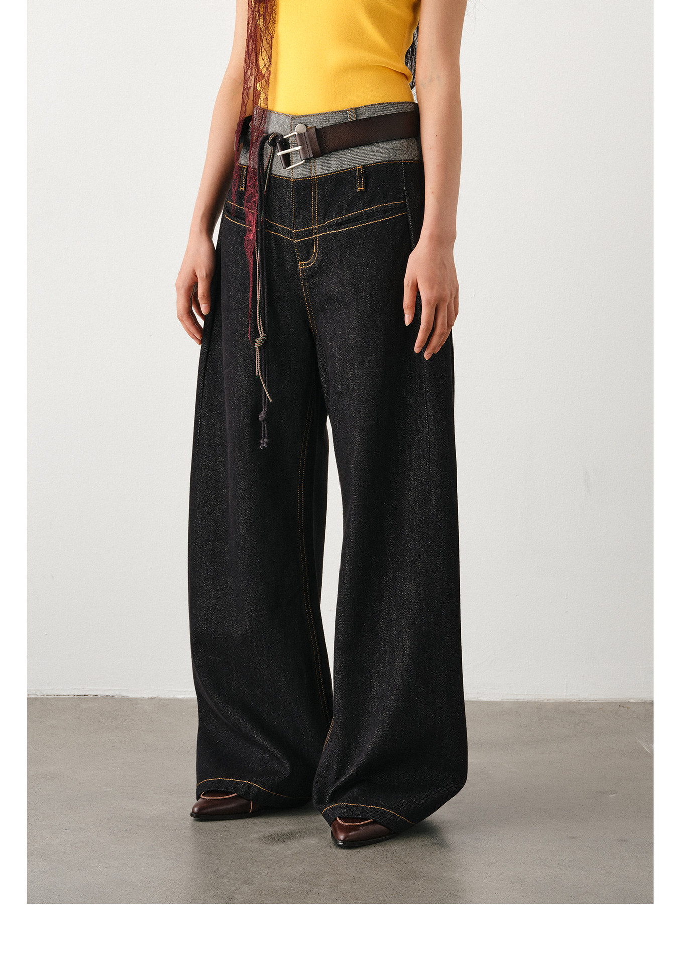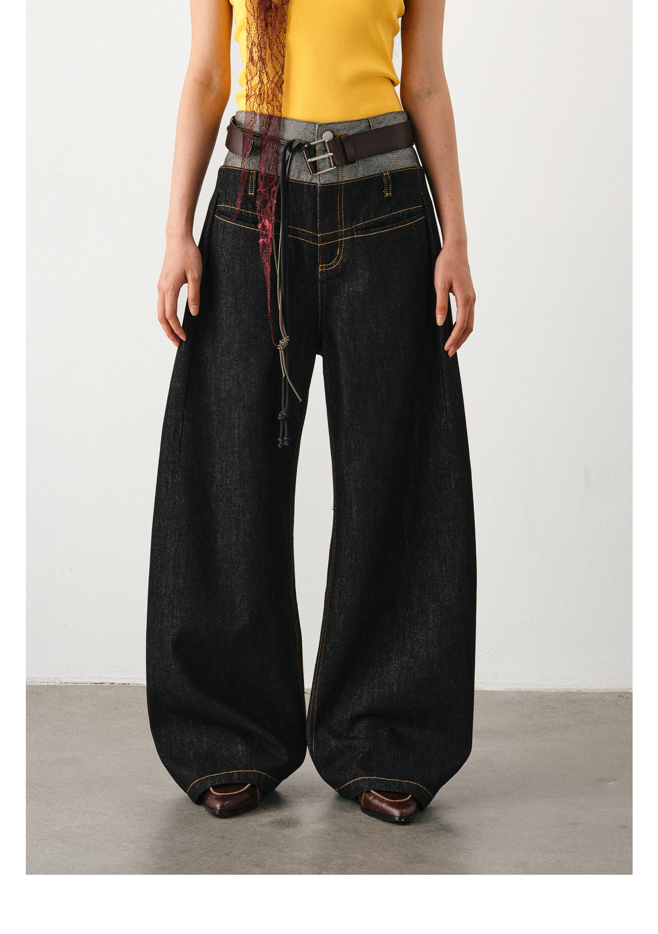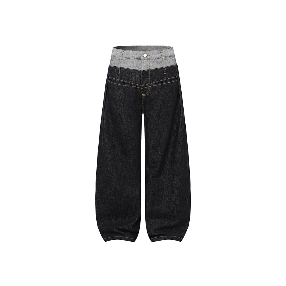 DIMC 여성용 아메리칸 레트로 루즈핏 와이드 레그 진 클린핏 더블 웨이스트 페이크 투피스 드레이프 벤드 팬츠