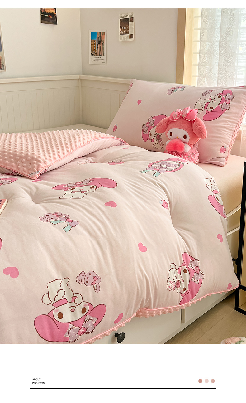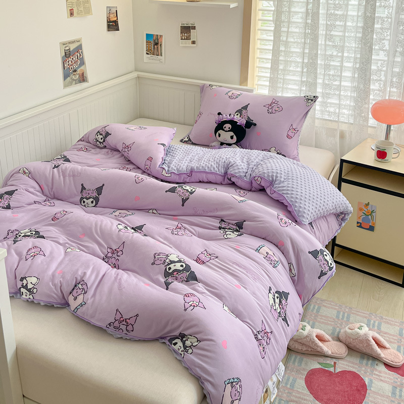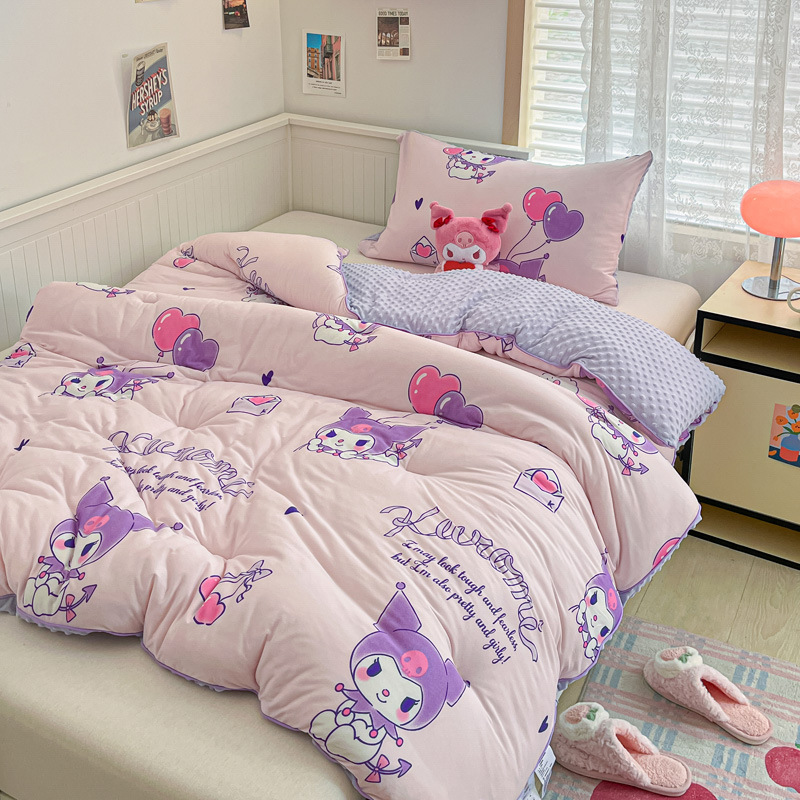 귀여운 멜로디 니트 코튼 빈 퀼트 코어 산리오 만화 두꺼운 겨울 퀼트 어린이 학생 싱글 더블 퀼트